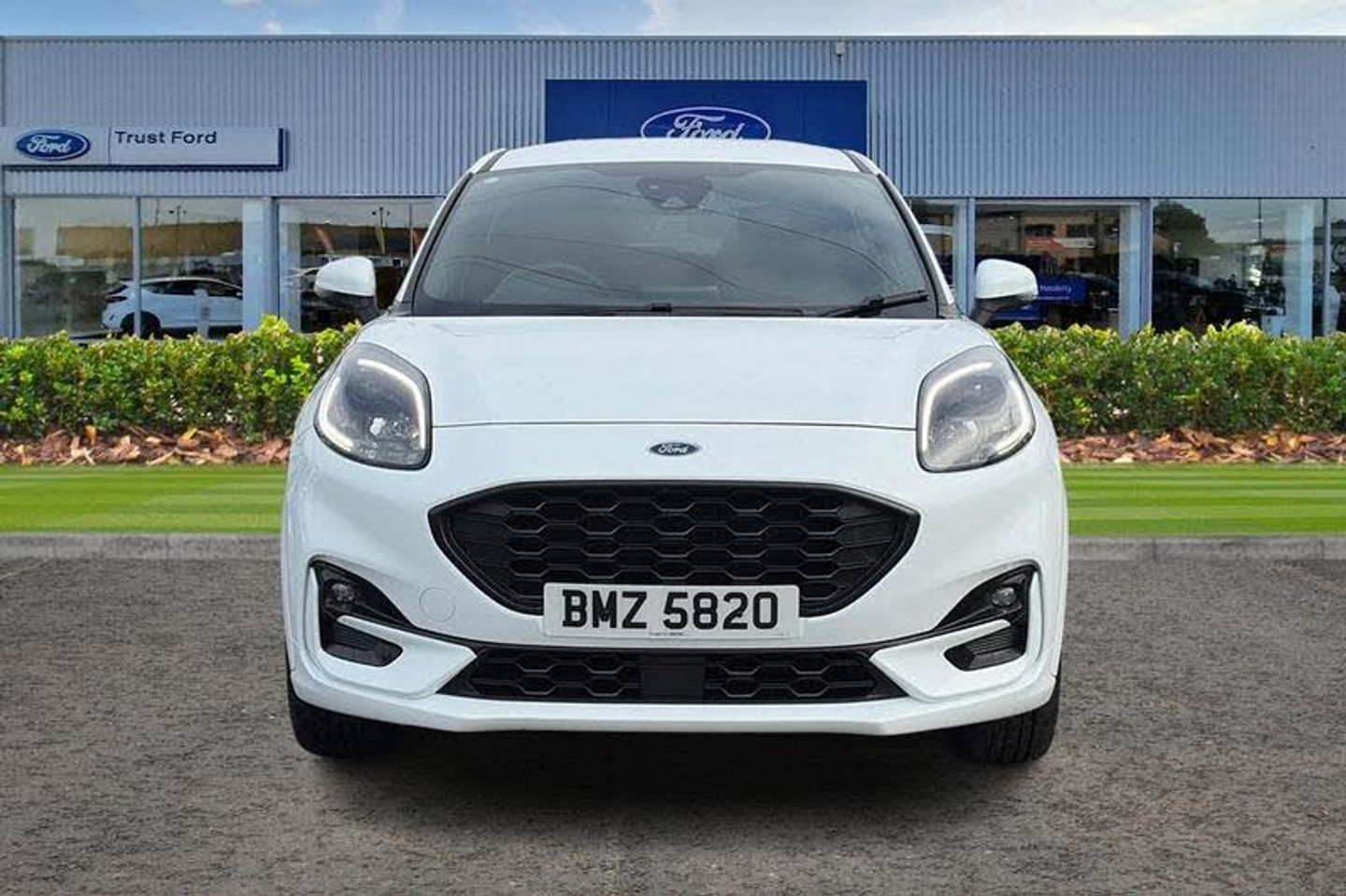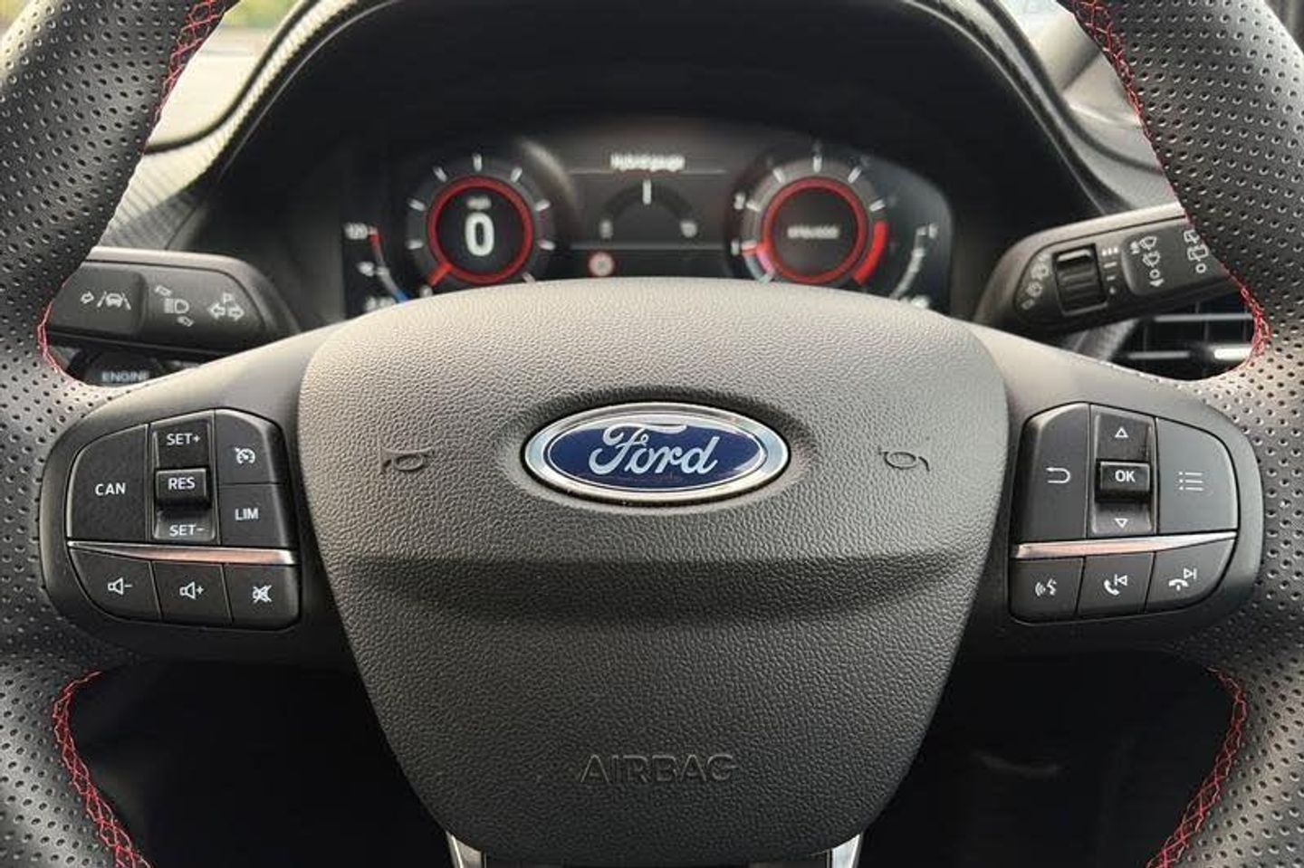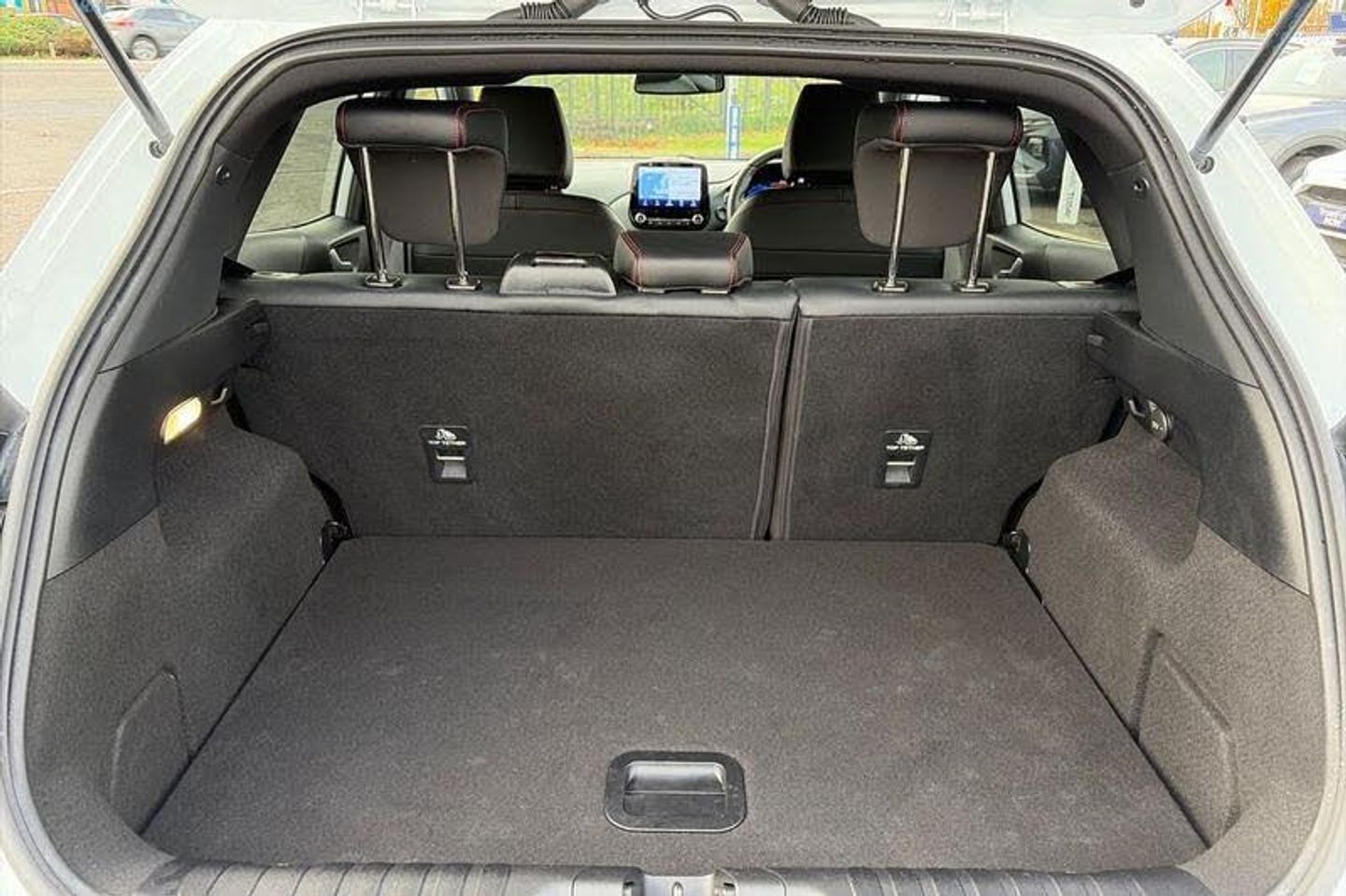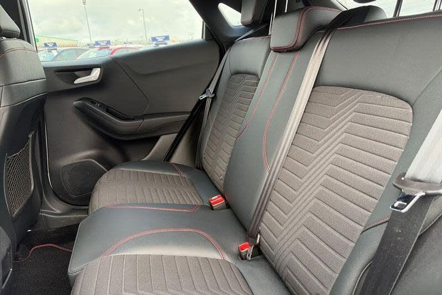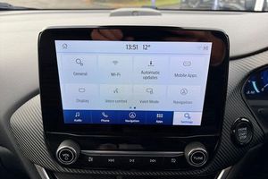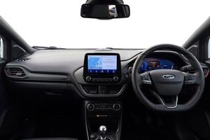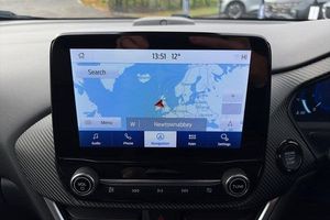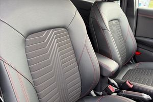 Driver impairment monitor, Emergency call service, Ford easy fuel, Full digital 12.3 instrument cluster, Lane keeping aid with lane departure warning, Power assist steering, Power start button, Rear parking sensor, Selectable drive modes(Normal, sport, Eco, trail, slippery), Speed sign recognition, Automatic headlights with auto high beam, Automatic rain sensing wipers, Front fog lamps, LED daytime running lights, LED rear lamps, Power foldable heated door mirrors with puddle lamps, Privacy glass to side rear windows and tailgate glass, Quickclear heated windscreen, Rear side wing doors, Rear wiper, ST-Line body styling kit with unique grille, Third brake light, 3 seat bench in 2nd row, Centre console with armrest and stowage, Ford megabox extended bootspace, Front and rear head restraints, Front floor mats, Manual 4 way driver seat adjust with lumbar adjustment, Manual 4 way passenger seat with lumbar seat adjustment, Sensico partial premium upholstery, Single front passenger seat, ST-Line flat bottomed sensico leather steering wheel with leather handbrake and aluminium gear knob, Wireless charging pad with electronic air temperature control (EATC), 3 rear seatbelts, Child safety lock, Electronic stability control (ESC) and hill start assist, Pedestrian/cyclist detection & post-collision braking, Pre collision assist system, Tyre pressure monitoring system (TPMS)