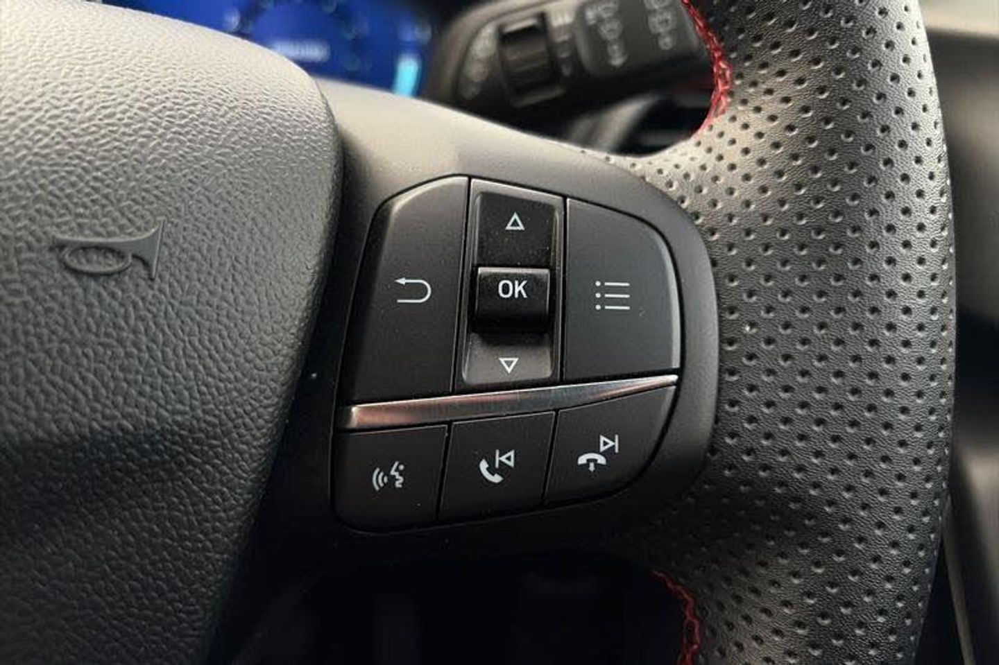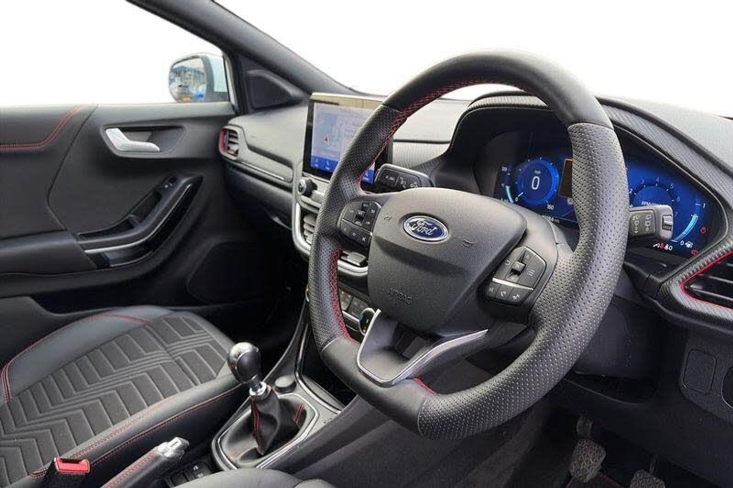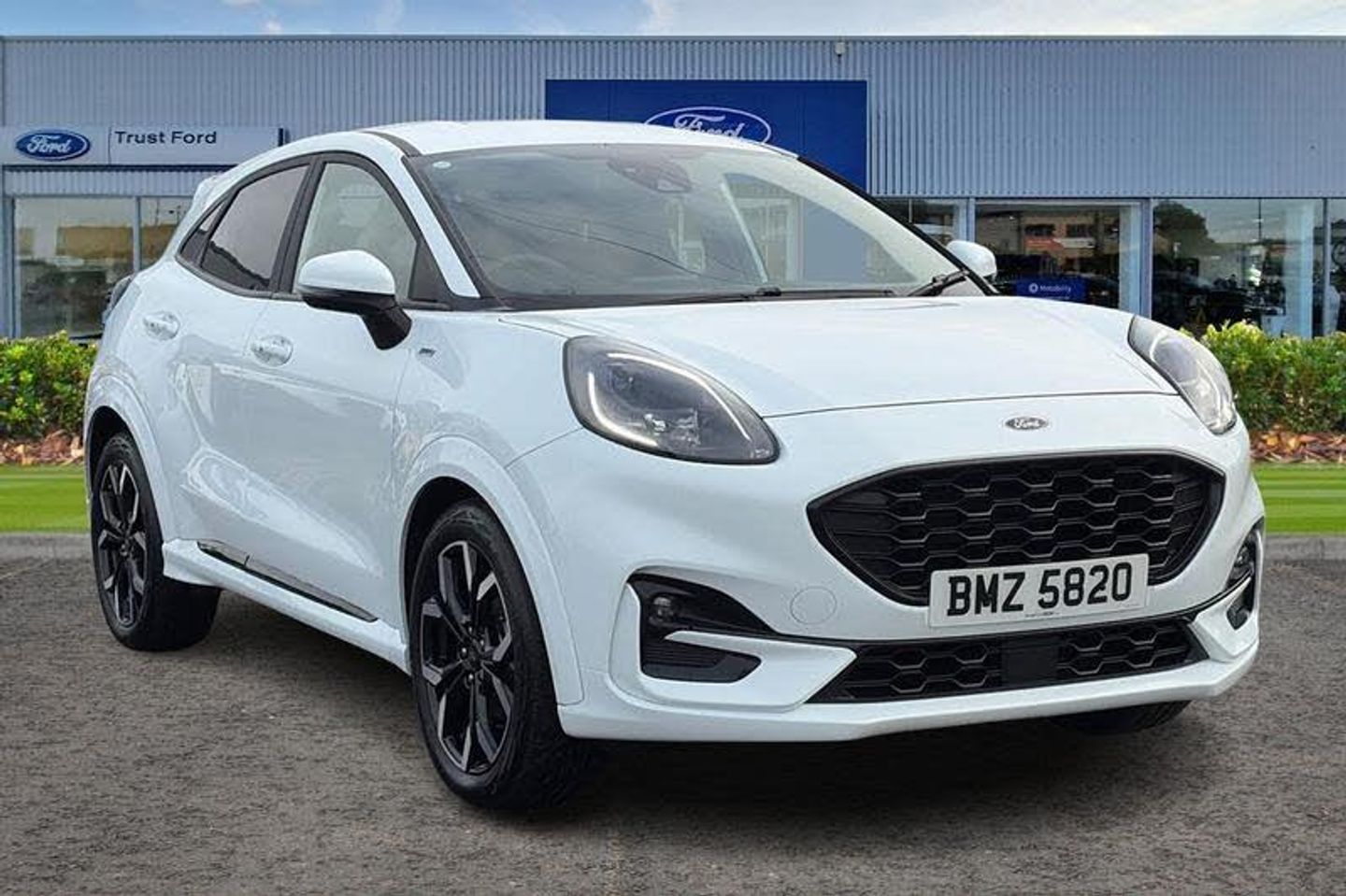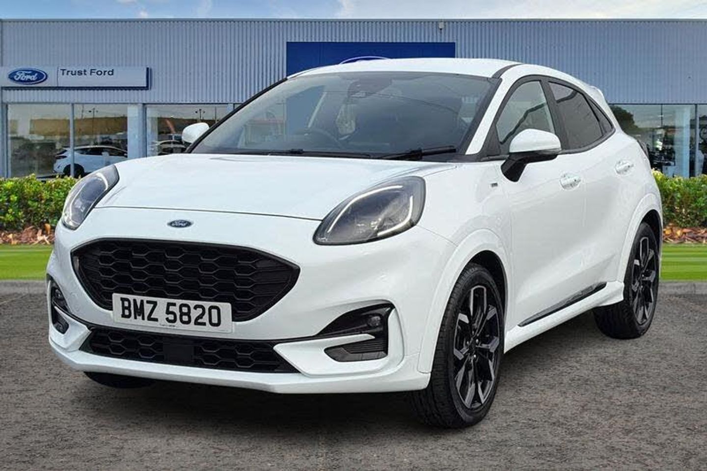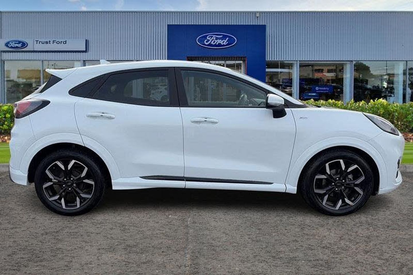 Driver impairment monitor, Emergency call service, Ford easy fuel, Full digital 12.3 instrument cluster, Lane keeping aid with lane departure warning, Power assist steering, Power start button, Rear parking sensor, Selectable drive modes(Normal, sport, Eco, trail, slippery), Speed sign recognition, Automatic headlights with auto high beam, Automatic rain sensing wipers, Front fog lamps, LED daytime running lights, LED rear lamps, Power foldable heated door mirrors with puddle lamps, Privacy glass to side rear windows and tailgate glass, Quickclear heated windscreen, Rear side wing doors, Rear wiper, ST-Line body styling kit with unique grille, Third brake light, 3 seat bench in 2nd row, Centre console with armrest and stowage, Ford megabox extended bootspace, Front and rear head restraints, Front floor mats, Manual 4 way driver seat adjust with lumbar adjustment, Manual 4 way passenger seat with lumbar seat adjustment, Sensico partial premium upholstery, Single front passenger seat, ST-Line flat bottomed sensico leather steering wheel with leather handbrake and aluminium gear knob, Wireless charging pad with electronic air temperature control (EATC), 3 rear seatbelts, Child safety lock, Electronic stability control (ESC) and hill start assist, Pedestrian/cyclist detection & post-collision braking, Pre collision assist system, Tyre pressure monitoring system (TPMS)