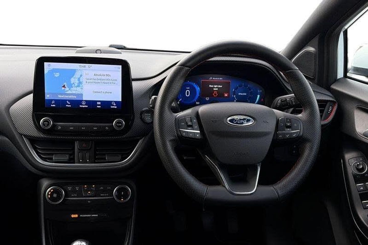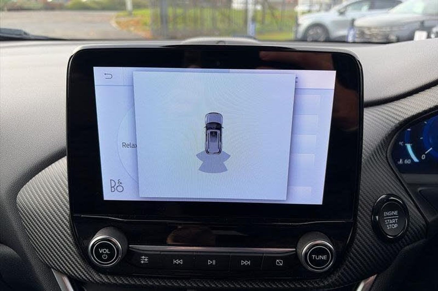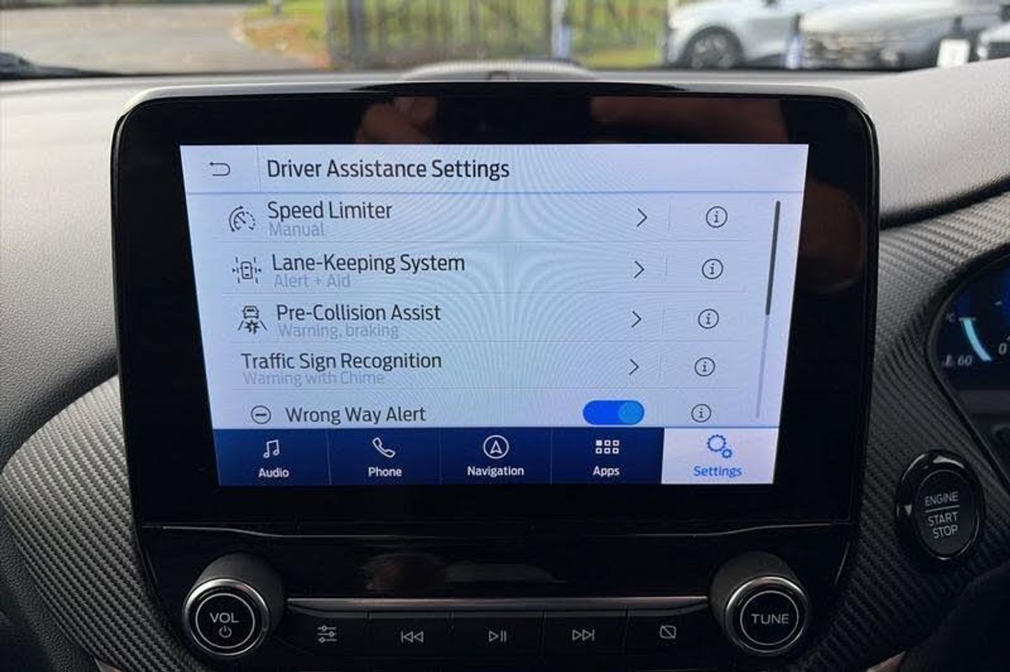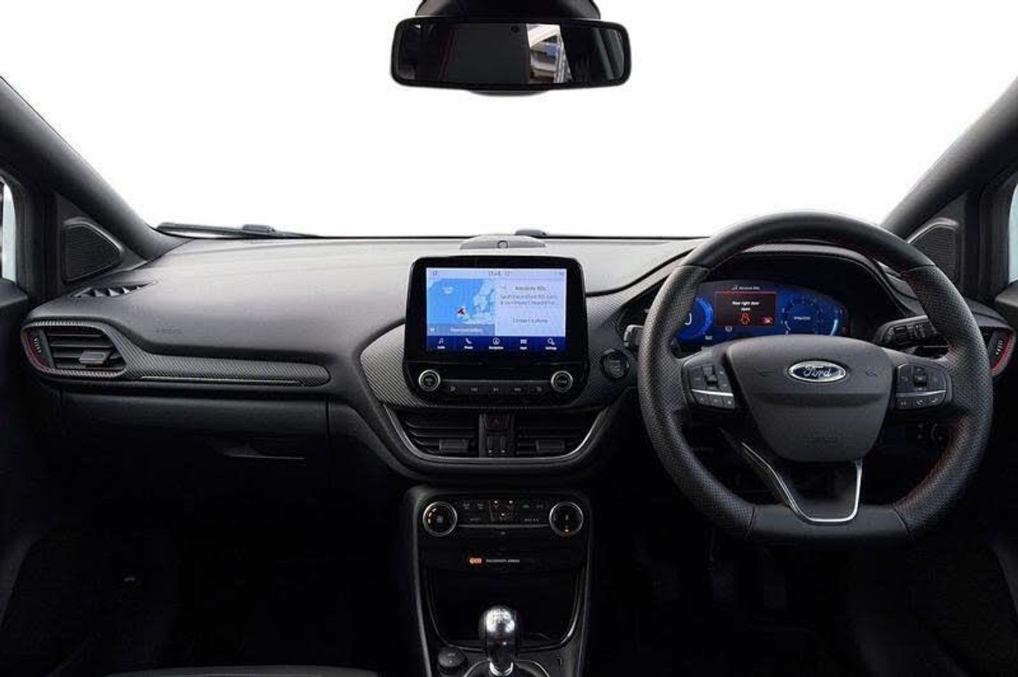 Driver impairment monitor, Emergency call service, Ford easy fuel, Full digital 12.3 instrument cluster, Lane keeping aid with lane departure warning, Power assist steering, Power start button, Rear parking sensor, Selectable drive modes(Normal, sport, Eco, trail, slippery), Speed sign recognition, Automatic headlights with auto high beam, Automatic rain sensing wipers, Front fog lamps, LED daytime running lights, LED rear lamps, Power foldable heated door mirrors with puddle lamps, Privacy glass to side rear windows and tailgate glass, Quickclear heated windscreen, Rear side wing doors, Rear wiper, ST-Line body styling kit with unique grille, Third brake light, 3 seat bench in 2nd row, Centre console with armrest and stowage, Ford megabox extended bootspace, Front and rear head restraints, Front floor mats, Manual 4 way driver seat adjust with lumbar adjustment, Manual 4 way passenger seat with lumbar seat adjustment, Sensico partial premium upholstery, Single front passenger seat, ST-Line flat bottomed sensico leather steering wheel with leather handbrake and aluminium gear knob, Wireless charging pad with electronic air temperature control (EATC), 3 rear seatbelts, Child safety lock, Electronic stability control (ESC) and hill start assist, Pedestrian/cyclist detection & post-collision braking, Pre collision assist system, Tyre pressure monitoring system (TPMS)