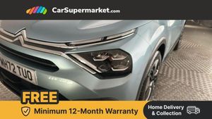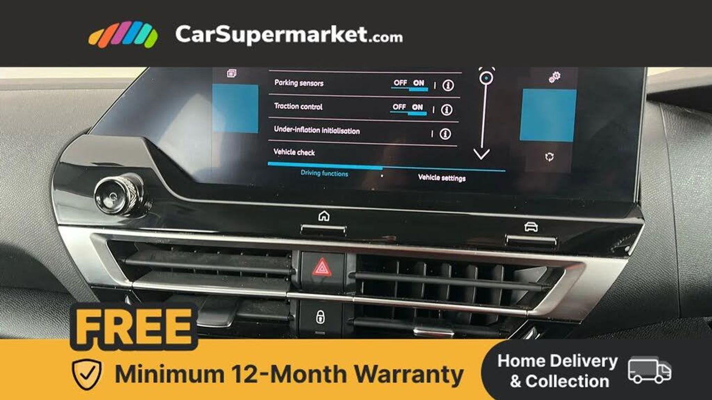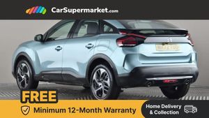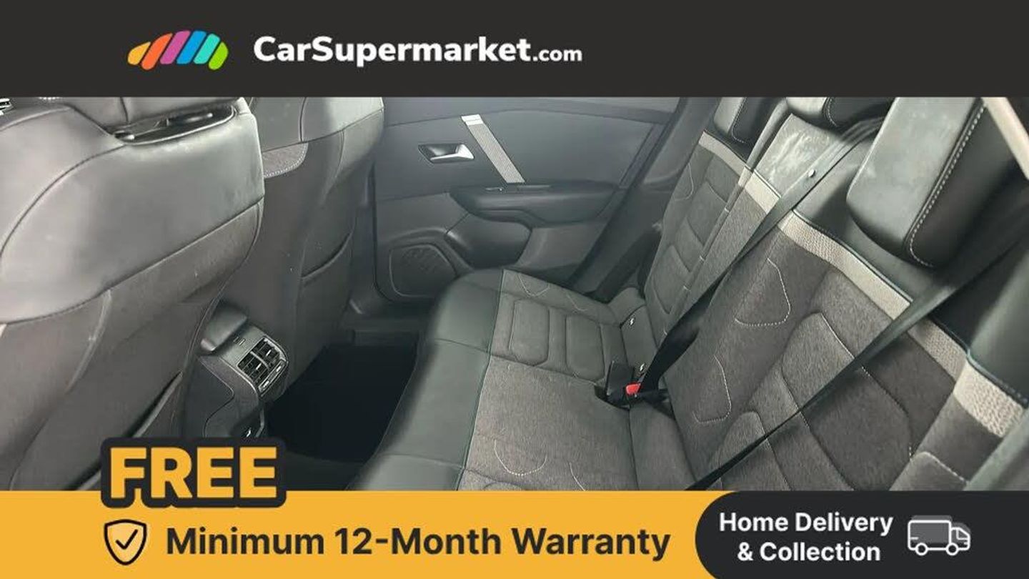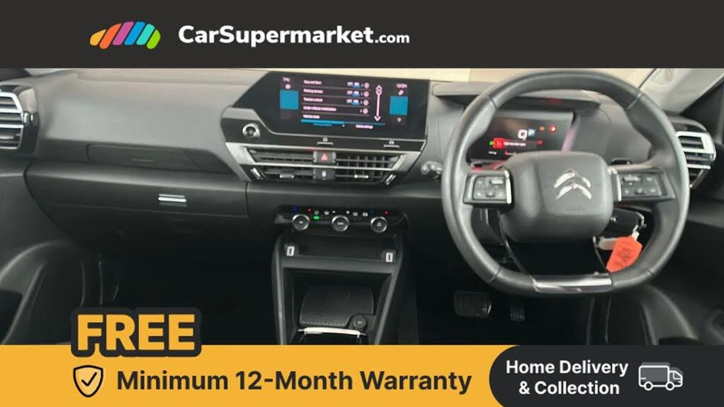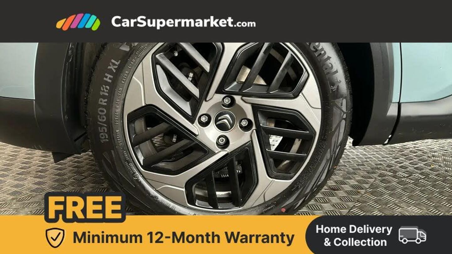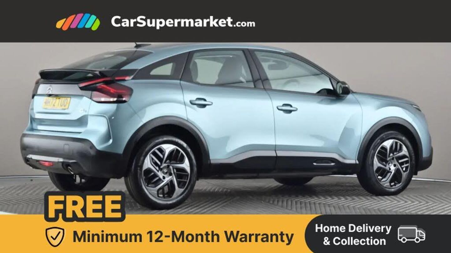 10" high resolution touchscreen user interface, controlling media, connectivity and vehicle settings,5.5 inch backlit full TFT driver's instrument cluster with LED ambient lighting,Apple car play and Android auto,Citroen connect box emergency and assistance system,Citroen connect nav with real time traffic and speedcam,Citroen Smart Pad Support - integrated support for attaching a tablet computer for front passenger,Cruise control + speed limiter,Driver's head-up display,Electronic Power Steering (EPS),In-crash braking,Rear parking sensors,Tailgate,Top rear vision reversing camera,Voice commands,Advanced comfort suspension - double hydraulic stops on front suspension and single on rear suspension,6 speakers,Bluetooth telephone and audio streaming,DAB Digital radio,3rd brake light,Automatic headlights,Body colour bumpers,Body colour door handles,Boot spoiler,Electrically heated, folding and adjustable external rear view mirrors,Front and rear electric windows,Gloss black rear skirt,LED daytime running lights in V signature,LED front fog lamps with static cornering function,LED front headlamps,Perla Nera black painted external rear view mirrors,Rain sensing automatic front windscreen wipers,Rear side wing doors,Rear wiper,Roof aerial,Standard interior rear-view mirror with manual day-night switching,Welcome and goodbye lighting,12V power outlet, 1x USB Type-C socket charging & data connection and 1x USB Type-A socket in 1st row and 1x USB Type-A socket charging in 2nd row,3 rear headrests,3 seat bench in 2nd row,Boot light,Chevrons cloth and leather effect textile seat upholstery,Dashboard tray in front cabin,Driver and passenger sunvisors with illuminated vanity mirrors,Dual zone automatic air conditioning,Front and rear LED interior lighting,Front head restraints,Grained leather steering wheel with two command blocks,Height adjustable driver's seat with adjustable lumbar support,Height adjustable front passenger seat,Height and reach adjustable steering wheel,Map pockets in rear of front seats,Raised centre console with armrest and two cup holders,Single front passenger seat,Split folding rear seats,Two position boot floor,High level acoustic insulation pack - C4/C4 X/e-C4 X,3x3 point rear seatbelts,ABS,Driver and front passenger airbags,Electric parking brake,ESP,Front seatbelt pretensioners,Hill start assist,Manual child lock in second row,Manual deactivation of front passenger airbag,Row 1 and 2 curtain airbags,Row 1 side thorax airbags,Seatbelt unfastened on the move warning,Tyre underinflation detection,Anti-theft alarm (volumetric protection),Immobiliser,Remote locking with deadlocks,18" Bi-tone painted aeroblade alloy wheels with anti-theft locking wheel nuts,Puncture repair kit with compressor,Iceland Blue