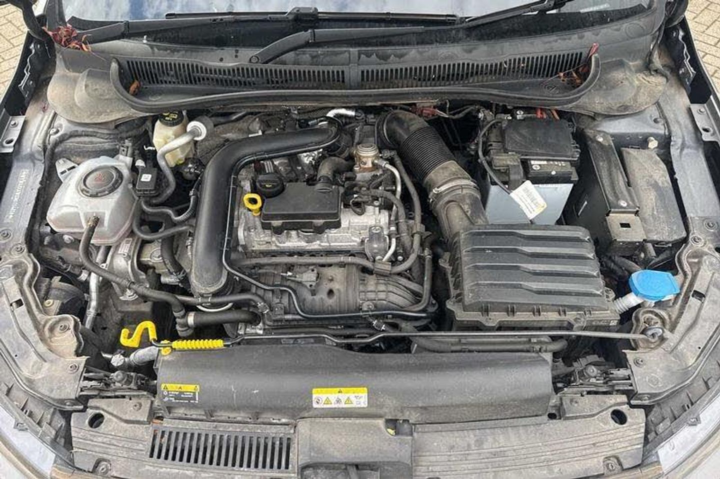 Exterior Features, Electric front windows, Front windscreen washers and wipers with 4 speed intermittent delay, Heat insulating rear tinted glass from B-pillar backwards approx 65% tinted, Heated rear window with auto timer, Rear electric windows, Rear windscreen washer and wiper with interval delay, reverse activated, Galvanished body, Active aluminium scuff plates, Active badge on B Pillar, Black grille with chrome surround, Black radiator grille with chrome louvres, Body colour bumpers, Body colour door handles, Body colour rear spoiler, Body coloured side sills, High level 3rd brake light, LED daytime running lights, LED rear number plate lights, Safety, ABS, Automatic post collision braking, ESP with EDL + ASR, Front disc brakes and rear drum brakes, Hill hold control, Hydraulic Brake Assist (HBA), Driver alert system, Power assisted speed sensitive steering, Body colour door mirrors with integrated indicators, Electrically adjustable and heated door mirrors with reverse activated kerb view adjustment on passenger's side, 3 point height adj front seatbelts + pretensioners, 3x3 point rear seatbelts, Driver/front passenger airbag, Drivers and front passengers safety optimised head restraints, Front and rear passenger curtain airbags, Front passenger airbag deactivation, Front seat side impact airbags, Single tone horn, Tyre pressure monitoring system, Interior Features, Front + rear carpet mats, Climate control - 2 zone electronic air conditioning with automatic air recirculation and allergy filter, Dust/pollen filter, 2 bag hooks in luggage compartment, 2 front cupholders and 12 V socket with cover, 4 grab handles, Centre console storage with open storage compartment, Chrome interior door handles, Gear lever gaiter in black trim surround, Glovebox, Handbrake grip button in chrome effect, Height/reach adjustable steering column, Leather gear knob and handbrake grip, Leather multifunction steering wheel, Luggage compartment cover, removable, Luggage compartment with variable load floor, Special Active Waveform cloth upholstery, Stainless steel foot pedals, Storage compartment in front doors, Storage compartment in rear doors, Storage compartment under front seats, Sunglasses holder, 2 front and 2 rear reading lights, Ambient lighting, Instrument lighting, adjustable panel illumination, Interior light with delay, Luggage compartment lighting, Driver and front passenger sunvisors with illuminated vanity mirrors, Audio / Communications, Volkswagen connect, Wireless app connect, Diversity antenna for FM reception, Front and rear 6 speakers, Driver Convenience, Start/stop system, Miscellaneous, Digital clock, Emergency call service, Multifunction computer plus, Speedo and rev counter, electronic odometer, trip, service interval display and fuel gauge, Warning buzzer and light for front seatbelts unfastened, Battery regeneration during braking