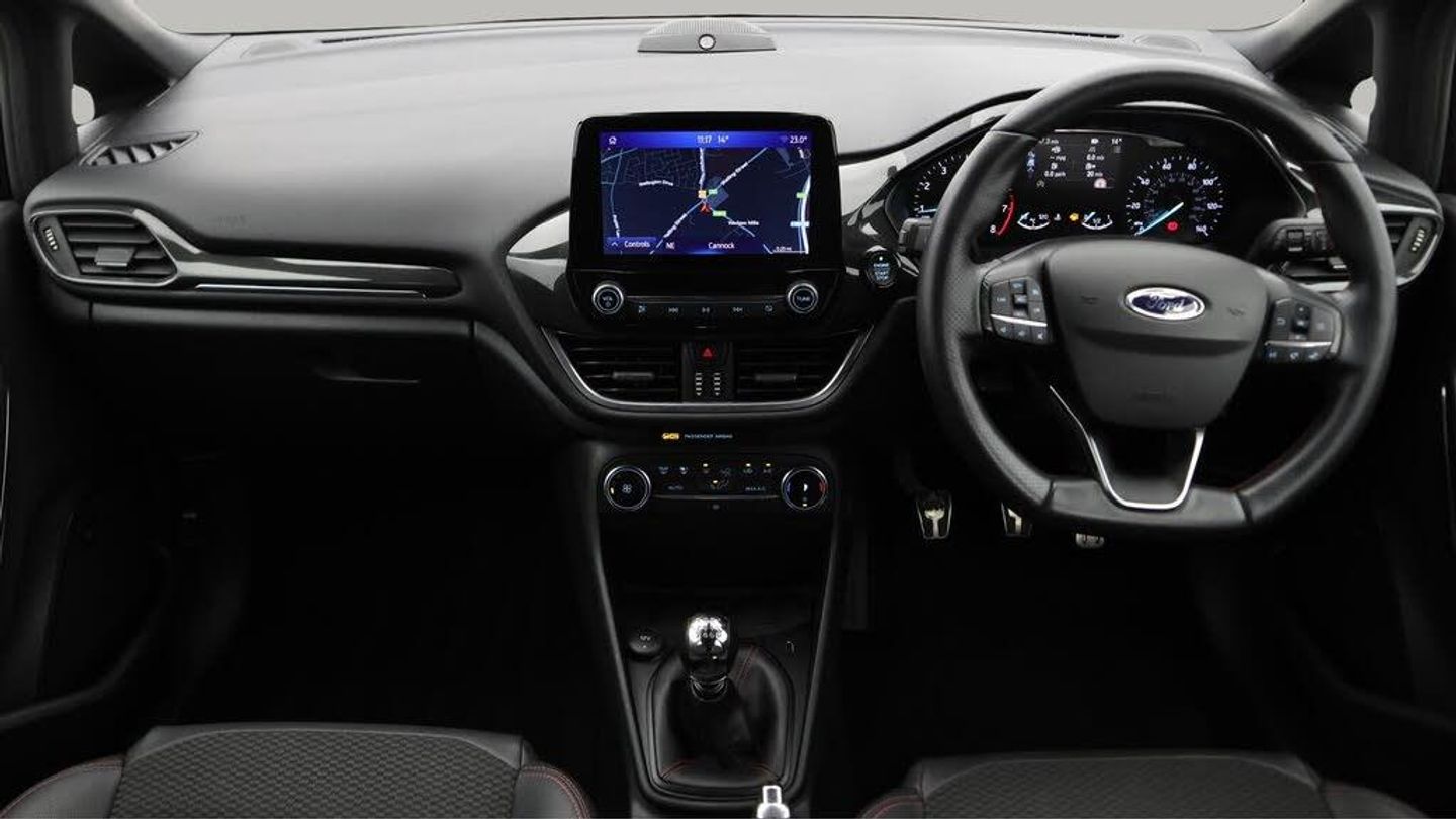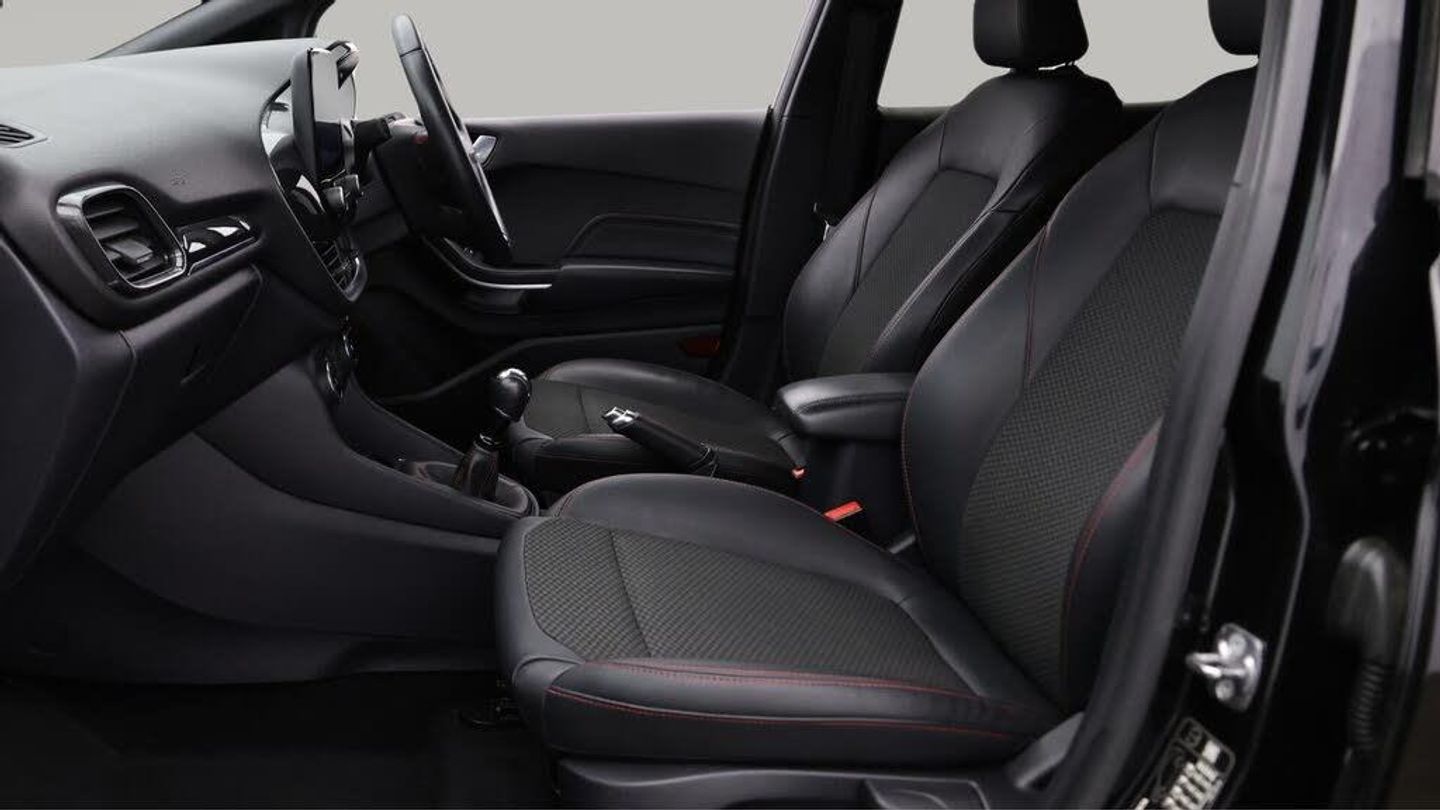 18'' alloy wheels,Part Leather-Our Ford Fiesta comes with optional extras worth £500. Specification includes a range of fantastic features including 18'' alloy wheels, Part Leather Seats, Bang & Olufsen Speakers, Lane Assist, Satellite Navigation, Ford SYNC, Privacy Glass, ST Style Pack, Heated Windscreen, Internet Specification information is supplied by CAPHPI and may vary to the actual car. This data does not form any part of a buying contact. Please check specification prior to purchase in-store. The MOT is valid until October 2026, visit bigmotoringworld.co.uk for more photos, a 360 tour, service history and a free HPI report.Were BIG on peace of mind and this Black Ford Fiesta has completed our comprehensive 200 point inspection and passed all checks. Its ready for you to drive away with immediate collection in-store. We include a 90-day warranty as standard plus an option to extend for up to 3 years.Reserve this car exclusively for you, safely and securely at bigmotoringworld.co.uk, with a fully refundable £99 deposit. Test drive before you buy, with no commitment, no hassle and a completely haggle free experience. Still searching and want to see thousands more cars? We are BIG on choice with over 8000 cars to choose from.Visit our award winning web site bigmotoringworld.co.uk.Were Big Motoring World and were BIG on what matters to you.