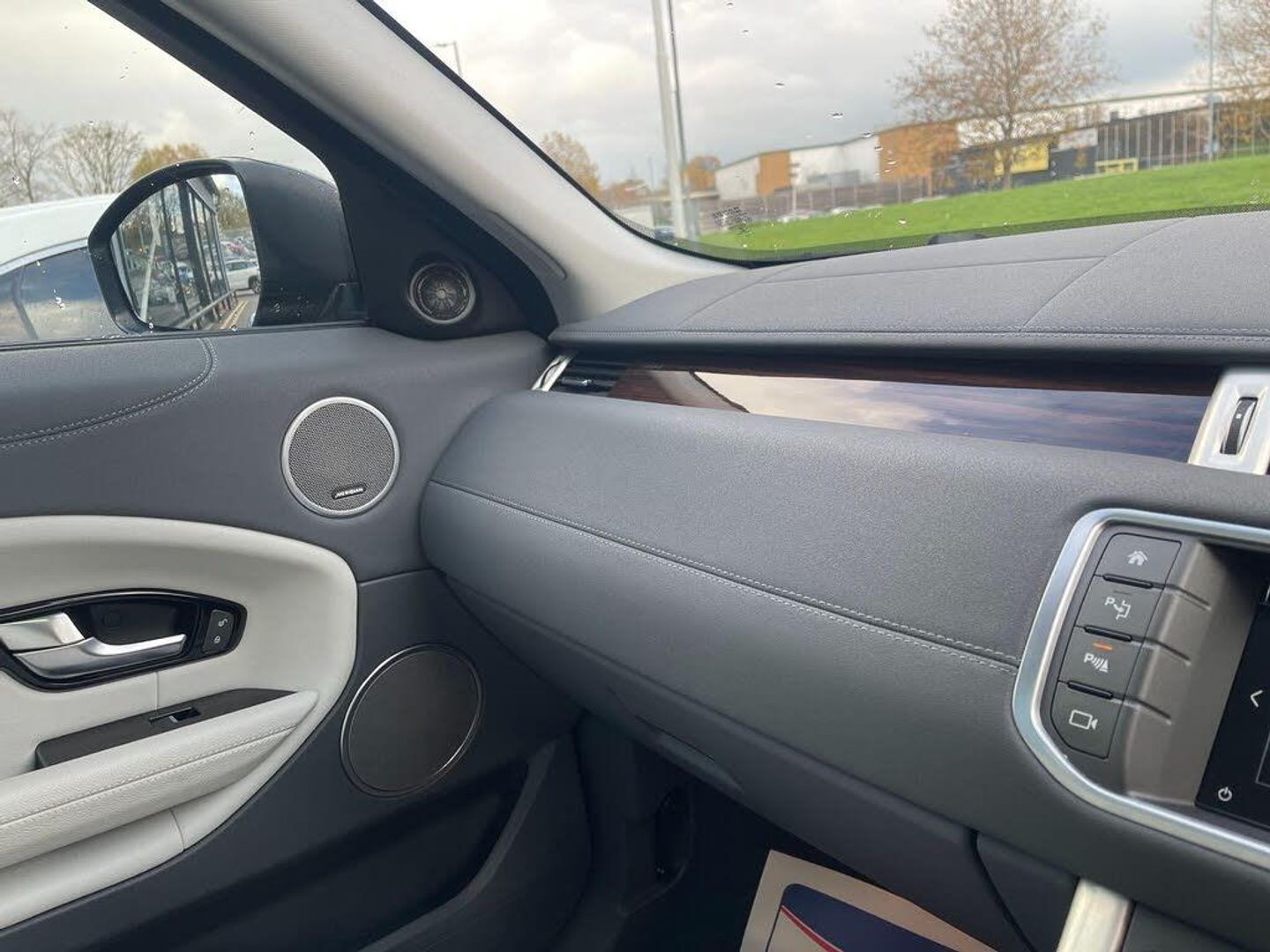 12V Power Socket, 12V Socket in Loadspace, 18in Alloy Wheels - 7 Spoke - Style 706 - Sparkle Silver Finish, 5in TFT Driver Information Centre, 8in High Resolution Touch Screen, ABS - Anti Lock Braking System, AM-FM Radio, Airbags - Driver Knee, Airbags - Driver and Passenger Side, Airbags - Full Size Driver, Airbags - Full Size Passenger, Airbags - Row One and Two Head Curtain, Alarm, Armrest - Rear Centre with Storage Compartment and 2 Cupholders, Audible Seat Belt Warning, Audio Connectivity System, Audio System - DAB, Auto-Dimming Interior Mirror, Automatic Headlight Levelling, Automatic Headlights, Autonomous Emergency Braking, Bluetooth Audio Streaming, Bluetooth Phone Connection, Carpet Mats - Front and Rear with Edging - Lunar, Centre console - Covered Storage Compartment, Climate Control - Automatic with Air Filtration and Air Quality Sensing for Automatic Recirculation, Climate Control - Rear Vents, Cruise Control, DSC - Dynamic Stability Control, Daytime Running Lights, Delete Engine Badge, Door Mirrors - Electric Adjustment - Heated and Power-Folding with Puddle Lights, Door Mirrors - Narvik Black, EBA - Emergency Brake Assist, EBD - Electronic Brake-Force Distribution, EDC - Engine Drag Torque Control, EPAS - Electronic Power Assisted Steering, EPB - Electronic Park Brake, Electric Windows - Front and Rear, Evoque Badge in Silver, Exterior Door Handles - Premium Body Coloured, Fender Vent Blade - Narvik Black, Footwell Lights - Front, Front Fog Lights, Front and Rear Bumpers - Body Coloured, Grille Bars - Narvik Black, Grille Surround - Brunel, HDC - Hill Descent Control, Hazard Warning Lights Under Heavy Braking, Headlight Power Wash, Headlining - Cirrus Morzine, Heated Front Seats, ISOFIX Child Seat Anchor Points, InControl Protect (3 Year Subscription From New), InControl Touch - Level 1, InControl Touch Navigation, Interior Mood Lighting, LED Front Signature Lights, Land Rover - Tyre Repair System, Land Rover Audio System, Lane Departure Warning, Loadspace Cover, Locking Wheel Nuts, Luggage Compartment - Anchor Points, Multi-Function Steering Wheel, Parking Aid - Front, Parking Aid - Rear, Proximity Sensing and Touch Detection For Overhead Map Lights, Push Button Start, RSC - Roll Stability Control, Rain Sensing Windscreen Wipers, Rear Cupholders, Remote Central Locking, Roof - Body Coloured, Seats - 3 Seat Bench in Rear, Seats - 60/40 Split, Seats - Driver Height Adjustable, Seats - Drivers 8-Way Adjustment, Seats - Front Passenger 8-Way Adjustment, Seats - Rear Centre Head Restraint, Side Sills - Anthracite, Speakers x8, Steering Column - Manual For Height and Reach Adjustment, Steering Wheel - Oxford Leather, Sun Visors - Illuminated Vanity Mirrors, TCS - Traction Control System, TPMS - Tyre Pressure Monitoring System, TSA - Trailer Stability Assist, Tailgate Finisher in Narvik Black, Terrain Response, Torque Vectoring, Trim Finisher - Satin Brushed Aluminium, Trip Computer, USB Socket - Front, Windows - Heated Rear Windscreen, Windscreen - Heated, Windscreen Washer Jets - Heated, Xenon Headlamps with LED Signature, 10.2in High Resolution Touch Screen, Parking Aid - Rear View Camera, Rear View Camera, 18in Alloy Wheels - 5 Split Spoke Style 506 - Sparkle Silver Finish, Roof - Fixed Panoramic, Fixed Panoramic Roof Including Powered Blind, Door Mirrors - Electrically Adjustable - Heated and Power Folding with Memory Function, Seats - 12-Way Power Driver Seat with Lumbar Support and Memory, Perforated Grained Leather - Lunar-Ivory
