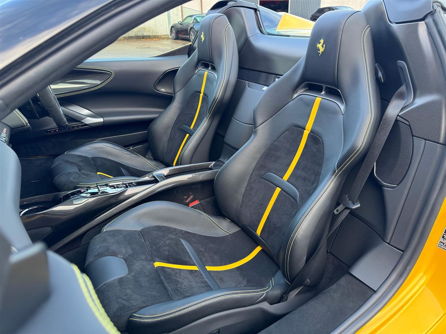 Experience unparalleled comfort and convenience with the full electric seats, complete with heating and memory functions, and enjoy effortless parking thanks to the rear parking camera and rear camera parking assistance. Seamlessly integrate your digital life with Apple CarPlay and Bluetooth audio streaming, while the dual zone air conditioning system ensures optimal comfort for all occupants. These carefully selected features, combined with the vehicle's impressive provenance, set this Ferrari SF90 Spider apart from others, offering a truly elevated driving experience.