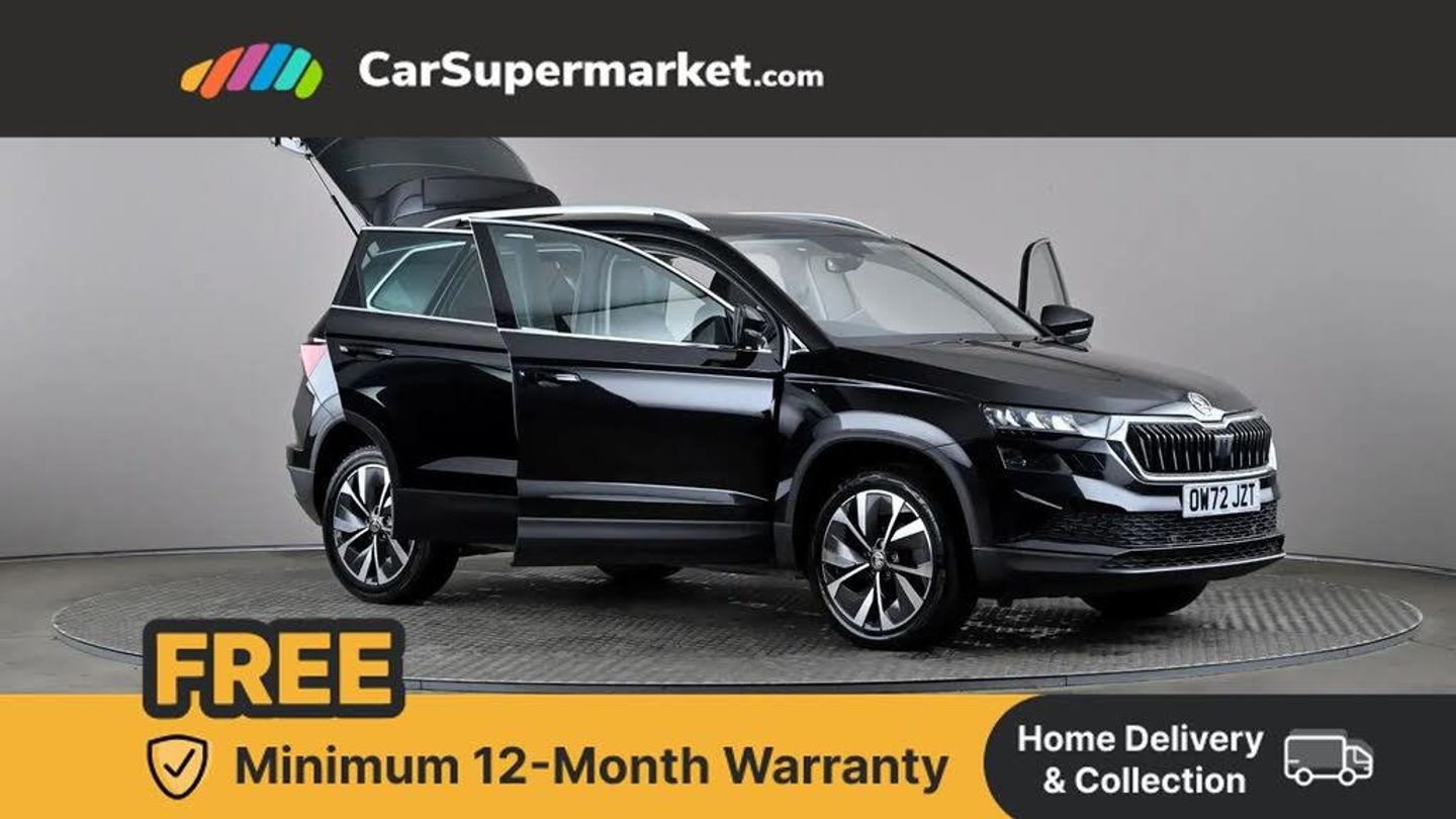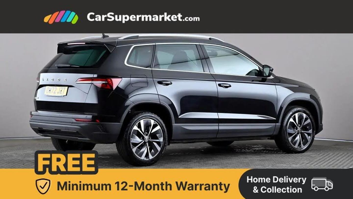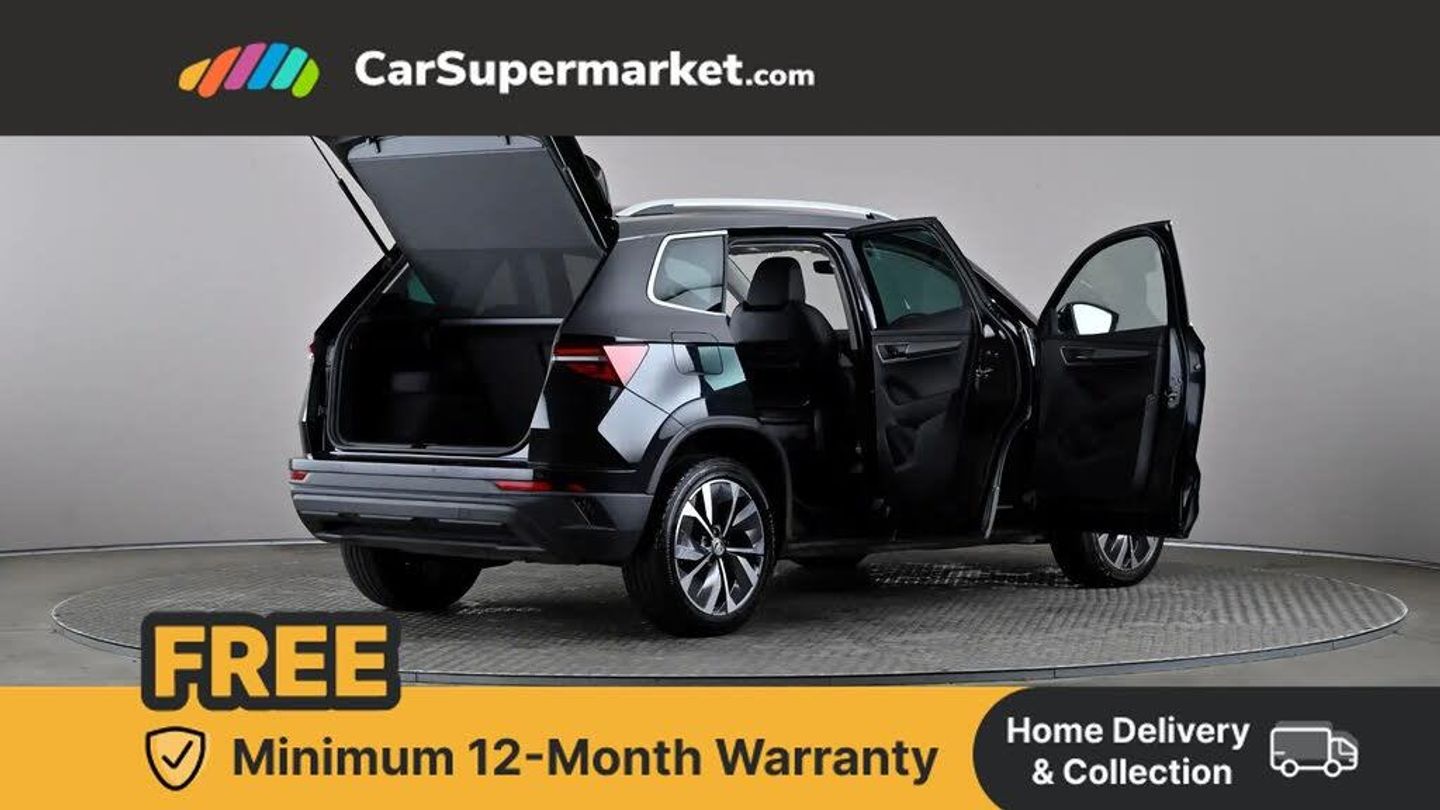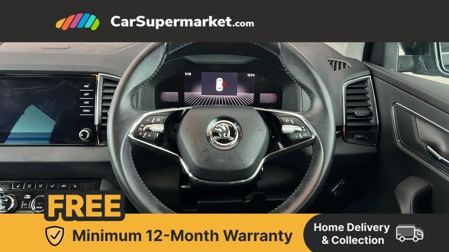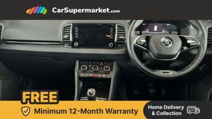 8" Digital display,Care connect,Drive mode selector,Driver fatigue sensor,Electro-mechanical PAS,Emergency services call system,Outside temperature gauge,Service interval indicator,SmartLink wireless for Apple and wired for Android,Start/stop system with regenerative braking,USB C Port x 2 in front centre console,8 Speakers,DAB radio with Bluetooth,USB connection,Acoustic glass,Aero front windscreen wipers with intermittent function,Auto dimming rear view mirror with light and rain sensors,Black electric window control buttons,Body colour door mirrors and handles,Dynamic headlight range control with cornering light function,Electric front and rear windows with child proof lock,Heated rear windscreen,LED daytime running lights,LED rear lights with high functionality welcome effect and dynamic indicators,Light assistant (coming/leaving home/tunnel light),Plastic scuff plates,Privacy glass,Rear side wing doors,Rear spoiler,Rear window wiper with washer system and intermittent control,Safety reflectors on front doors,Third brake light,1.5 litre bottle holders in driver and front passenger door panels,12V socket in boot,12v socket in front centre armrest with storage compartment and rear air vents,2 Folding hooks and nets in boot,2 spoke leather heated multifunction steering wheel,2 x Tablet holder,3 rear height adjustable headrests,3 seat bench in 2nd row,4 foldable roof handles with rear coat hooks,Black floor carpet,Chrome inner door handles,Decorative door sills with KAROQ badging,Double sided boot floor,Foldable hooks in the boot,Front head restraints,Height adjustable front three point seats belts with tensioners,Height/reach adjust steering wheel,Ice scraper,Illuminated glovebox,Illuminated luggage compartment,Isofix child seat preparation for front passenger seat,Isofix child seat preparation outer rear,Manual lumbar support for front seats,Pen holder,Pollen filter,Rear boot cover,Rear reading lights,Rubbish bin door,Safety vest holder,Single front passenger seat,Storage box in upper central dashboard closed,Sunvisors with illuminated vanity mirrors,Ticket holder,VarioFlex seats with standard rear seat release,Chrome roof rails + chrome pack - Karoq,Parking pack - Karoq,Automatic door unlocking in case of crash,Automatic fuel cut off in case of crash,Child locks on rear doors,Driver airbag,Electronic parking brake with auto hold function,Emergency rear braking signal,ESC including ABS, MSR, ASR, EDS, HBA, DSR, RBS, MKB and traction control,Front side airbags,Hill hold control,Knee airbags,Passenger airbag with switch-off function,Pedestrian monitor,Seatbelt reminder signalisation and pretensioner for all seats,Three point seatbelts rear,Two tone horn,Tyre pressure display,Tyre pressure monitor,Alarm with interior monitoring, back up horn and tilt sensor with safe function,Electronic engine immobiliser,Keyless entry and start/stop,Chrome framed air vents,18" Procyon silver alloy wheels with anthracite aero inserts,Anti-theft wheel bolts protection,Storage on wheel cover,Tool kit,Black Magic
