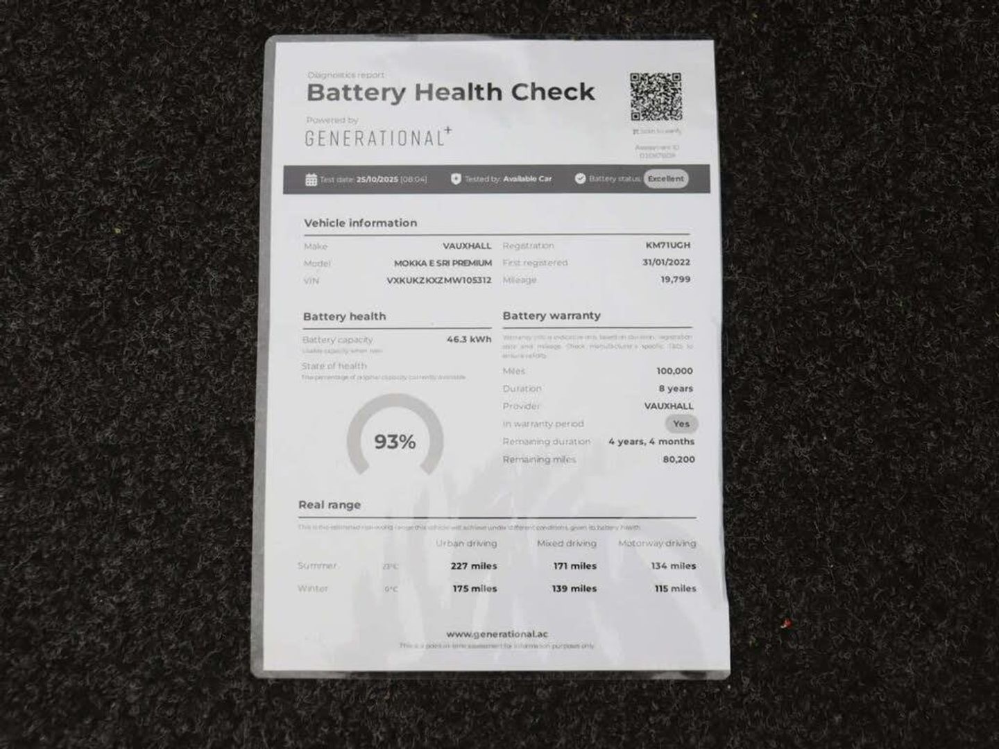 10in Multimedia Navi Pro with Live Navigation,11kW Three-Phase On-Board Charger,12V Electrical Accessory Socket - Front,12in Digital Instrument Cluster,18in Alloy Wheels - Bi-Colour with Red Accents,2 Rear USB Connections,ABS - Anti-Lock Braking System,Active Drive Assist Plus,Adaptive Brake Lights,Air Recirculation System,Airbag - Driver,Airbags - Deactivation Switch For Front Passengers and Side Impact,Airbags - Front Passenger,Airbags - Front Seat Side-Impact,Airbags - Full Size Curtain,Alloy Sport Pedals,Armrest - Front Centre with Storage,Atlantis Black Trim Inserts on Front Doors,Automatic Lighting Control with Tunnel Detection,Automatically Dimming Anti-Dazzle Rear-View Mirror,Black Door Mirrors,Black Facia with Red Trim Inserts,Black Front and Rear Skid Plates,Black Griffin Logo and Vizor Frame,Black Headliner,Bumpers - Body Colour Front and Rear,CBC - Cornering Brake Control,Cabin Particulate Filter,Central Front Courtesy Light,Central Rear Courtesy Light,Centre Console with Two Cup Holders in the Front and One in the Rear,Child Proof Locks on Rear Doors,Chrome Effect Interior Door Handles,Digital Central Facia Display,Digital Display Information,Digital Speedometer and Rev Counter,Dipping Rear-View Mirror,Door Handles - Body Coloured,Door Mirrors - Electrically Adjustable - Folding - Heated,Door Pockets,Drag Torque Control,Drive Mode Selector - Sport-Normal-Eco,Driver Information Display,Drivers and Front Passengers Seat - Six-Way Adjustable,Drivers and Front Passengers Sunvisor Incorporating Vanity Mirrors with Covers,EBD - Electronic Brakeforce Distribution,ESP - Electronic Stability Programme,Electrically Operated Front and Rear Windows with Safety Autoreverse and One-Touch Up-Down Facility,Electronic Climate Control,Electronically Protected Audio Equipment,Emergency Brake Assist,Engine Deadlock Immobiliser,Fade Up-Fade Down Courtesy Lights,Flat Bottom Steering Wheel - 3 Spoke - Leather,Four Adjustable Facia Vents,Four Load Restraint Lashing Eyes,Four-Speed Fan,Freewheeling Door Locks,Front Camera System,Front Map Reading Lights,Front USB Connection,Front and Rear Parking Distance Sensors,Fully Carpeted Load Area,Hazard Warning Lights,Heated Front Seats,Heated Rear Window with Wash-Wipe Facility,High Beam Assist,Hill Start Assist,ISOFIX Child Seat Mountings Incorporating Top Tether Anchor Points Located on Outer Rear Seats,Illuminated Controls,Illuminated Load Area,Inertia-Reel Lap and Diagonal Seatbelts,Instrument Panel Bar - Light Gravel,Integrated Black Tailgate Spoiler,Interior Courtesy Lights,Interior Tailgate Handle,Intermittent Rear Window Wash-Wipe,Key Left in Ignition Audible Warning,Keyless Entry - Keyless Start,LED Daytime Running Lights,LED Front Fog Lights,LED Headlights,LED Side Repeat Indicators,LED Tail Lights,Lights On Audible Warning,Locking Wheel Bolts for Alloy Wheels,Luggage Compartment - Cover,Luggage Compartment Lighting,Manual Headlight Levelling System,Mode 3 - 3-Phase 22kW Cable,Multi-Function Trip Computer,Panoramic Rear View Camera,Rain Sensitive Windscreen Wipers,Rake and Reach Adjustable Steering,Rear Fog Lights,Red Upper Window Mouldings,Remote Control Central Locking,Remote Control Ultrasonic Security Alarm System,Reversing Lights,Roof - Black,Satellite Navigation Display,Seatbelt Unfastened Audible Warning and Warning Light,Shift - Up-Down Indication Light,Side Blind Spot Alert and Flank Guard,Side Window Demist Vents,Solar Heat Absorbing Windscreen,Speed Sensitive Electrically Assisted Power Steering,Speed Sign Recognition,Steering Wheel Heating,Storage Pockets on Front Seat Backs,Straight Line Stability Control,Three Height Adjustable Rear Seat Head Restraints,Traction Control,Twin Gas Assisted Tailgate Struts,Two Speed Windscreen Wipers with Variable Intermittent Wipe,Tyre Pressure Monitoring System,VIN - Visible Vehicle Identification Number,Vauxhall Connect,Windows - Dark Tinted Rear,Windscreen Demist Vents