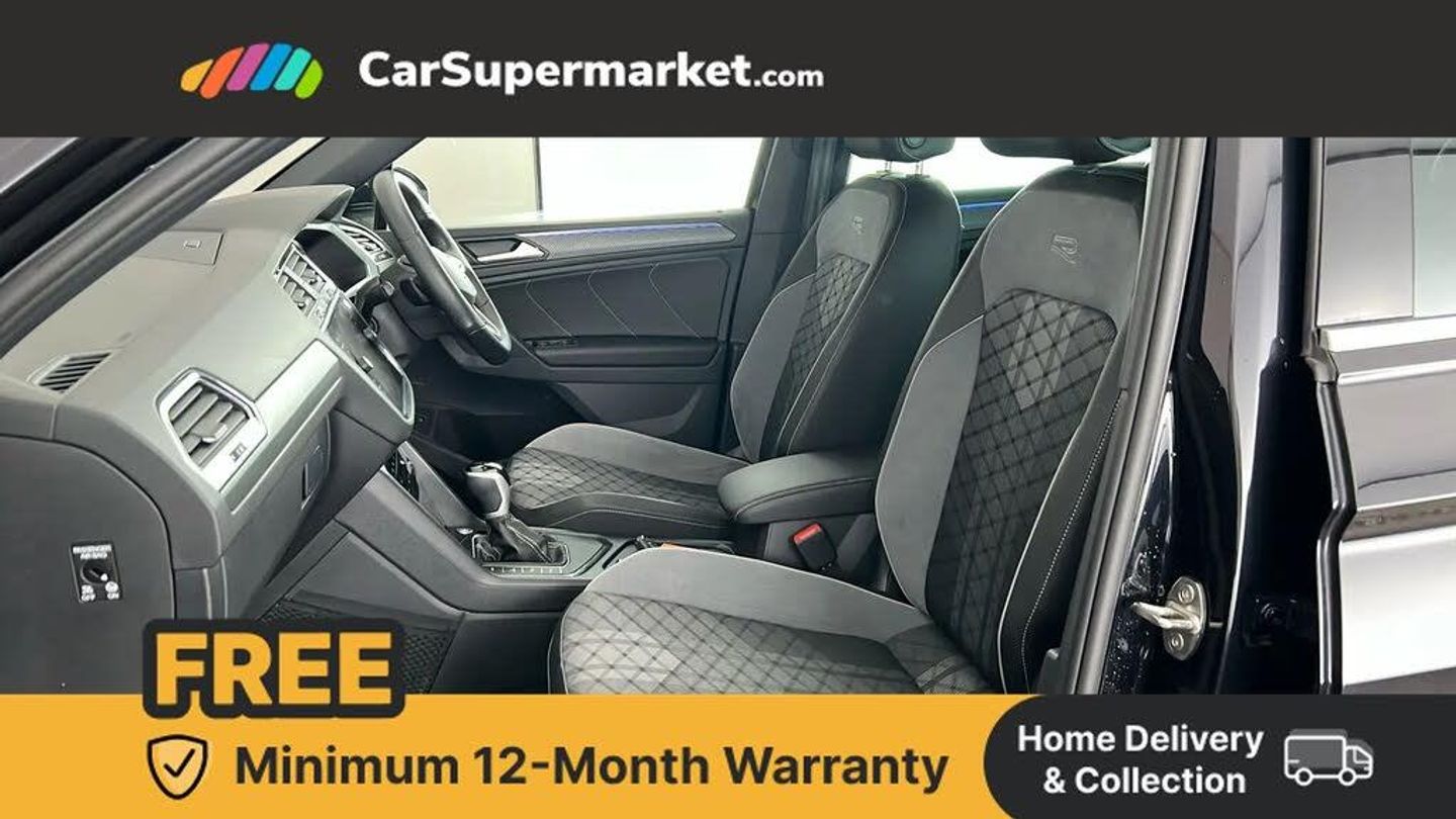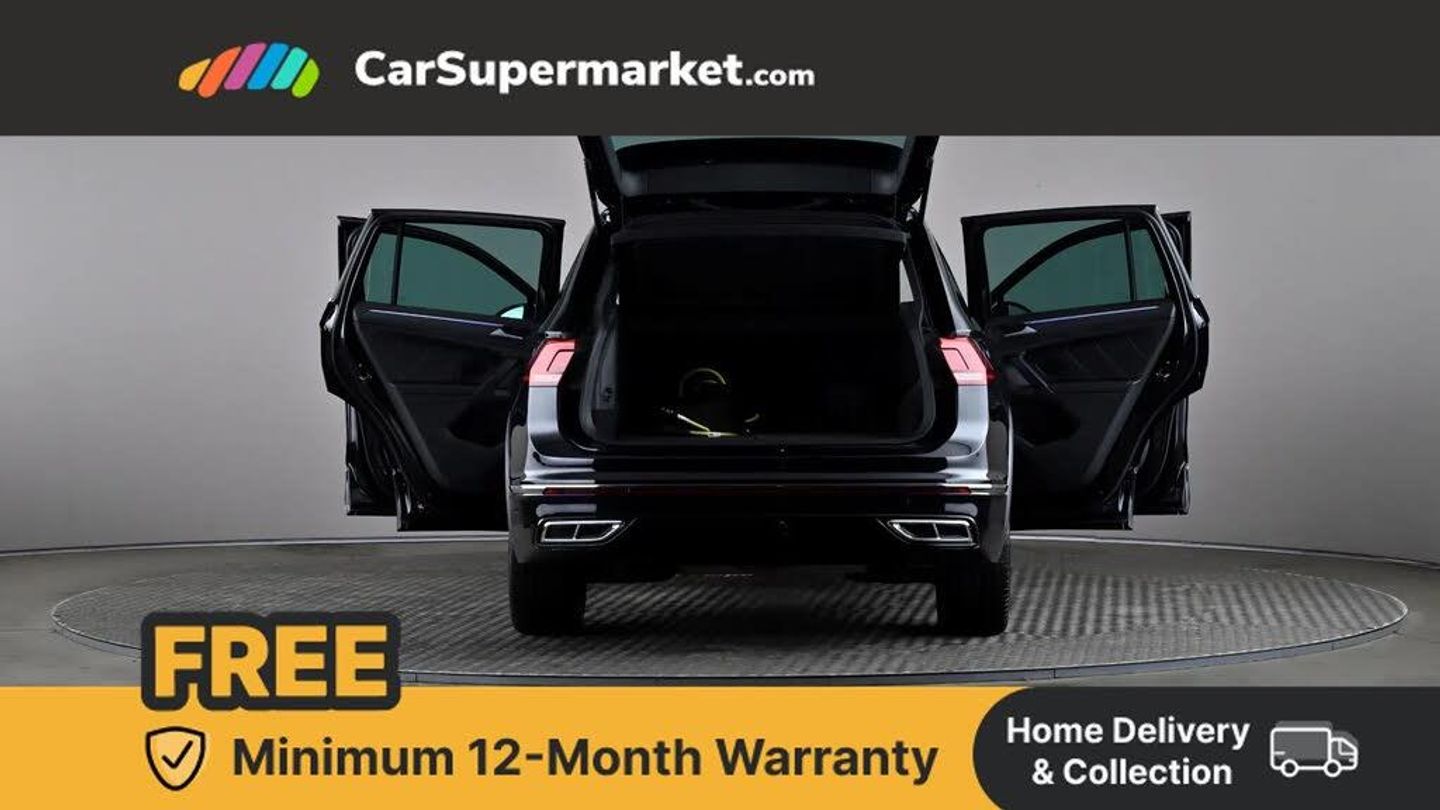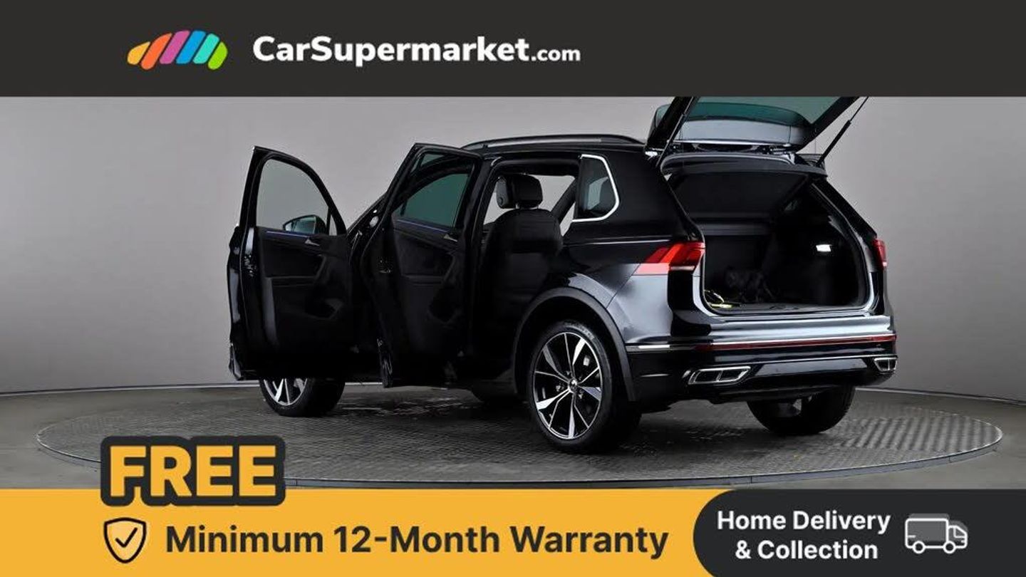 Adaptive cruise control ACC stop and go including speed limiter,App-Connect incl. App-Connect Wireless for Apple CarPlay and Android Auto,Bluetooth phone integration system,Distance control assist,Driver alert system,Driver profile selection,Dynamic road sign display,eCall emergency call system,Electromechanical speed sensitive power steering,Engine start/stop button,Lane keeping system Lane Assist,Lights on warning,Multifunction front facing camera,Outside temperature display,Premium multifunction display with multi colour display,Remote control boot opening,Rev counter,Revision / skills operating concept travel assistant,Service interval indicator,Speed limit display,Start/stop system with regenerative braking,Trip computer,Warning sound and light for doors and tailgate open,Battery regeneration during braking,Charging cable Mode 3 Type 2 / 3 (16A),XDS electronic differential lock for improved traction and handling,4 X 20 watt output,8 Speakers,Diversity antenna for FM reception,Radio,SD card slot,Simultaneous pairing of 2 compatible mobile devices,SMS functionality - read, compose and send SMS messages using touch-screen display,Title and cover art display,USB C ports,Auto dimming interior rear view mirror,Automatic headlight control system,Body colour door handles,Chrome moldings on the side windows,Coming/leaving home lighting function,Dynamic headlight range control,Front and rear electric windows,Heated rear window,High level 3rd brake light,Laminated safety glass windshield, heat and sound insulating,LED headlamps with LED separate daytime running light and dynamic cornering light,LED rear combination lamps,LED rear number plate lights,License plate carrier in front and rear,R Line body kit,R Line side sills,Rain sensor windscreen wipers,Rear exhaust tailpipe,Rear fog lamp,Rear side wing doors,Rear spoiler in R style,Rear windscreen washer and wiper with interval delay,Side and rear windows in heat insulating glass,Trailer Stability Programme,Unique R Line badging,Windscreen wipers/ intermittent wipe + 4 position delay,12V outlet in center console rear and in luggage compartment,12V outlet in front and tray,2 cup holders in front,2 LED front reading lights,2 LED rear reading lights,3 bench rear seats in 2nd row,3 rear headrests,4 load lashing points,40:20:40 split folding rear seats,Air Care Climatronic 3 zone automatic climate control with enhanced air filter and controls in the rear,Backrest release for left front seat,Black headlining,Brushed stainless steel pedals and footrest,Climate control unit rear with touch function,Door and side trim panel in foam film, insert in leatherette,Front centre armrest,Front footwell illumination,Front seats head restraints (x-adjustment),Height adjustable front seats,Height/reach adjust steering wheel,Instrument lighting white adjustable panel illumination,Interior light with delay,Isofix Preparation 2 Rear child seats,Leather gear knob,Lockable cooled glovebox,Luggage compartment lighting,Luggage net,Rear bench seat asymetrically split folding, longitudinally movable and folding with load-through hatch and center armrest,Remote unlocking for rear seat backrest,Removable luggage cover,Removable rear headrests,Safety optimised front head restraints,Single front passenger seat,Sliding/reclining rear seats,Standard rear seat release,Storage compartment in driver's door,Storage compartment in passenger's door,Storage compartment in rear doors,Storage compartments in luggage area left and right,Storage tray on dashboard,Sun visors with illuminated vanity mirrors,Top front comfort seats,Variable boot floor, height adjustable and removable,Driver assistance pack plus - Tiguan DSG,3 point seat belt for centre rear seats,3 point seat belts with seat belt pretensioners for the outer rear seats,Active bonnet,Curtain airbags for front and rear passengers,Driver/Front Passenger airbags,Drivers knee airbag,Electronic parking brake with auto hold,Electronic Stability Control with driver steering recommendation, ABS, ASR, EDL, EDTC and trailer stabilization,Front assist with autonomous emergency braking (for Adaptive Cruise Control ACC up to 130 mph),Front disc brakes,Front passenger airbag deactivation,Front side airbags,Height adjustable front 3 point seatbelts + pretensioners,Hill hold control,Manual child proof rear door locks,Pedestrian monitoring system,Power assisted brakes,Proactive passenger protection system in combination with front assist,Rear disc brakes,Rigid safety cell with front and rear crumple zones,Two tone horn,Tyre pressure loss indicator,Warning sound and light for front seat belts if unfastened,Anti theft alarm system with interior monitoring, backup horn and towing protection,Anti theft wheel bolts,Electronic engine immobiliser,Tool kit,Tyre mobility kit Includes 12V compressor and tyre sealant,Deep Black