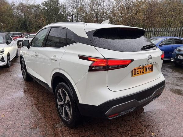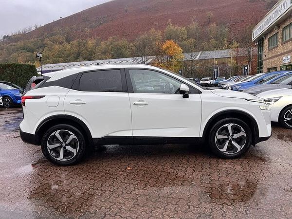 RESERVE ON LINE..ONE OWNER FROM NEW NISSAN HISTORY WITH 18" ALLOYS, NAVIGATION, APPLE ANDROID PLAY, GLASS ROOF PACK, PRIVACY GLASS, F&R PARK AND REAR CAMERAThis 2022 Nissan Qashqai DIG T N Connecta is a superb example, having been owned by just one person from new. This popular family SUV boasts a 1.3L Petrol Hybrid engine and meets Euro 6 emissions standards. Inside, you'll find automatic dual zone climate control with a pollen filter, ensuring a comfortable cabin environment for all occupants. The N Connecta trim also comes equipped with LED headlights for enhanced visibility and the Glass Roof Pack, which includes a fixed panoramic sunroof, bathing the interior in natural light.Further enhancing your driving experience, this Qashqai features intelligent blind spot intervention and blind spot warning systems, offering an extra layer of safety and awareness on the road. This particular model stands out with its generous boot space, making it ideal for luggage, shopping, or family adventures. Additionally, its placement in a low insurance group means that running costs are kept refreshingly affordable, indicating its excellent value compared to similar vehicles.