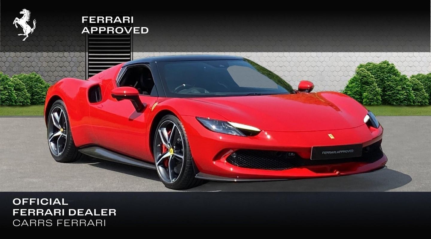 296 GTB in Rosso Corsa with roof painted in Nero DS and exterior carbon fibre options including rear diffuser. Car specified with sports tail pipes, 20" diamond finished wheels and Scuderia shields. Inside, the car is specified in Nero leather with rosso carpets and Tricolore details including paddle edges and special request embroidered Tricolore on the headrest of the racing seat. In terms of equipment, the car benefits from suspension lifter and adaptive lights, carbon fibre racing seat lifter and premium HI-FI system. The car has front end paint protection film from Topaz and has free servicing until 2030.