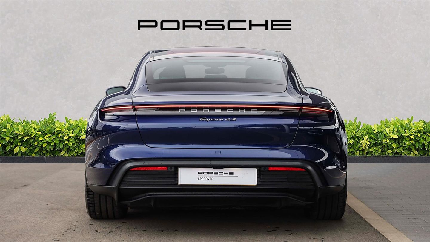 19" Taycan S Aero Wheels,Fixed Glass Panoramic Roof,Performance Battery Plus,Adaptive Cruise Control,Sport Chrono Package,Lane Change Assist,Comfort Access,BOSE Surround Sound System,Privacy Glass,Comfort Seats In Front (14-Way Electric),ParkAssist Including Surround View,4+1 Seats,Electric Folding Exterior Mirrors,Front Seats With Memory Package,Automatically Dimming Exterior & Interior Mirrors,Side Window Trims In Black (High-Gloss),Electric Charging Port Cover,On-Board DC-Charger With 150 KW,Public Charging Cable (Mode 3),Porsche Crest On Headrests (Front Seats),Two Year Porsche Approved Warranty,Two Year Porsche Roadside Assistance,Video Of Vehicle Available On Request