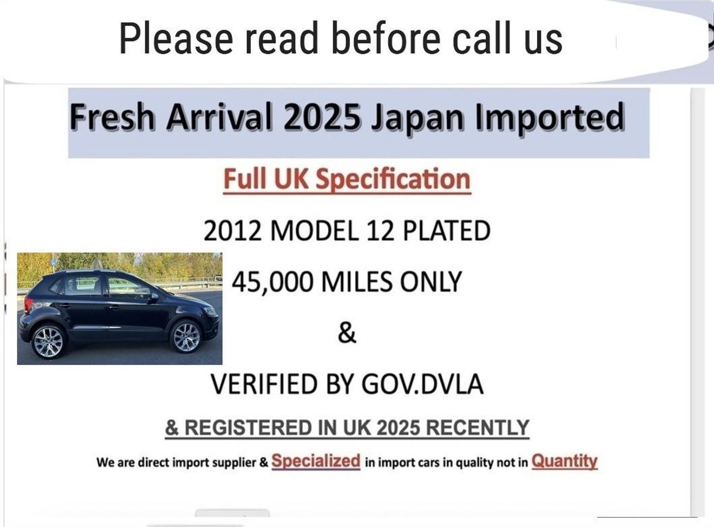 FOR TEST DRIVE Need Original Photo ID ( Driving License/Passport, to be kept in office for duration ) TOP RATED GOOGLE BUSINESS REVIEWS // Uk CAR HEROES // 07760 707244 / 0121 572 9189 // Base in Maypole on main Warstock road next to Lidil // All cars come With 12 Months Breakdown cover & 03 Month Minimum Warranty // Extendable Warranty Available ( 06 Months, 12 Months & 24 Months ) // Delivery & Finance Option also Available // ULEZ COMFORT NO CHARGES // STUNNING EXAMPLE // ULEZ COMFORT EURO 6 // 2025 FRESH JAPAN IMPORT // 2012 PLATE VOLKSWAGEN CROSS POLO DUNE X SE DSG 1.2 PETROL AUTOMATIC 5 DOOR HATCHBACK , LOW 26000 MILES ONLY , ONLY ONE COMPANY OWNER IN UK , ABS, Alloy Wheels, Air Condition , Full Climate Control , Electric Windows, Sat Nav , Touch Screen , Usb , Bluetooth & Much More , HPI CLEAR .