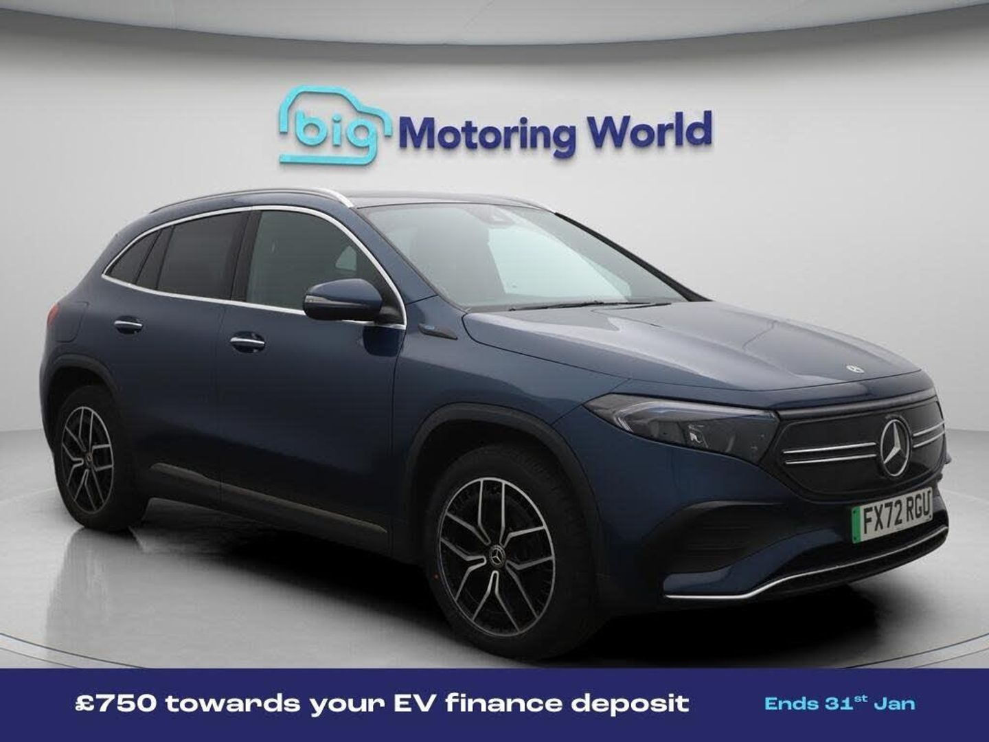 £750 towards your finance depo-Our Mercedes-Benz EQA is finished in Blue. Specification includes a range of fantastic features including £750 towards your finance deposit, Comfort Pack, All Wheel Drive, 19'' Alloy wheels, Part Leather Seats, Air Suspension, Apple CarPlay, AMG body styling, Premium, Electric Panoramic Roof Specification information is supplied by CAPHPI and may vary to the actual car. This data does not form any part of a buying contact. Please check specification prior to purchase in-store. The MOT is valid until September 2026, visit bigmotoringworld.co.uk for more photos, a 360 tour, service history and a free HPI report.Were BIG on peace of mind and this Blue Mercedes-Benz EQA has completed our comprehensive 200 point inspection and passed all checks. Its ready for you to drive away with immediate collection in-store. We include a 90-day warranty as standard plus an option to extend for up to 3 years.Reserve this car exclusively for you, safely and securely at bigmotoringworld.co.uk, with a fully refundable £99 deposit. Test drive before you buy, with no commitment, no hassle and a completely haggle free experience. Still searching and want to see thousands more cars? We are BIG on choice with over 8000 cars to choose from.Visit our award winning web site bigmotoringworld.co.uk.Were Big Motoring World and were BIG on what matters to you.
