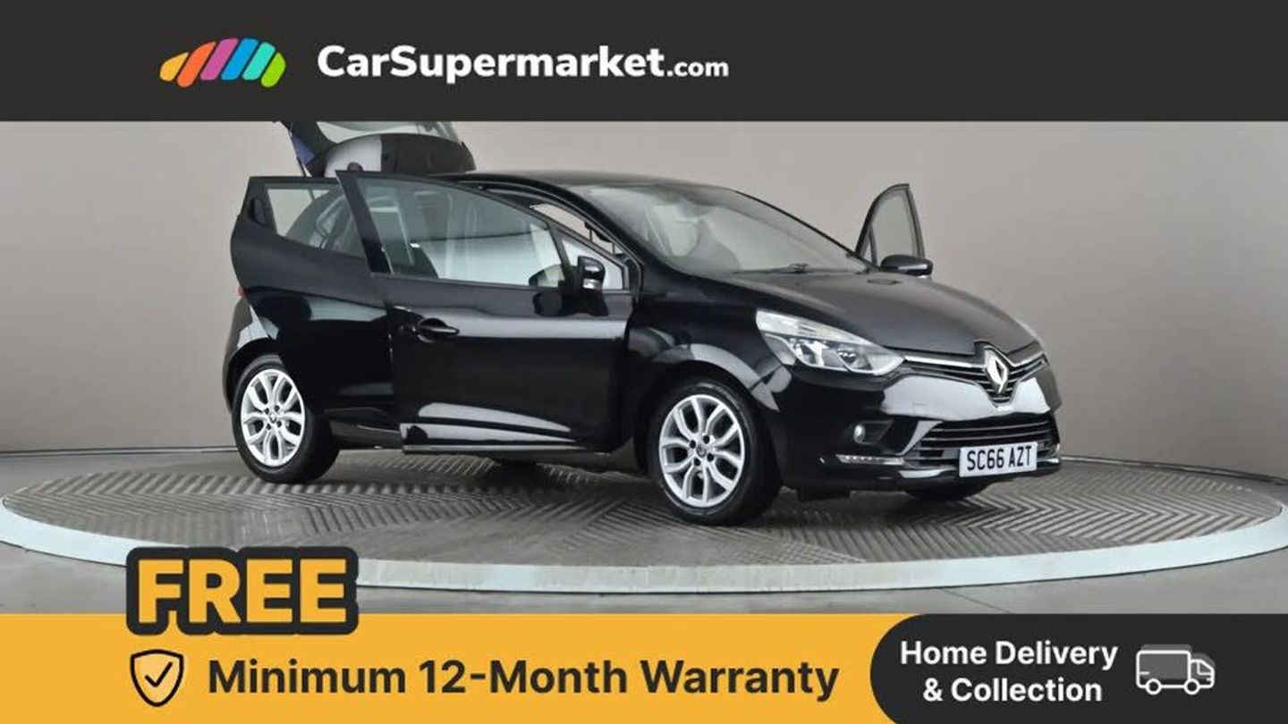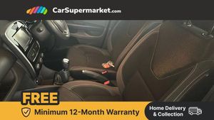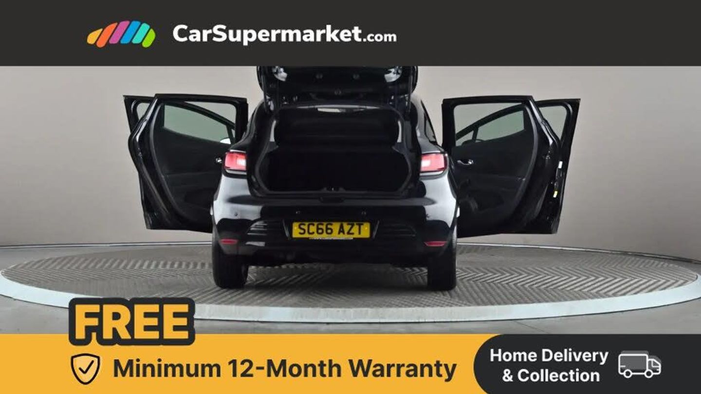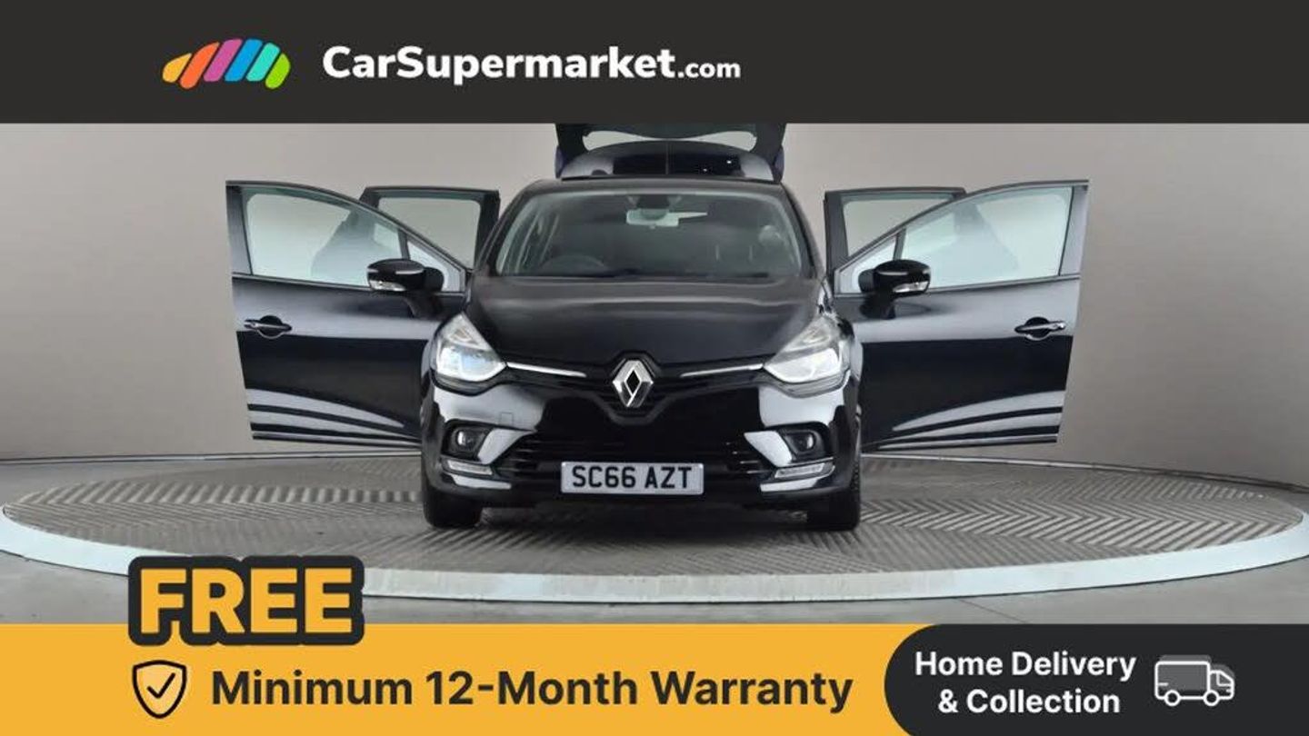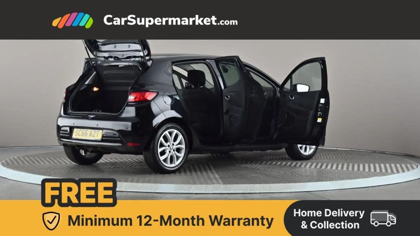 Cruise control + speed limiter,Push button starter,Renault MediaNav with 7" touch screen and Navteq Nav 'n' Go Satellite Navigation,Smartphone cradle,Trip computer,Variable PAS,4x20W Arkamys radio with bluetooth handsfree and USB,Aux-in socket,Automatic headlights + automatic windscreen wipers,Black door protector with chrome inserts,Black headlamp surrounds,Body colour door handles,Body coloured bumpers,Body coloured rear spoiler,Chrome tailgate decoration,Electric adjustable door mirrors,Electric front windows + one touch + anti-pinch,Front fog lamps,Heated door mirrors,LED daytime running lights,Rear wiper,Variable front intermittent wipers,12V Accessory socket,3 rear height adjustable headrests,60/40 split rear seats,Air recirculation control,Chrome gear knob insert,Chrome interior door handles,Design cloth upholstery,Driver's seat height adjustment,Front cupholders,Front door storage bin,Glovebox,Height adjustable front headrests,Height/reach adjust steering wheel,Isofix system on outer rear seats,Leather steering wheel with chrome inserts,Multi function steering wheel,Pollen filter,System for Restraint and Protection SRP-front seats,3 point seatbelts on all rear seats,ABS+EBD+Brake assist,Driver and passenger front and side airbag deactivation,Driver/Front Passenger airbags,Driver/front passenger side airbags,ESP + Traction control + Understeer control,Front side airbags(head+thorax),Height adjustable driver's seatbelt,Hill start assist,Seatbelt warning,Tyre pressure monitoring system,Anti-drill door locks,Child lock control of rear doors and windows,Deadlocking system,Hands free Renault card,Locking fuel filler cap,RAID (Renault Anti-Intruder Device) with automatic door locking,Remote central locking,Thatcham Cat 2 engine immobiliser,Dark carbon soft touch dashboard,Gloss black air vent surround,Gloss black centre console,Gloss black dashboard inserts,Diamond Black