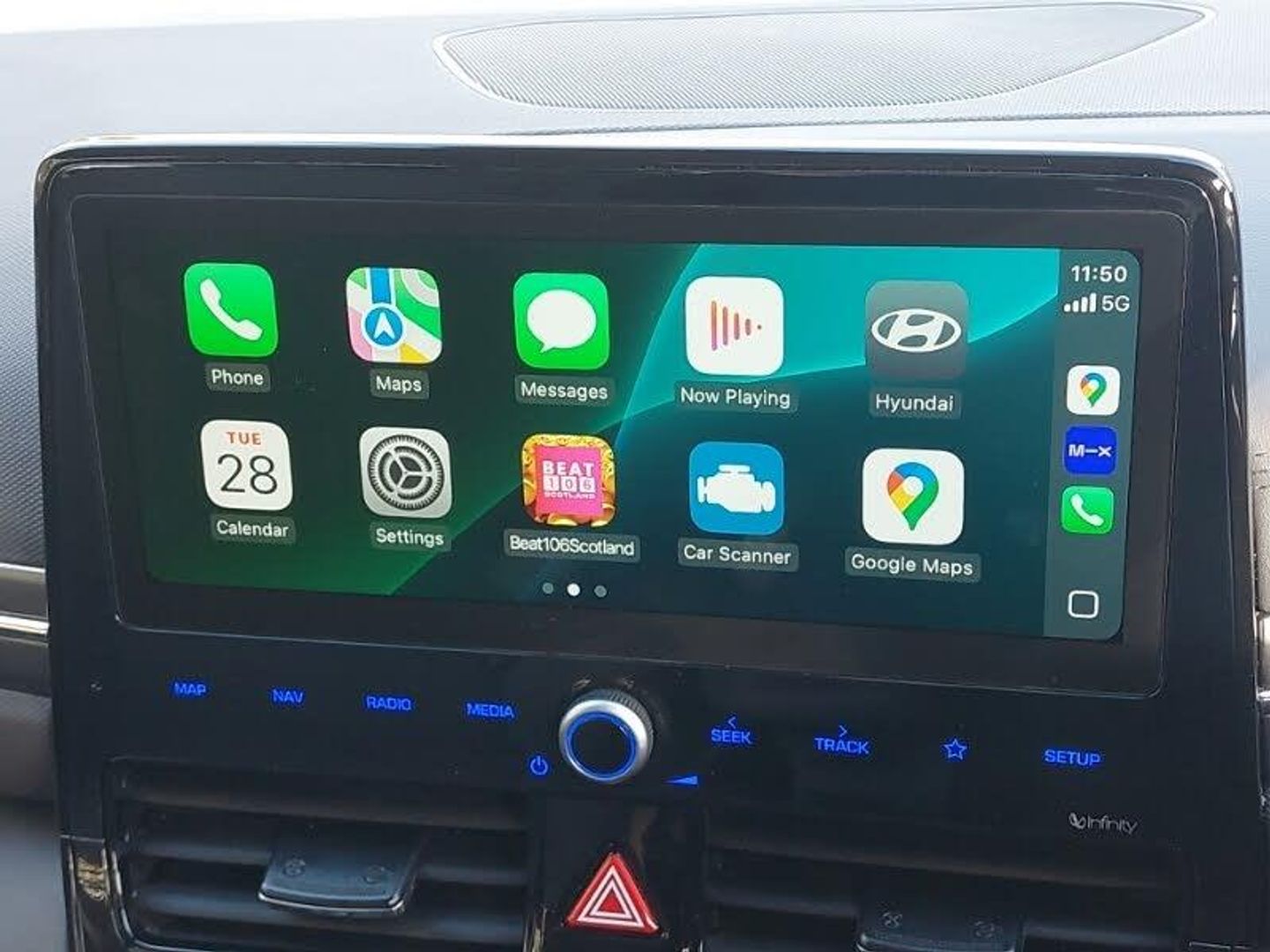 Android Auto, Apple CarPlay, Cruise control, Heated steering wheel, LED daytime running lights, LED Headlights, Steering wheel audio controls, 10.25" touchscreen satellite navigation includes traffic messaging channel, mapcare, live services and bluelink, Cruise control, Wireless phone charging pad, Parking system with rear camera and guidance system, Steering wheel audio, phone and cruise controls, DAB Digital radio, Heated front seats, 15" Design B alloy wheels