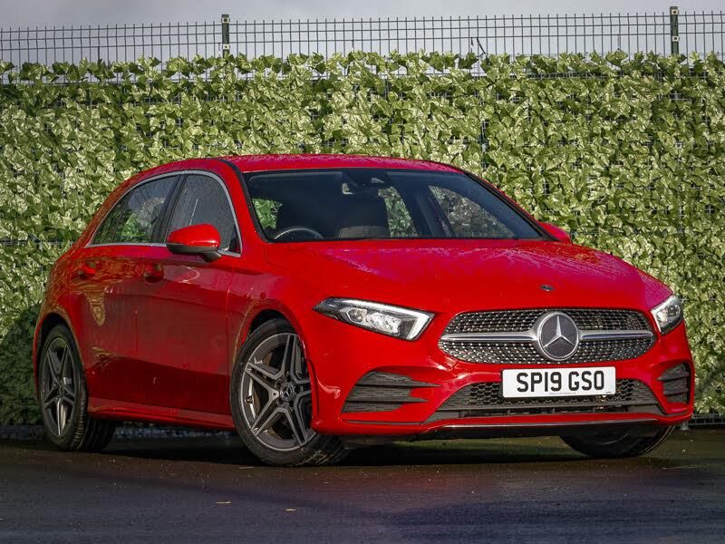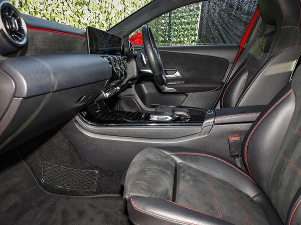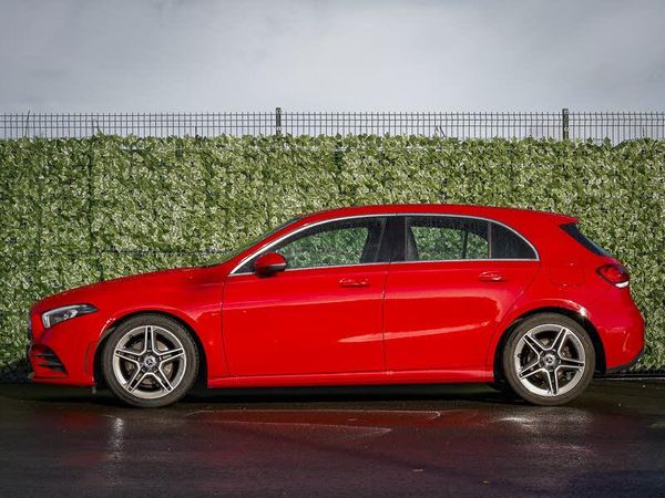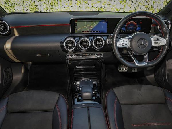 Seat comfort pack - A Class, 10.25" media display, 7" colour screen in instrument panel, 180 degree rear view camera with parking guidelines, DYNAMIC SELECT with a choice of driving modes (ECO, Comfort, Sport, Sport+ and Individual), Mercedes me connect including emergency call system, accident recovery, breakdown and maintenance management, Speed sensitive power steering, Lowered comfort suspension, MBUX multimedia system with DAB digital radio and touchpad including satellite navigation, Dual bluetooth interface, 2 USB ports (type C), Active aerodynamics with AIRPANEL in the front apron, LED high performance headlamps with integrated LED daytime running lights, Headlamp assist automatic headlamp activation, 3 Spoke flat bottom leather multi function steering wheel with perforated leather in grip area, 40:20:40 split folding rear seats, Artico man-made leather/Microfibre Dinamica upholstery with red contrast stitching, Gearshift paddles on steering wheel, Heated front seats, ISOFIX Child seat top tethers and anchor fixings, Two zone thermotronic luxury automatic climate control, ABS with Brake Assist, Crash responsive emergency lighting, Tyre pressure monitoring system, Remote central locking and crash sensor with emergency opening function, Alarm system/interior protection/immobiliser, 18" AMG 5 twin spoke light alloy wheels in titanium grey with highsheen finish