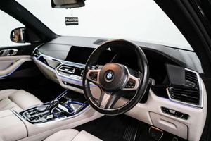 20GB Hard Disc Drive HDD Memory,20in Alloy Wheels - M light Star-Spoke Style 740 M Bicolour with Mixed Tyres and Run Flat Tyres,Active Air Stream Kidney Grille,Active Guard Plus,Adaptive 2-Axle Air Suspension,Adaptive Air Flap Control Bar - High-Gloss Black,Air Conditioning - Automatic with 2.5 Zone Control,Airbags - Driver - Front Passenger- Rear and Side,Alarm System - Thatcham 1 with Remote Control and Engine Immobiliser,Ambient Interior Lighting,Armrest - Front and Rear Integrated into Door Trim,Attentiveness Assistant,Automatically Dimming Rear View Mirror,BMW Connected Package Professional,BMW ConnectedDrive Online Services,BMW Gesture Control,BMW Individual High-Gloss Shadowline,BMW Individual Roof Rails High-Gloss Shadow Line,BMW Legal Emergency Call,BMW Live Cockpit Professional,BMW TeleServices,Brake Force Display,Brake System,Brake-Pad Wear Indicator,Centre Armrest - Rear - Foldable with 2 Cupholders and Storage Compartment,Centre Console Includes Storage Compartment,Centre Lock Switch - Driver and Front Passenger Door,Child Seat ISOFIX Attachment - Outer Rear Seats - includes Top Tether,Closing System with Central Locking,Compartment in Front of Cupholder,Crash Sensor - Activating Central Locking Release - Hazard Warning Lights - Fuel Cut Off - Interior Lighting and Activation of the Safety Battery Clamp,Cruise Control with Brake Function,Cup Holders - Front x2 and Rear x2,DAB Tuner,DSC - Dynamic Stability Control - Stabilises the Vehicle in Extreme Situations - Controls Traction,Daytime Running Lights - LED,Deformation Zones - Front and Rear,Door Pockets - Front and Rear,Door Sill Inlays - BMW M Designation Illuminated,Drive Performance Control with ECO PRO - Comfort and Sport,Dynamic Brake Lights with LED Technology,EPS - Electric Power Steering with Servotronic,Electric Windows - Front and Rear with Open-Close Fingertip Control - Anti-Trap Facility and Comfort Closing Function,Electrical Steering Column with Adjustable Height and Length,Electro-Mechanical Parking Brake with Automatic Drive-Away Release and Auto-Hold Function,Enhanced Bluetooth Telephone Preparation with Wireless Charging,Exhaust Tailpipes - Single - Left and Right - Chrome,Expanded Exterior Mirror Package,Exterior Mirror Housing - Body Colour,Exterior Mirrors - Electrically Adjustable - Automatic Parking Function - Heated and Drivers Anti-Dazzle,Favourite Buttons,First Aid Kit and Warning Triangle,Follow Me Home Headlight Function,Footwell Lights - Front,Front Grille Bars - Pearlescent Chrome,Head Airbags - For First and Second Row Seats,Head Restraints - Front Anti-Whiplash,Headlining - Anthracite,Heated Windscreen Washer Jets,HiFi Loudspeaker System,Instrument Panel in Sensatec,Interior Light - Rear Centre,Interior Trim - Aluminium Tetragon,Knee Airbag,LED Fog Lights,LED Headlights,LED Rear Lights,Light Inside Glove Compartment,Lockable Glove Compartment,Locking Wheel Bolts,Luggage Compartment - Light,Luggage Compartment Floor Panel with Integral Storage Tray,M Aerodynamic Bodystyling,M Designation on Front Side Panels - Left and Right,M Leather Steering Wheel,M Specific Floor Mats,M Specific Key,M Specific Pedals,M Specific Steering Wheel,M Sport Braking System,M Sport Package,Make-Up Mirror Lights,Mechanical Childproof Lock - Rear Doors,Multi-Function Controls for Leather Steering Wheel,Multifunctional Hooks,Non Smokers Package,OBC - On Board Computer,Oil Sensor For Level and Grade,Outer and Centre Air Intakes on Front Bumper - High-Gloss Black with Pearlescent Chrome Finish,PDC - Park Distance Control - Front and Rear,Parking Assistant,Passenger Seat Airbag Deactivation - Front,Passenger Seat Occupancy Sensor For Driver and Passenger Side,Passive Protection for Pedestrians,Power Sockets 12v - 2x Centre Console - 1x Luggage Compartment,Rain Sensor with Automatic Headlight Activation and Windscreen Wiper Control,Reading Lights - Front,Safety Battery - Terminal Clamp,Seat Adjustment - Front Electric with Driver Memory,Seat Back with Flap Pocket,Seat Belts Front and Rear - Seat Belt Tensioner - Front and Outer Rear Seats - Belt Force Limit,Seat Heating for Driver and Front Passenger,Side Elements - High Gloss Black,Side Impact Protection,Side Window Graphics - Satin Aluminium,Speed Limit Display,Speed Limiting Function,Split Folding Rear Seats 40-20-40 Configuration,Sport Automatic Transmission,Sport Seats for Driver and Front Passenger,Start-Stop Toggle - Diamond-Shaped Trim Finisher in Pearl Chrome,Storage Tray and Compartment with Lid in Centre Console,Sun Visors with Illuminated Vanity Mirrors,TPMS - Tyre Pressure Monitoring System,Tailgate Automatic - Two Part Top-Hinged Section Which Can Be Opened Separately and Manual Bottom-Hinged Section,Telephony with Wireless Charging,Third Brake Light - Spoiler,Toolkit Located in Luggage Compartment,Two Tone Horn,USB Connection - USB Type A 1.5A in Cupholder - USB Type C 3A in Centre Armrest,Welcome Light Carpet,WiFi Hotspot Preparation,X5 on Tailgate - Left,iDrive Touch Controller with Shortcut Buttons,xDrive Designation on Tailgate - Right,22in Alloy Wheels - M Light Double-Spoke Style 742 M Bicolour with Mixed Tyres,BMW Individual Extended Merino Leather - Ivory White-Black,Carbon Black,Comfort Package,Interior Trim - BMW Individual - Piano Black,M Sport Plus Package,Rear Seat Entertainment,Sun Protection Glazing,Technology Package,Technology Package - Bowers and Wilkins,Third-Row Seating,Visibility Pack