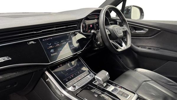 AC/Climate;Introducing this Audi Approved Q7 Black Edition 55 TFSI Quattro in Mythos black with its 21" 10-spoke star style Anthracite black Audi sport alloy wheels which look superb out on the roads. The LED headlights with LED rear lights create that strong visibility in all weather conditions. This Audi Q7 comes fitted with some fantastic features, such as the reversing camera which creates that additional vision and assists whilst maneuvering those tighter spaces. The heated front seats are perfect for those cooler mornings. Another brilliant feature, is the 4-zone deluxe automatic climate control which allows the driver and passengers to adjust to their preferred climate on all journeys. The 4-way lumbar support is wonderful for maximising comfort behind the wheel. The privacy glass creates that additional privacy for passengers on all journeys. Connectivity is made seamless thanks to the Bluetooth interface. ISOFIX child seat mounts are fitted to this Q7, making it the perfect vehicle for the whole family to enjoy. The multimedia interface allows the front passenger and driver to gain access to a range of different media, such as the driver assist which can be adjusted to your driving preference on any journey. Apple Carplay and Android Auto can be accessed via the Smartphone interface on the multimedia interface, allowing you to use apps like Spotify, Google Maps, Apple Music and other apps also. Another brilliant feature is the Audi drive select which allows you to select yo...