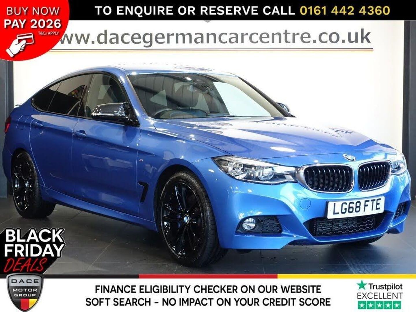 THIS AUTOMATIC BMW 3 SERIES GRAN TURISMO 320d M SPORT IS FINISHED IN A STUNNING ESTORIL BLUE AND HAS FULL BLACK LEATHER INTERIOR. IT COMES WITH SERVICE HISTORY, HEATED FRONT SEATS, PRO NAVIGATION, HARMAN KARDON SPEAKERS, 19 INCH ALLOYS, SPORT AUTOMATIC GEARBOX, ADAPTIVE LED HEADLIGHTS, PRIVACY GLASS, REAR PARKING SENSORS, IN CAR ENTERTAINMENT, MULTI FUNCTION STEERING WHEEL, DUAL CLIMATE CONTROL, AIR CONDITIONING, ELECTRIC WINDOWS, ELECTRIC DOOR MIRRORS, RAIN SENSING WIPERS. •••••••••• F I N A N C E • A V A I L A B L E •••••••••• - *** NOT SURE YOU'RE ELIGIBLE FOR CAR FINANCE? *** CHECK TODAY USING OUR FREE CAR FINANCE CHECKER ON OUR WEBSITE.*** Dace Motor Group have a dedicated team of finance experts waiting to help with your enquiry. Over the past 30 years we have forged relationships with the country's largest and best finance houses. We are specialists in Hire Purchase (HP), Personal Contract Purchase (PCP) as well as assisting those with poor credit or previous credit problems - •••••••••• A B O U T • U S •••••••••• - At Dace German Car Centre, we are very proud to have been named the first Trading Standards Approved Car Retailer, with process and procedures developed with and applauded by them. We do recommend that customers RESERVE their choice of vehicle prior to making their trip, to avoid potentially missing the car. Visit our website https://www.dacegermancarcentre.co.uk/ At Dace German Car Centre Stockport we carry over 700 cars in group stock TO ENQUIRE OR RESERVE PLEASE CALL | 0161 442 4360 •••••••••• W A R R A N T Y • A V A I L A B L E •••••••••• - With effect from the 1st May 2024 the Warranty Solutions Group will be providing their highest level of national warranty cover on all of our cars + 3 MONTHS WARRANTY FREE + EXTENDED WARRANTIES AVAILABLE - •••••••••• A D V E R T • A C C U R A C Y •••••••••• - Although we make effort to ensure the description of our vehicles is accurate, mistakes can happen. We are human after all! So, whether it is the exact specification of a vehicle you need clarifying, the service history dates and mileages, even the colour shade – please speak to a member of our sales team and they will happily confirm all you need to know about this car. PLEASE NOTE – our adverts can never be cited as the reason you have brought a car incorrectly, as no purchase can be completed without the customer physically examining the car. As such, the physical viewing and documentation provided for the vehicle is deemed to be the basis for the sale, not an advertisement that may on occasion contain an error. - Visit our website https://www.dacegermancarcentre.co.uk/ At Dace German Car Centre we carry over 700 cars in group stock. Many have Full Service History, Automatic or Manual and Models like xDrive, Clubsport, ED Plus, Gran Coupe, LCP,F22, Individual, M Lite, Shadow edition, Alpina, Bi Turbo, Competition pack, V8, Luxury, M Sport Highline, M3, Modern, M Performance, some of our cars will have Satellite Navigation, Sunroof, Pro Sat nav, Harman Kardon, Heated seats, Pan roof, Apple car play, Tv Function, 360 Camera, Reverse Camera, Memory seats, Rear entertainment, heads up display, Leather and Bluetooth.