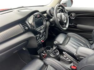 Compatible mobile phone bluetooth with audio streaming,Cruise control with brake assist,Instrument cluster,Mini E-call,MINI TeleServices,On board computer,Service interval indicator,6.5" touchscreen with LED ring,FM tuner and DAB digital radio,Automatic headlight activation switch,Body colour fuel filler cap,Chrome border high gloss black slats radiator grille,Chrome line exterior,Dynamic brake lights,Electric front windows,Heated rear window,Heated windscreen washer jets,LED headlight with closed ring and daytime driving lights,Left exhaust tailpipe with chrome finisher,Metal door sill strips with MINI imprint,Model logo Cooper on right of tailgate,Rain sensor window wipers,Rear fog lights,Rear LED lights with union jack design,Rear window wiper,Side scuttle panel with integrated indicator,Sun/heat protection glass,White indicator lenses,12V Accessory socket in centre console,4 lashing eyes in luggage compartment,60/40 split folding rear seat,Chrome interior highlights,Cupholders,Front and rear isofix with front passenger airbag deactivation,Glove compartment,Height and length steering column adjustment,Interior lighting with 12 basic colours selectable via toggle switch in roof,Leather gearshift lever and handbrake gaiters,Manual air conditioning,Mechanical seat adjustment, driver seat height adjust, forward/back and front seats backrest,Mini logo projection on floor from drivers exterior mirror,MINI Yours leather steering wheel with silver contrasting stitching with MINI Yours badge,Multifunction steering wheel,Satellite grey headlining,Storage compartments in doors,Sunvisors with vanity mirrors,3 point seatbelts on all four seats,6 Airbags - front, side, head and seat belt tensioners,Anti-lock braking system (ABS),DSC - Dynamic Stability Control,Front and rear disc brakes,Hill start assist,Single tone fanfare horn,Tyre pressure monitoring system,Alarm system with tilt sensor, monitoring doors, bonnet interior and tailgate,Electronic vehicle immobiliser,Start/stop toggle with keyless go,Chrome line interior,Tool kit,Comfort Pack,Darkened Rear Glass,MINI Driving Modes,MINI Yours Lounge Leather - Carbon Black,Navigation Pack,Roof and Mirror Caps - Black,Solaris Orange