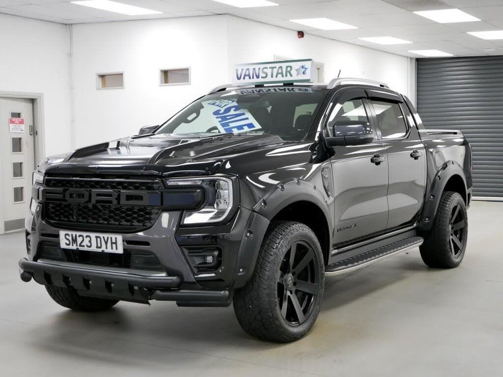 2023 Plate Ford Ranger 2.0 EcoBlue 205 BHP Wildtrak Edition 4WD Automatic Crewcab Pickup .. High Spec NEW SHAPE Example in Metallic Agate Black with Air Con , UPGRADED BLACK ALLOYS , WIDE ARCH DESIGN PACK , UPGRADED FRONT GRILL , BONNET SCOOP , TOW PACK , Factory Sat Nav Media , Full Black Leather Interior , Automatic Gearbox , Automatic Gearbox , Four Wheel Drive , Heated Front Seats , Electric Windows + Mirrors , Heated Front Screen , Power Folding Mirrors , Privacy Glass , Limiter + Cruise Control , Bluetooth , DAB Radio , Factory Front & Rear Parking Sensors , Reverse Camera , Roof Rails , Side Steps , Roller Shutter , Load Liner , Plus all usual styling and refinements found in the Higher Spec Wildtrak Edition models .. Euro 6 Compliant .. 2 Owners , JUST 10000 MILES ! Main Dealer Serviced ! Great Spec , In Stock Now , Ready To Go ! OVER 600 VANS IN STOCK ! , OPEN 7 DAYS ! , VANSTAR IS YORKSHIRE'S LARGEST VAN CHOICE , WE SPECIALISE IN NO VAT VANS , EURO 6 VANS , CREWCAB / KOMBI VANS & TIPPERS & LUTONS ! . FINANCE AVAILABLE & PART EXCHANGE WELCOME ! .. PLEASE USE OUR ON-LINE FINANCE APPLICATION AND PX VALUATION FORMS TO GET STARTED. WE WILL ALSO BUY ANY VAN OUTRIGHT , SEE WEBSITE TO OBTAIN ON-LINE VALUATION , WE ARE ALWAYS WANTING VANS ! . OPEN 7 DAYS A WEEK WITH 100'S OF 5 STAR CUSTOMER REVIEWS ! BIG CHOICE OF FORD TRANSIT CUSTOM , CONNECT , VW VOLKSWAGEN TRANSPORTER , CRAFTER & CADDY MAXI , VAUXHALL VIVARO , MERCEDES SPRINTER & VITO , RENAULT MASTER & TRAFIC , CITROEN RELAY & BERLINGO , PEUGEOT BOXER , PARTNER & EXPERT , NISSAN NAVARA , MITSUBISHI L200 , FORD RANGER , TOYOTA HILUX . WE SPECIALISE IN HIGH SPEC MODELS LIKE LIMITED , SPORT , HIGHLINE , 4MOTION , TREND , SPORTIVE , 4X4 , TAILGATE , LWB , KOMBI , CREWCAB , NO-VAT , NO VAT , BARBARIAN , HIGH ROOF , SPORTLINE , EURO 6 .