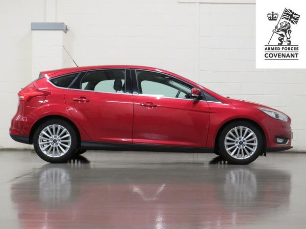 Arrow Motor Company are pleased to present this fantastic Ford Focus Titanium X, finished in the stunning Ruby Red Tinted Clearcoat Metallic Paintwork, with Contrasting Black Partial Leather Contrast Stitched Interior. Equipped with Fords 1.5-Litre Diesel Engine capable of producing bhp whilst providing the most economical of drivers with a highly respectable mpg, with potential to rise to mpg in Extra-Urban environments. This Particular Example has a (FSH) Full Service History and is only 20 Annual Tax. This vehicle also benefits from the following impressive list of features, , Interior Features, Satellite Navigation System | 7.5 Inch Digital Touch Screen Multimedia Display | Rear Parking Camera Display | Front and Rear Ultrasonic Parking Sensor Display | Cruise Control | Heated Front Seats | Park Assist | DAB Radio | Bluetooth Connectivity | WIFI Connectivity | Fully Electrically Adjustable Black Partial Leather Contrast Stitched Drivers Seat | Eco Stop/Start System | Surround Sound Speaker System | Voice Command | Black Leather Heated Multifunctional Steering Wheel | Dual Zone Climate Control | Push Button Start | Hill Start Assist | USB Port | 12v Port | SD Port | AUX Port | LED Coloured Ambient Lighting | Anti-Glare Rear View Mirror | Electrically Adjustable Wing Mirrors | Front and Rear Electric Windows | Speed Limiter | Central Locking | Multifunctional Trip Computer | Black Leather Hand Brake | Branded Chrome Door Sills | Quick Clear Windscreen Control | Black Leather Centre Console | Black Leather Shifter Cover | Front and Rear Interior Illumination | , Exterior Features, 17-Inch 15-Spoke Metallic Silver Alloy Wheels | Front and Rear Ultrasonic Parking Sensors | Rear Parking Camera | Ford Quickclear Windscreen | Chrome Front Grill | Chrome Lined Windows | Chrome Lined Fog Lights | Xenon Headlights with Heated Washers | Wing Mirror Mounted Indicators | Heated Rear Window |