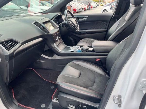 Ebony Leather Interior interior.This 2019 Ford Edge ST Line presents a compelling proposition with its remarkably low mileage of just 56,000 miles for its age. This impressive Euro 6 compliant, four wheel drive SUV is powered by a robust 2.0L diesel engine, offering a blend of performance and efficiency. The ST Line trim level ensures a sporty aesthetic and enhanced features, including striking Bi-LED headlights that illuminate your path with clarity. Inside, you'll find a premium Sony DAB audio system with navigation and 12 speakers, promising an immersive sound experience. Convenience is key with a handsfree power tailgate and keyless entry system, while the driver benefits from a 10-way power adjustable seat with memory function. The SYNC 3 system, featuring an 8in colour touchscreen, Bluetooth, voice control, and emergency assistance, keeps you connected and informed. The generous boot space in this Ford Edge is a significant advantage, providing ample room for luggage, shopping, or sports equipment, making it an ideal companion for families and adventurers alike. These carefully selected features, from the advanced infotainment system to the practical power tailgate and the sophisticated lighting, demonstrate how this particular Edge ST Line stands out from other vehicles in its class, offering a more refined and convenient driving experience.