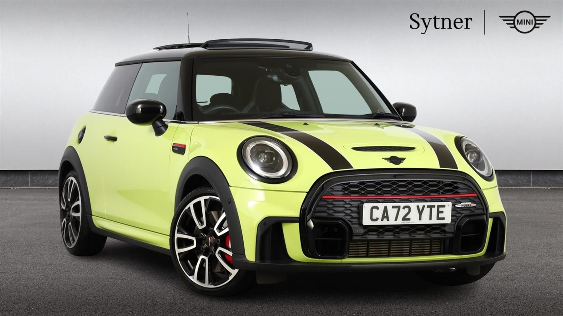 Reserve Online,Panoramic Glass Sunroof,Premium Pack,Premium Plus Pack,18" JCW Course Spoke 2-tone Style Alloy Wheels,Harman/Kardon Surround Sound Audio System,Digital Cockpit,Driving Assistant,Parking Assistant,Front Heated Seats,Reversing Camera,LED Headlights,John Cooper Works Sport Seats,Black Bonnet Stripes,Comfort Access,Sun Protection Glass,MINI Head-up Display,Smartphone Integration,Ambient Lighting,Enhanced Bluetooth with Wireless Charging,Sport Automatic Transmission