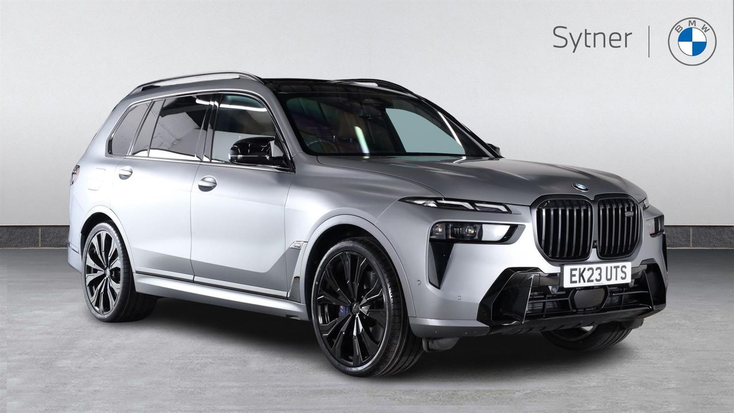 Reserve Online,Skyscraper Grey Satin Wrap,Sky Lounge Pack,23" V-Spoke Style 914 BMW Individual Bicolour Alloys,M Sport Brakes with Blue Calipers,Leather Dashboard,Sky Lounge Panoramic Glass Sunroof,Harman Kardon Surround Sound Audio System,Parking Assistant Professional,High-Beam Assistant,Heated Front Seats,Front Comfort Seats,Sun Protection Glass,Soft Close Doors,Comfort Access,Iconic Glow Kidney Grille,Ambient Lighting,Gesture Control,£700 FDC Available T&Cs Apply
