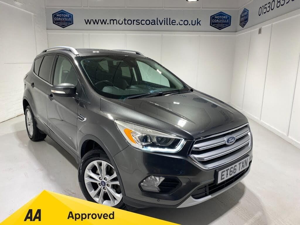 2016 66 Reg Kuga 2.0 TDCi (180PS) Automatic TITANIUM AWD 5dr. Magnetic Grey metallic, Ebony part leather interior, with drivers electric seat adjust, HEATED STEERING WHEEL, SYNC2 TOUCHSCREEN SATELLITE NAVIGATION, DAB with Apple Car Play, Android Auto, Bluetooth USB, 17 inch alloy wheels, APPEARANCE PACK with PRIVACY GLASS and ROOF RAILS, Dual ATC AIR CON, ENHANCED ACTIVE PARK ASSIST to include FRONT and REAR PARKING SENSORS, REAR VIEW CAMERA, DETACHABLE TOWBAR, cruise control, auto wipers, auto lights, keyless start with Ford power button, Quickclear heated windscreen, Thatcham alarm, power heated door mirrors, front and rear electric windows, 63,326 miles (ET 66 TXN).