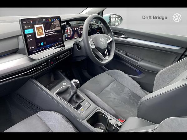 Exterior Features, Rain sensor, Metallic paint, Dynamic headlight range control, Safety, Area view including rear view camera with front and rear view camera system and two side cameras, Auto dimming rear view mirror, Packs, Art Velours upholstery package - Golf, Light and sight pack - Golf Hatchback, Winter package - Golf Hatchback, Paint - Metallic, Metallic - Crystal Ice Blue, Trim - Cloth, Art Velours pack - Soul Black, Wheels, 17" Nottingham alloy wheels, Exterior Features, Front and rear electric windows, Heat insulating windshield made of laminated glass, Rear tinted glass 65% light absorbing from B pillar backwards, Rear windscreen washer and wiper with interval delay, Body colour door handles, Rear exhaust tailpipe, Rear side wing doors, Standard bumpers, 3rd brake light, Automatic headlamp activation with Coming home and Leaving home feature, LED separate daytime running light, Rear fog light on one side and reversing lights on both sides, Welcome light with surround lighting, Safety, ABS, Autonomous emergency braking front assist with pedestrian and cyclist monitoring, Electronic parking brake with auto hold, ESC (Electronic Stability Control), Rear disc brakes, Volkswagen roadside assistance, Activated carbon canister, Adaptive cruise control (ACC), Advanced driver attention and drowsiness monitor, Dynamic road sign display, Multifunction front facing camera for distance control, Oncoming vehicle braking when turning including swerve support, Speed limiter, Body colour door mirrors, Exterior mirrors convex on the left and aspherical on the right, Remote electrically foldable door mirrors, puddle lights and reverse activated passenger's door mirror, 3 point height adj front seatbelts + pretensioners, 3 rear three point seatbelts, Child locks on rear doors, Driver and front passenger airbag with front passenger airbag deactivation, Extended pedestrian protection measures, Two tone horn, Tyre pressure loss indicator, Audio / Communications, E-Sim card for online connectivity, eCall emergency call system, We connect preparation, Wireless app connect, 2 USB C ports in front, 2 USB charging sockets on the centre console in the rear charging capacity upto 45W, Digital radio reception (DAB), Diversity antenna for FM reception, Gaming platform via car app, Infotainment system with 12.9" display, Mobile phone interface with inductive charging feature, Miscellaneous, Multi-color Digital cockpit pro, selection of different info profile possible, Navigation system, Speedo, rev counter, electronic odometer, trip, service interval display, exterior temperature and fuel gauge, Voice enhancer and voice control, Warning signal and warning light for front and rear seatbelts not fastened, We connect plus preparation, Petrol Particulate Filter, Start-stop system with battery regeneration (recuperation - energy recovery during braking), Trim, Nature cross brushed decorative inserts for dashboard and front door panels, 3 rear head restraints, 3 seat bench in 2nd row, Front head restraints, ISOFIX anchors for child seats on outer rear bench seats and on front passanger seat compatible for i-Size, Manual height adjustable front passenger seat, Single front passenger seat, Split folding backrest with centre armrest and unsplit rear seat bench, Interior Features, 12V socket in front centre console, 12V socket in luggage compartment, Chrome plated radiator grille inserts, air vent surrounds and light switch surrounds, Front centre armrest, Leather gearshift handle, Rear cupholder and loadthough, Soul black instrument panel, Standard pedal cluster, Storm grey roof lining, Luggage compartment lighting, XDS electronic differential lock for improved traction and handling, Sun visors with illuminated vanity mirrors, Packs, Parking and comfort pack - Golf Estate/Hatchback, Security, Anti theft wheel bolts, Preparation for alcohol interlock
