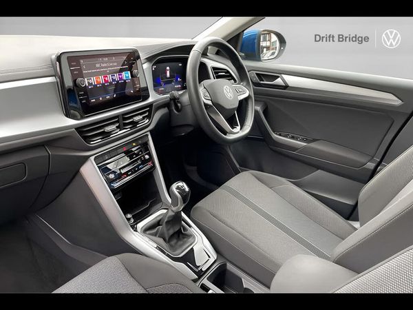 Bluetooth mobile phone interface, Driver alert system with fatigue detection, Driver tips and journey analysis, Emergency call service, Lane keeping system Lane Assist, Modified key software - reduce switch off time for key status change to Long no motion, Online services, Park assist including front and rear parking sensors, Power assisted speed sensitive steering, Service interval indicator, Tailgate/trunk lid release from outside, Think blue trainer driver tips and journey analysis, Warning sound and light for front seatbelts unfastened, Wireless app connect, Battery regeneration during braking, Front shock absorption, Rear shock absorption chassis with increased ride height, Start/stop function with battery regeneration, DAB Digital radio, Diversity antenna for FM reception, Front and rear 6 speakers, Music playback - MP3, WMA and AAC files, Premium USB cable in choice of either Apple or Android smartphone compatibility, SD card slot, Simultaneous pairing of 2 compatible mobile devices, Title and cover art display, We Connect and We Connect Plus functionality, 3rd brake light, Auto dimming interior rear view mirror, Automatic hazard lights activation under emergency braking, Automatic headlight control with LED separate daytime running lights with coming/leaving home function, Black roof rails, Body coloured bumpers and radiator grille with chrome trim and front fog lamps with chrome bezel, Body coloured exterior mirror housings and door handles, Extended roof spoiler, Exterior mirrors aspherical on driver side, convex on front passenger side, External USB type C socket and charging sockets, Front windscreen wiper with intermittent wipe and 4 position delay, Heated rear window, LED Headlights, LED rear combination lamps, LED rear number plate lights, LED tail lamp rear comination lamps, Power windows with comfort operation and circuit breaker, Rain sensor, Rear exhaust tailpipe, Rear fog light on one side and reversing lights on both sides, Rear side wing doors, Rear wash/wipe with intermittent wipe setting, Remote electrically foldable door mirrors, puddle lights and reverse activated passenger's door mirror, 12V power socket in centre console, 3 rear head restraints, 3 seat bench in 2nd row, 4 load lashing points in luggage compartment, Air care climatronic air conditoning system with active combination filter and 2-zone temperature control, Ambient lighting with mirror logo projection, Cloth upholstery, Door and side trim panel in cloth, Drawer under drivers seat, Driver/front passenger seat height adjustment, Front centre armrest, Front comfort sports seats, Front cupholders x 2, Front reading light, Instrument lighting, white adjustable panel illumination, Interior light delay, Isofix child seat preparation, Leather gearshift handle, Load-through provision with cup holder when folded down ('Unsplit rear seat bench, split folding backrest, with centre armrest), Luggage compartment lighting, Lumbar support for driver's and front passengers seat, Non-folding front passenger seat backrest, Single front passenger seat, Storage compartment in left and right luggage area, Storage compartment in rear doors, Storage compartments in driver and front passenger doors, Sunvisors with illuminated vanity mirrors, Variable boot floor, height adjustable and removable, Driver assistance pack without proactive passenger protection - T-Roc, 3 point height adj front seatbelts + pretensioners, 3 point seatbelts in outer rear with ECE label, ABS, Child locks on rear doors, Driver and front passenger airbag with front passenger airbag deactivation, Driver and front passenger safety-optimised head restraints, Drivers seatbelt reminder, Electronic parking brake, Electronic Stability Control (ESC) inc EDL (Electronic Differential Lock) and ASR (Traction Control), Front and rear passengers curtain airbag system including front side airbags, Front assist with city emergency braking and pedestrian monitoring, Front disc brakes, Front seat side impact airbags, Hill start assist, Predictive pedestrian protection, Rear disc brakes, Single tone horn, Tyre pressure loss indicator, Volkswagen roadside assistance, Alarm with interior protection, Anti-theft alarm system with interior monitoring, backup horn, and towing protection, Remote central locking with SAFELOCK, radio remote control with 2 remote control folding keys, Pewter matt decorative inserts for intrument panel, centre console and door panels at the front, Trims for alloy wheels