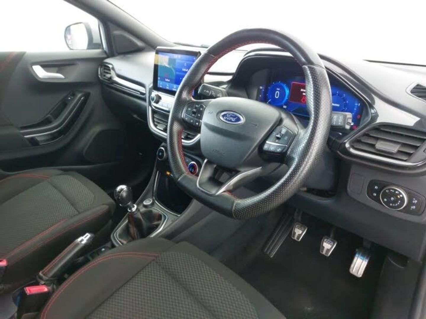Selectable drive modes(Normal, sport, Eco, trail, slippery), Rear parking sensor, Lane keeping aid with lane departure warning, ST-Line body kit with large rear spoiler wth sports suspension, Quickclear heated windscreen, Power foldable heated door mirrors with puddle lamps, Front fog lights with cornering lights and LED rear lamps, Automatic headlights with rain sensing wipers and auto high beam, ST-Line flat bottomed sensico leather steering wheel with leather handbrake and aluminium gear knob, Cloth upholstery, Driver seat height/lumbar adjust, Centre console with armrest and stowage, Pre-collision assist with autonomous emergency braking, pedestrian/cyclist detection & post-collision braking, Electronic stability control (ESC) and hill start assist, Thatcham alarm