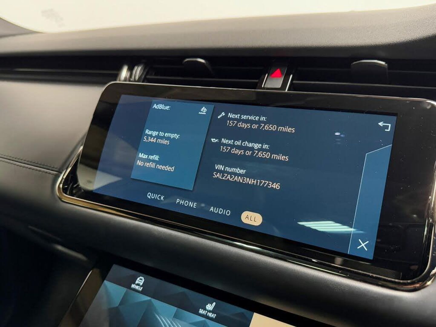 10in Deployable Touchscreen with Lower Touchscreen, 14-Way Heated Electric Seats with Driver Memory and 2-Way Manual Headrests, 20in Alloy Wheels - Style 5079 - Diamond Turned with Gloss Dark Grey Contrast, 40-20-40 Folding Rear Seats, ABS - Anti Lock Braking System, ACC - Adaptive Cruise Control, ATPC - All Terrain Progress Control, All Season Tyres, Ambient Interior Lighting, Analogue Dials with Central TFT Display, Android Auto, Animated Directional Indicators, Apple CarPlay, Approach Lights, Auto-Dimming Interior Rear View Mirror, Automatic Headlight Levelling, Automatic Headlights, Blind Spot Assist, Bluetooth Connectivity, Body Coloured Roof, Brake Pad Wear Indicator, Bright Metal Pedals, Cabin Lighting, Carpet Mats, Chrome Treadplates, Configurable Dynamics, Customer Configurable Autolock, DAB - Digital Audio Broadcast, DSC - Dynamic Stability Control, Driver Condition Monitor, EBA - Emergency Brake Assist, EBD - Electronic Brake-Force Distribution, EPAS - Electronic Power Assisted Steering, ETC - Electronic Traction Control, Efficient Driveline, Electric Parking Brake, Electric Windows with One-Touch Open-Close and Anti-Trap, Emergency Braking, Evoque Badge, Extended Leather Upgrade, Fixed Panoramic Roof Including Powered Blind, Flush Deployable Door Handles, Front and Rear Parking Aid, HDC - Hill Descent Control, Headlights - Automatic High Beam Assist, Headlining - Ebony Morzine, Heated Electric Power Fold Door Mirrors with Approach Lights and Auto-dimming Driver Side, Heated Rear Window with Timer, Hill Launch Assist, Intrusion Sensor, Keyless Entry, Lane Keep Assist, Locking Wheel Nuts, Low Traction Launch, Manually Adjustable Steering Column, Meridian Surround Sound System, Online Pack with Data Plan, Overhead Lighting Console, Overhead Stowage for Sunglasses, Passive Front Headrests, Passive Suspension, Perforated Full Leather Steering Wheel, Pivi Pro - Connected, Power Operated Child Locks, Power Socket Pack 1, Powered Tailgate, Premium LED Headlights with Signature DRL, Push Button Start, R-Dynamic Exterior Pack, RSC - Roll Stability Control, Rain Sensing Windscreen Wipers, Rear Air Vents, Rear Centre Headrest, Rear Collision Monitor, Rear Fog Lights, Rear ISOFIX, Rear Traffic Monitor, Rear View Camera, Remote, Satin Chrome Gearshift Paddles, Seat Belt Reminder, Secure Tracker (12 Month Subscription From New), Six Airbags, Steering Wheel - Heated, Sun Visors - Illuminated Vanity Mirrors, TPMS - Tyre Pressure Monitoring System, TVBB - Torque Vectoring by Braking, Tailgate Spoiler, Terrain Response 2, Traffic Sign Recognition and Adaptive Speed Limiter, Trim Finish - Gradated Linear Dark Aluminium, Twin Sliding Front Centre Armrest, Two-Zone Climate Control, Windscreen - Heated, Windscreen Washer Jets - Heated, Wireless Device Charging, Wireless Device Charging with Phone Signal Booster, Electrically Deployable Towbar, Privacy Glass, 20in Alloy Wheels - 5 Split-Spoke - Style 5076 - Gloss Mid-Silver with Contrast Diamond Turned Finish, Perforated Windsor Leather - Ebony with Ebony Interior, Twin Front Cupholders with Cover