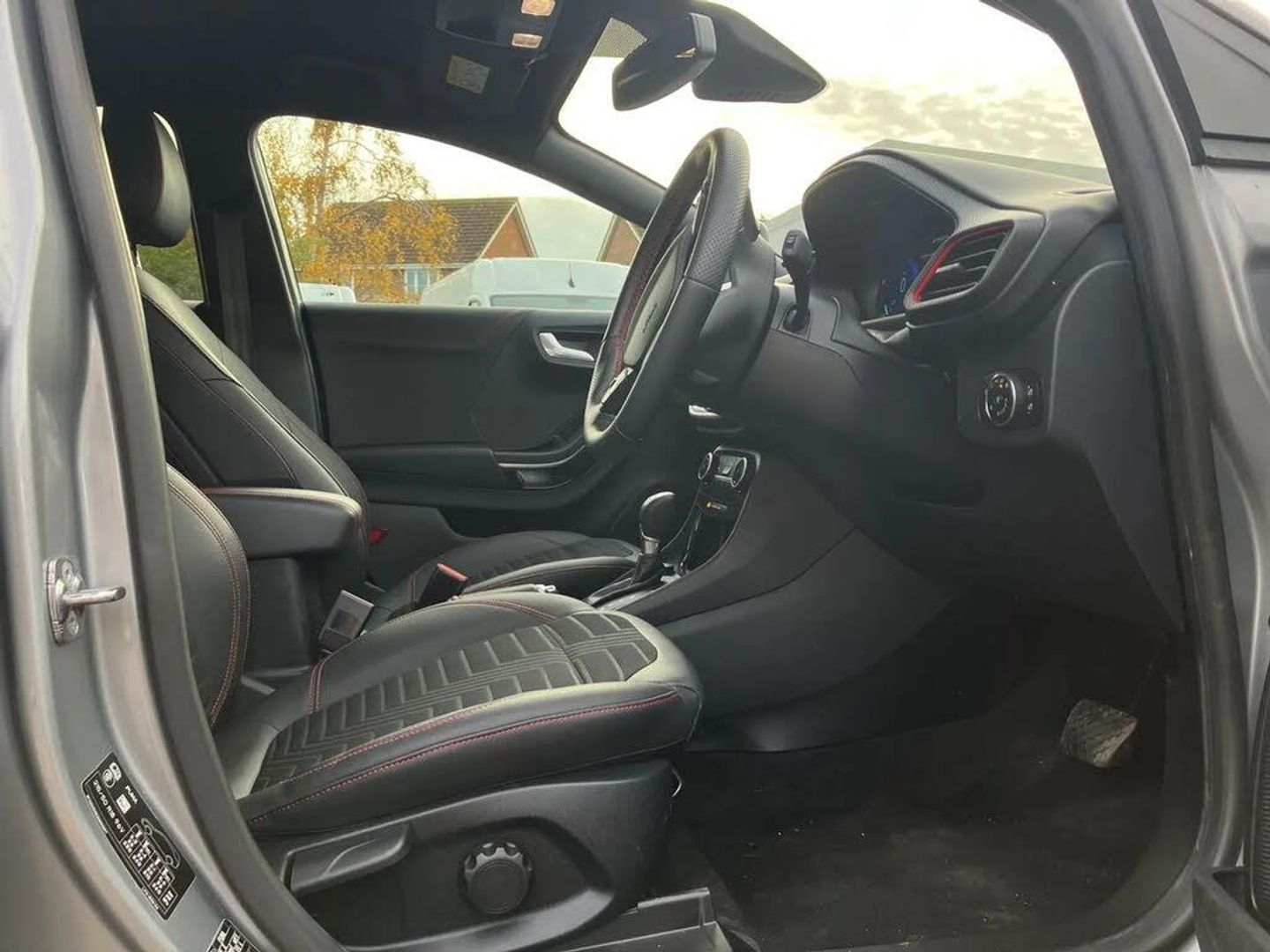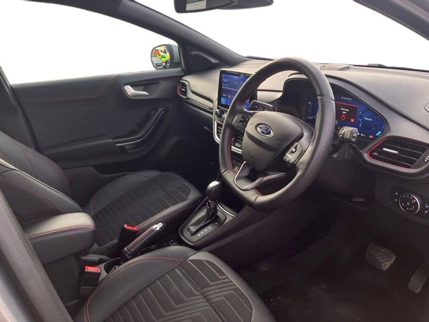 Driver impairment monitor,Emergency call service,Ford easy fuel,Full digital 12.3" instrument cluster,Lane keeping aid with lane departure warning,Power assist steering,Power start button,Rear parking sensor,Selectable drive modes(Normal, sport, Eco, trail, slippery),Speed sign recognition,Sport suspension,Automatic headlights with auto high beam,Automatic rain sensing wipers,Front fog lamps,LED daytime running lights,LED rear lamps,Power foldable heated door mirrors with puddle lamps,Privacy glass to side rear windows and tailgate glass,Quickclear heated windscreen,Rear side wing doors,Rear wiper,ST-Line body styling kit with unique grille,Third brake light,3 seat bench in 2nd row,Centre console with armrest and stowage,Ford megabox extended bootspace,Front and rear head restraints,Front floor mats,Manual 4 way driver seat adjust with lumbar adjustment,Manual 4 way passenger seat with lumbar seat adjustment,Sensico partial premium upholstery,Single front passenger seat,ST-Line flat bottomed sensico leather steering wheel with leather handbrake and aluminium gear knob,Wireless charging pad with electronic air temperature control (EATC),B&O Premium Audio system + Ford SYNC 3 navigation pack - Puma,3 rear seatbelts,Child safety lock,Electronic stability control (ESC) and hill start assist,Pedestrian/cyclist detection & post-collision braking,Pre collision assist system,Tyre pressure monitoring system (TPMS),Thatcham alarm,Carbon look interior deco spears,Parking Pack,Partial Premium Sensico - Black with Red Stitching,Solar Silver