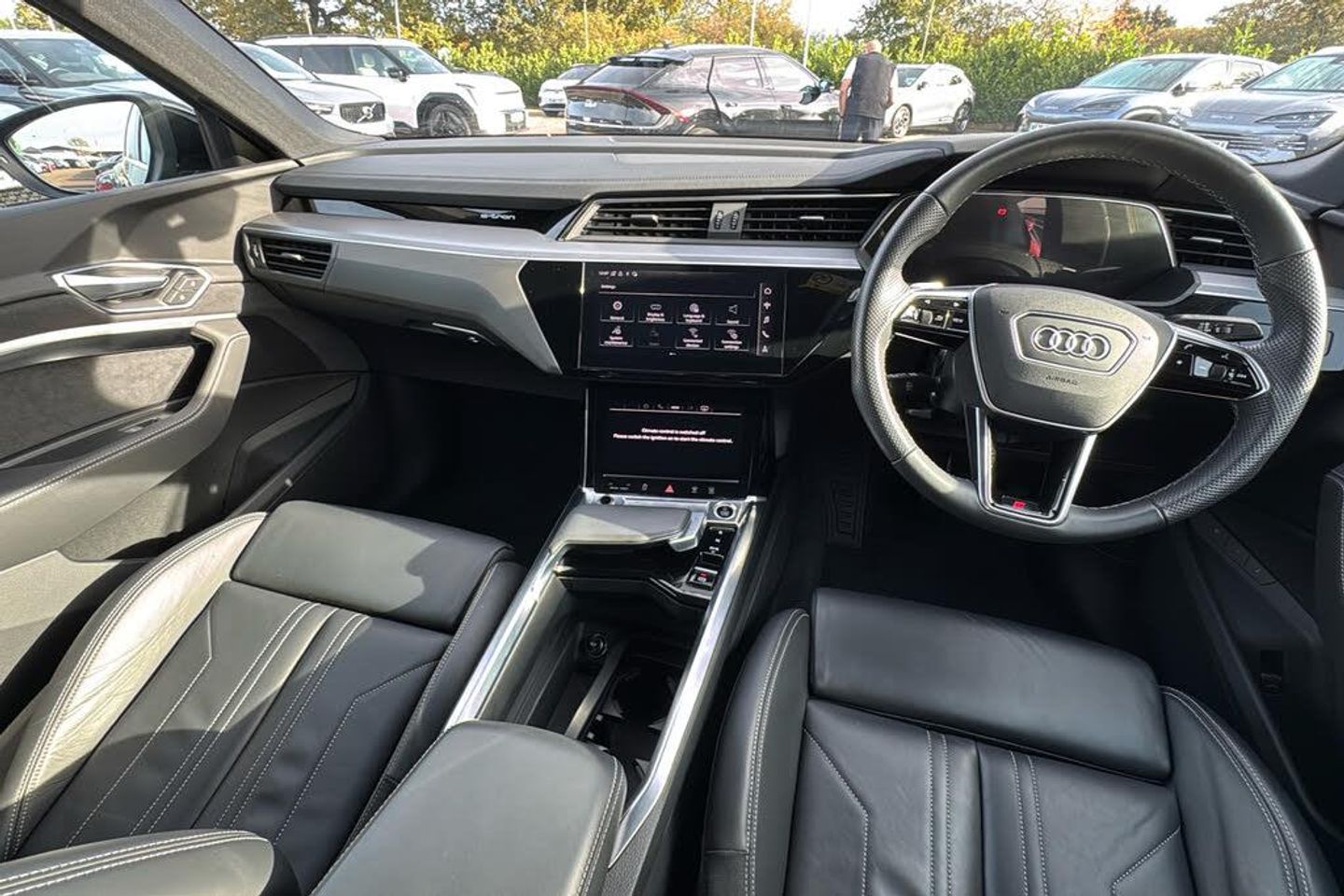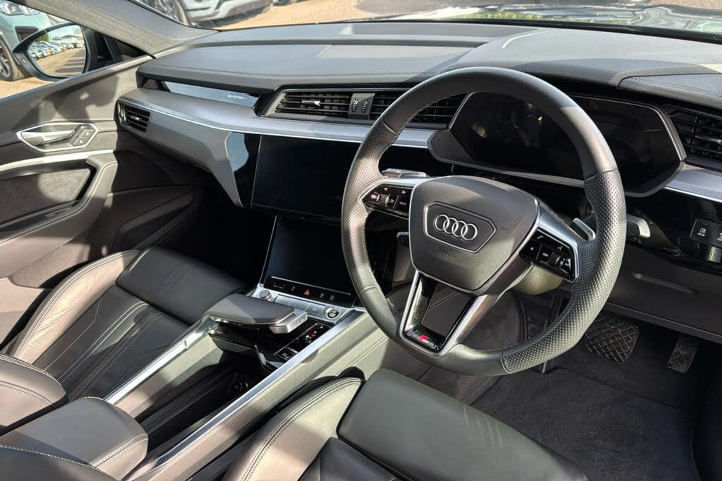 11 kW Onboard Charger 2 USB C Ports with Charging Functionity in the Rear 2-Zone Automatic Air Conditioning 21in Alloy Wheels - 9.5J 5-Arm Turbine Contrasting Grey Design 3-Spoke Sport Multi-Function Steering Wheel in Perforated Leather with S Logo with Paddles for Recuperation 4-Way Lumbar Support for Front Seats ABS - Anti-Lock Braking System AC and DC Charging Access Point on Drivers Side and Second AC Charging Access Point on Passenger Side AMI - Audi Music Interface - Front Active Vehicle Alerting System - AVAS Adaptive Air Sport Suspension Airbags - Driver Anti-Theft Alarm Anti-Theft Wheel Bolts and Wheel Loosening Warning Audi Connect Audi Connect Safety and Service - e-call Audi Drive Select Audi Matrix LED Headlights and Dynamic Front and Rear Indicators with Coming and Leaving Home Animations Audi Pre-Sense Front and Basic Audi Smartphone Interface Includes Wireless Functionality Audi Sound System Audi Virtual Cockpit Auto Dimming and Frameless Rear View Mirror Bluetooth Interface Body Coloured Bumpers Body Coloured Door Mirrors Cloth Headlining in Black Comfort Centre Armrest - Front Compact e-tron Charging System Cruise Control with Speed Limiter DAB Digital Radio Door Mirrors - Electrically Adjustable - Heated - Folding - Automatically Dimming with Memory Function with Kerb View Function for Passenger Side Electric Windows - Front and Rear Electrically Adjustable Front Seats including Memory Function for Drivers Seat First Aid Kit and Warning Triangle Front Sports Seats Front and Rear Floor Mats Gloss Styling Pack Heated Front Seats Household Plug Type G - GB ISOFIX Child Seat Mounting for Front Passenger Seat with Front Passenger Airbag Deactivation ISOFIX Child Seat Mounting for Outer Rear Seats Illuminated Door Sill Trims with Aluminium Inlays - Front and Rear with S Logo in Front Industry Plug CEE 32 A-230 V Inlays - Darkened Matt Brushed Aluminium Keyless Go LED Interior Light Package LED Rear Lights Lane Departure Warning Luggage Compartment Cover Luggage Compartment Floor MMI Navigation Plus with MMI Touch - Twin Touch Screens with Haptic Feedback Manual Steering Column Adjustment Mode 3 Type 2-AC Charging Cable 22kW Operating Buttons in Black - Glass Look with Haptic Feedback Parking System Plus with 360 Degree Sensors and Function-On-Demand Preparation Power Operated Tailgate Privacy Glass Progressive Steering Rear View Camera S Line Badge on the Front Grille S Line Front and Rear Bumpers S line Rear Diffuser Side Airbags - Front and Head Airbag System Sun Visors with Illuminated Vanity Mirrors Tool Kit Twin Leather Pack Tyre Mobility System Tyre Pressure Warning Light Vehicle Inlet Combo 2 - EU CCS Windscreen with Acoustic Glazing