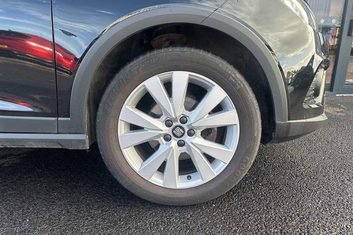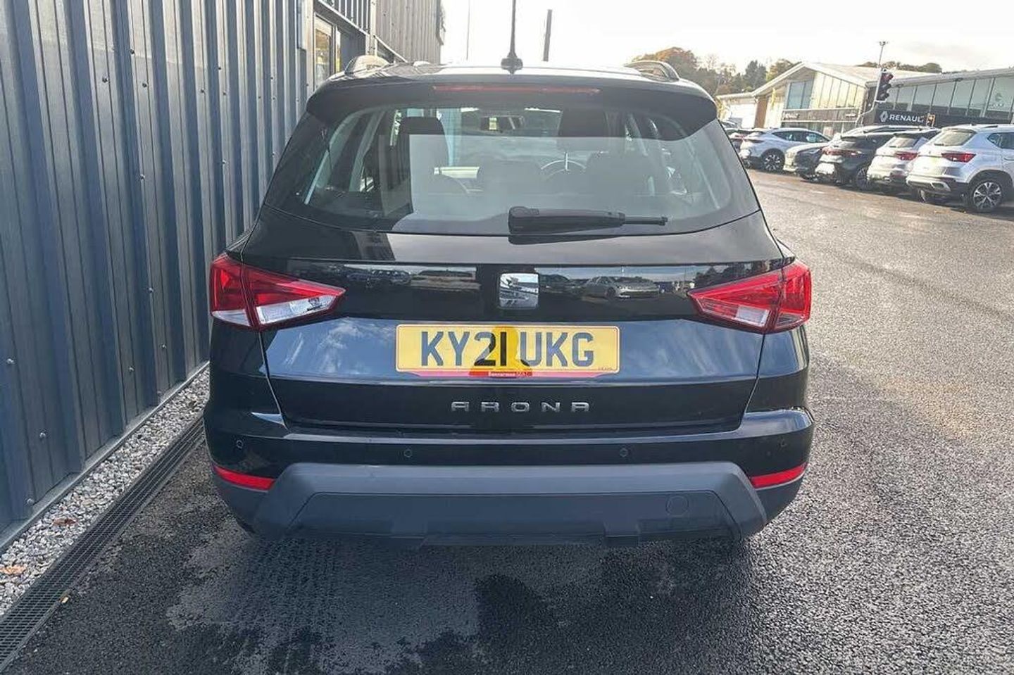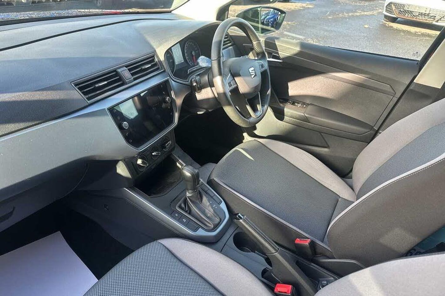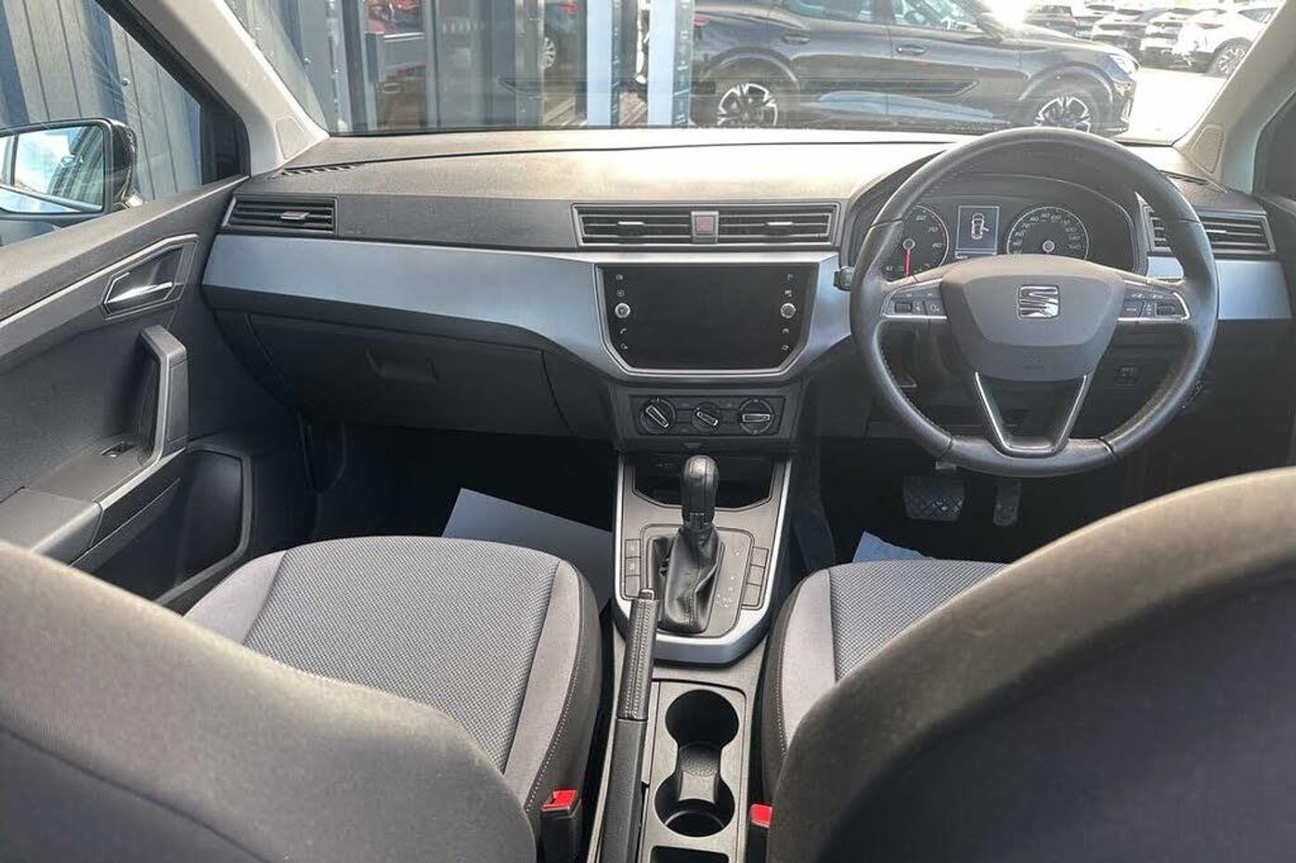 Exterior Features, Metallic paint, Paint - Metallic, Metallic - Midnight black, Exterior Features, Electric front/rear windows with one touch/auto up/down, Rear window wash/wipe, Windshield wiper with intermittent control and potentiometer, Comfort suspension, Anti theft roof antenna, Black roof rails, Black window trims, Body coloured bumpers, Body coloured door handle inserts, Hidden exhaust pipe, Protective side mouldings, Visible VIN plate, Automatic activation of hazard warning lights, Automatic headlights, Electric headlight adjustment, Front fog lights with cornering function and rear fog light, Halogen tailights, LED daytime running lights, LED licence plate lighting, Twin halogen headlights, Safety, ABS, Electronic stability control, Emergency Brake Assist (EBA) and front assist, Hill hold control, Multi-Collision braking, Traction control, Cruise control and speed limiter, Electric speed sensitive power steering, Rear parking sensor, Body coloured door mirrors, Dimming rear view mirror, Electric adjustable door mirrors, 3 point seatbelts on all rear seats, Active front headrests, Child locks on rear doors, Driver and front passenger airbags with front passenger airbag de activation, front side and curtain airbags, Front and rear seatbelt reminder, Tiredness recognition system, Tyre pressure monitoring system, Miscellaneous, 'Lights On' Reminder warning buzzer, Digital clock, Full Link Smartphone Integration with Mirror Link, Apple Car Play, Google Android Auto with USB Type C cable for Apple and Android compatibility, Low fuel warning light, Outside temperature display, RPM counter, Seat connect with safety, service, remote and online, Trip computer, Trim, Interior chrome line trim, Plastic grey dashboard, 60/40 split folding rear seat, Height adjustable front seats, ISOFIX points in outer rear seats with top tether anchorage points, Two front and three rear height adjustable headrests, Audio / Communications, 6 speakers, Bluetooth interface for hands free and audio streaming, DAB digital radio and AM/FM radio, Steering wheel mounted audio controls, Interior Features, Air conditioning, Dust/pollen filter, 2 cupholders, Cloth upholstery, Double boot floor, Gear shift indicator, Grey interior roof, Height/reach adjustable steering column, Leather steering wheel/gear knob/handbrake, Front courtesy light with front reading lights, Illuminated boot, Instrument lighting with brightness control, Driver sunvisor with covered mirror + card holder, Passenger sunvisor with vanity mirror, Packs, Connectivity pack plus - Arona, Interior chrome pack - Arona, Security, 2 folding remote keys with window open/close function, Electronic engine immobiliser, Locking wheel bolts, Remote central locking + deadlocks, Wheels, 17" Dynamic alloy wheels