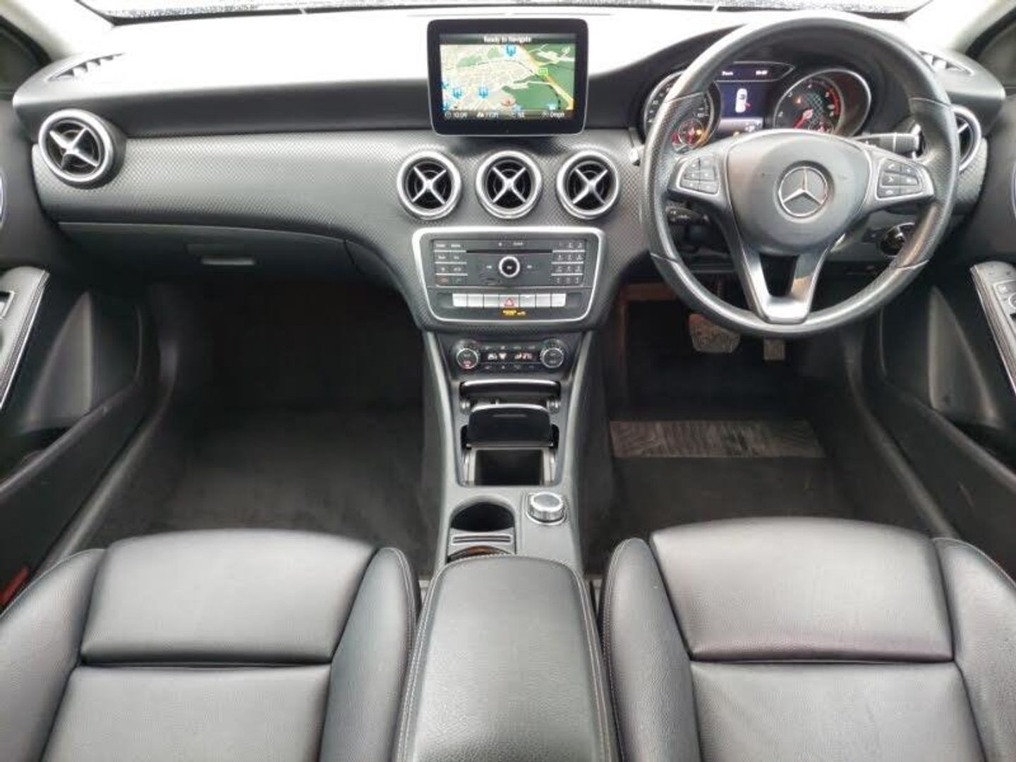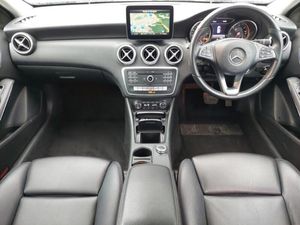 Smartphone integration with Apple CarPlay, Reversing camera, 17" 5 twin spoke alloy wheels, Dual zone automatic climate control, 8" colour display screen, Seat comfort pack - A Class, Attention assist, Bluetooth interface for hands free telephone, Bulb failure indicator, Collision prevention assist plus, DYNAMIC SELECT with a choice of driving modes (ECO, Comfort, Sport, Sport+ and Individual), Speed sensitive parameter assisted steering, Service indicator (ASSYST PLUS), Low fluid warning light, External temperature gauge, Comfort suspension, USB port, SD card slot, Mercedes Audio 20 radio/single CD + telephone keypad, Media interface, Twin Trapezoidal tailpipes, Rear wiper, Rain sensor windscreen wipers, LED tail lights, Heated rear window with timer, Headlamp assist, Electric rear windows, Electric front windows, Electric adjustable heated door mirrors, Diamond radiator grille with black pins with one louvre in silver + chrome insert, Daytime running lights, Chrome beltline trim, Body coloured door mirrors, Body colour side skirt, Body colour door handles, Body colour bumpers, Adaptive brake lights, Auto Mercedes-Benz child seat recognition sensor, Artico man-made leather upholstery, Adjustable head restraints, 3 spoke perforated leather multifunction sports steering wheel, 12V socket, 1/3 to 2/3 split folding rear seats, Footwell lights, Front and rear reading lights, Front centre armrest with storage compartment, Front head restraints, Gearshift paddles on steering wheel, Height adjustable front seats, Height/reach adjustable steering column, Illuminated door sills, Illuminated glovebox, Illuminated storage compartment, Isofix rear child seat preparation, Load securing rings in luggage compartment, Luggage compartment cover, Rear head restraints, Storage compartment under load area floor, Sunvisors with illuminated vanity mirrors, Twin front cupholders, Drivers knee airbag, Crash responsive emergency lighting, Child proof door locks, Adaptive brake system, Active bonnet, ABS with Brake Assist, 3 rear 3 point seatbelts, Remote central locking, Keyless ignition, Alarm system/interior protection/immobiliser, Chrome air vent surrounds, Checked pattern trim, Tirefit sealant with electric air pump