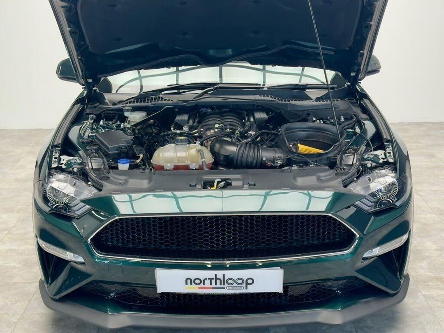 Recaro Leather Seats - Ebony with Green Detailing, MagneRide Adaptive Suspension System, Dark Highland Green, 19in Alloy Wheels - Unique Bullitt High-Gloss Black-Finish 5-Spoke, ABS - Anti-lock Braking System, Active Exhaust System with Quad Tailpipes, Adaptive Cruise Control, Air Conditioning - Dual Zone Electronic Automatic Temperature Control, Airbags, Apple Carplay and Android Auto Compatibility, Automatic Dimming Rear View Mirror, Autonomous Emergency Braking, BULLIT Exterior Badging on Bootlid, Brembo 6-Piston Front Brake Calipers-Painted Red Front and Rear, Bullitt Badge on Instrument Panel with Unique Chassis Number, Chrome Moulded Beltline and Door Line Ornamentation, Chrome Window Surrounds, Courtesy Lights - Ambient Lighting - Map-Reading Lights - Illuminated Entry - Courtesy Delay - Theatre-Style Dimming, Cup Holders - Front x2, Door Mirrors - Body Colour - Power - Heated - Foldable - Mustang Puddle Lights - Indicators, Door Trim - Premium Vinyl Detail, EBA - Emergency Brake Assist, EPAS - Electric Power Assisted Steering, Electric Rear Window Demister, Electronic Line Lock - Track Use Only, Electronic Stability Control with Three Settings - includes Electronic Brakeforce Distribution - Traction Control System, Floor Mats - Front Carpet with Unique Green Stitching, Ford Easy-Fuel Capless Refuelling System, Ford Keyfree System - Keyless Entry with Ford Power Starter Button, FordPass Connect Embedded Modem, Front Upper Grille - Black Unique BULLITT Design without Pony Badge, Full 12in TFT-LCD Digital Instrument Cluster, Fully Independent Front and Rear Suspension, Handbrake Grip - Leather-Trimmed, Heated Steering Wheel, Hill Start Assist, Increased Top Speed and Increased Speedometer Maximum, LED Fog Lights - Front, LED Headlights with integrated Daytime Running Lights - Automatic Activation - High Beams - Levelling, Lane Departure Warning with Lane Keeping Aid, Launch Control, Limited Slip Differential - LSD, Locking Wheel Nuts, Locks - Remote Central with Double Locking, Lower Grille - Aerolip Spoiler BULLITT Design, Mini Overhead Console, Modified Intake Manifold, MyColour Ambient Interior Lighting, MyKey, Open Air Induction System, Performance Brake System Featuring Brembo 6-Piston Front Callipers and Electronic Brake Prefill, Pre-Collision Assist, Reach and Rake Adjustable Leather Steering Wheel with Integrated Controls, Rear Lights - LED, Rear Seats - ISOFIX Fittings, Rear Seats - Split Folding, Rear View Camera with Rear Parking Sensors, Recaro Seats in Ebony Leather, SYNC 3 8in TFT Touchscreen with Navigation - DAB Radio - Emergency Assistance - Apply CarPlay - Android Auto - USB Connectivity - Bang and Olufsen Audio System with Twelve Premium Speakers, Selectable Driving Modes - Normal - MyMode - Snow-Wet - Sport Plus - Track - Drag Mode, Sunvisors - Illumination of Driver and Passenger, Thatcham Category 1 Alarm, Track Apps - Accelerometer Technology - Track Use Only, Tyre Pressure Monitoring System, Unique Exterior - Front Grille-Splitter-Rear Applique, Unique Interior with Green Stitching on Centre Console and Gearshift Gaiter, Unique Tuning to - Chassis - Power Steering - ABS - Stability Control, Unique White Cue Ball Gearknob, Windows - Power Front Windows with Global Opening, Windscreen Wipers - Automatic