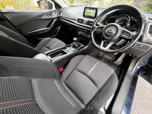 This 2017 Mazda3 SKYACTIV-D Sport Nav presents a superb ownership proposition, having been cherished by just one owner from new and boasting a clear vehicle history check. Powered by an efficient 2.2 litre Euro 6 diesel engine, this Sport Nav model offers a compelling blend of performance and economy, with a brisk 0-62mph acceleration time of just 8.1 seconds. You'll appreciate the convenience of integrated Bluetooth for seamless phone connectivity, dusk-sensing headlights that illuminate automatically, and a helpful reversing camera to assist with parking. Smart keyless entry adds a touch of modern luxury, while the dual-zone climate control air conditioning ensures a comfortable cabin environment for all occupants.This Mazda3 stands out with its remarkably low mileage of 74,000 miles for its age, indicating it has been used sparingly and well cared for. Furthermore, its placement in a low insurance group suggests that running costs will be more affordable compared to many similar vehicles. The generous boot space provides ample room for luggage or shopping, making it a practical choice for everyday life. These combined factors, including its excellent acceleration, low ownership, and minimal mileage, position this Mazda3 as a particularly attractive and well maintained example.-ULEZ, Full Service History