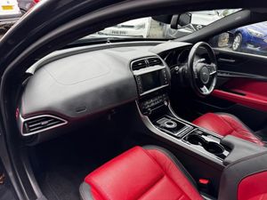 Memory Pack with Power Fold Mirror, Ammonite Grey, Perforated Taurus Leather - Jet-Red with Red Stitching, Lane Keep Assist and Driver Condition Monitor, 19in Alloy Wheels - Venom 5 Twin Spoke - Black, Privacy Glass, 12V Power Sockets, 18in Alloy Wheels - Star 5 Spoke, 1x USB Socket, 25t Badge, 3 Rear Headrests, 3-Flash Lane Change Indicators, 8-Way Manual Front Seats with Electric Recline, 8in Capacitive Touchscreen, ABS - Anti-locking Braking System, AEB - Autonomous Emergency Braking, AM-FM Radio, ASPC - All Surface Progress Control, Airbags - Driver and Front Passenger with Seat Occupant Detector for Passenger, Airbags - Front Side, Airbags - Full Length Side Window Curtain, Approach Illumination - Automatic via Remote, Audio AUX In, Auto-Dimming Interior Rear View Mirror, Bi-function Xenon Headlights with LED J Blade Daytime Running Lights, Bluetooth Streaming, Bluetooth Telephone Connectivity, Body-Coloured Extended Side Sills, Boot Lid Spoiler, Bootlid Jaguar Leaper and Wordmarque, Bootlid XE Badge, Brake Pad Wear Indicator, Carpet Mat Set - Font and Rear, Cruise Control with Speed Limiter, Digital Audio Broadcast - DAB - Radio, Driver and Front Passenger Sun Visors, Dual Tailpipes with 75mm Finishers, Dual Zone Automatic Climate Control, Dynamic Stability Control and Traction Control, Dynamic Volume Control, EBA - Emergency Brake Assist, ECO HMI - Eco Data Analysis-Parasitic Load Monitor and Driver Eco, EPAS - Electric Power Assisted Steering, EPB - Electric Parking Brake, Electric Windows - Front and Rear with One-Touch Open-Close and Anti-Trap, Etched Aluminium Trim Finisher, Fixed Rear Seat, Front Armrest with Storage Compartment, Gear Shift Change Paddles, Gloss Black Side Window Surround, Glove Compartment Lockable, Grained Black Radiator Grille with Satin Chrome Surround, Hazard Lights Under Heavy Braking, Heat Insulating Glass - Green All-round, Heated Door Mirrors, Heated Front Seats, Heated Rear Screen, Hill Start Assist, ISOFIX Anchor Points for Rear Child Seat, Illuminated Glove Box, InControl Apps, InControl Protect, InControl Touch Navigation - SD, Interior Front Door Handles with Separate Locking Switches, Interior Mood Lighting, Jaguar Smart Key System with Keyless Start, Jaguar Sound System, Jaguar Tyre Repair System, JaguarDrive Control, JaguarSense - Overhead Light Console, Jet Headlining, LED Rear Signature Lights, Lane Departure Warning, Loadbay - Premium Luggage Tie Downs, Locking Wheel Nuts, Metal Treadplates with R-Sport Branding, Mist Sensing, Outside Temperature Gauge, PTC Heater, Passive Front Head Restraints - Whiplash Protection, Pedestrian Contact Sensing, Pollen Filter, Power Operated Child Locks, R-Sport Body Kit, R-Sport Branded Multi-Function Softgrain Leather Steering Wheel, R-Sport Front Bumper, Rain Sensing Windscreen Wipers, Rear Armrest with Twin Cupholders, Rear Parking Aid, Remote Control Central Locking with Dead Locking and Drive-Away Locking, Remote Premium for Warranty Period, Row 2 Air Vents, Satin Chrome Side Vents with R-Sport Badge, Satin Chrome Touchscreen Surround, Seat Belt Reminder, Seats - Sports, Shopping Bag Hook in Trunk, Speed Proportional Steering, Sports Suspension, Start Up Sequence, Storage Compartment in the Doors - Front, Storage Compartment in the Doors - Rear, Sunglasses Holder in Overhead Console, TPO Wrapped IP, Taurus Grain Wrapped Instrument Panel Topper, Torque Vectoring by Braking - TVBB, Traffic Sign Recognition with Adaptive Speed Limiter, Twin Front Cupholders, Tyre Pressure Monitoring System, Variable Intermittent Wipers, Voice Control, iPod Integration