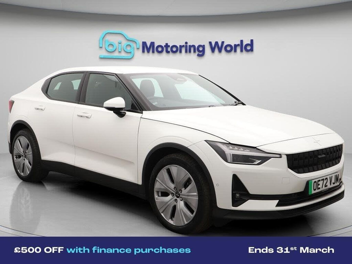 £500 towards your finance depo-Our Polestar Polestar 2 is finished in White. Specification includes a range of fantastic features including £500 towards your finance deposit, Dynamic Chassis Control, 19'' Alloy wheels, Apple CarPlay, Electric Seats, Satellite Navigation, Heated Seats, Rear View Camera, Memory Seats, Internet Specification information is supplied by CAPHPI and may vary to the actual car. This data does not form any part of a buying contact. Please check specification prior to purchase in-store. The MOT is valid until October 2026, visit bigmotoringworld.co.uk for more photos, a 360 tour, service history and a free HPI report.Were BIG on peace of mind and this White Polestar Polestar 2 has completed our comprehensive 200 point inspection and passed all checks. Its ready for you to drive away with immediate collection in-store. We include a 90-day warranty as standard plus an option to extend for up to 3 years.Reserve this car exclusively for you, safely and securely at bigmotoringworld.co.uk, with a fully refundable £99 deposit. Test drive before you buy, with no commitment, no hassle and a completely haggle free experience. Still searching and want to see thousands more cars? We are BIG on choice with over 8000 cars to choose from.Visit our award winning web site bigmotoringworld.co.uk.Were Big Motoring World and were BIG on what matters to you.