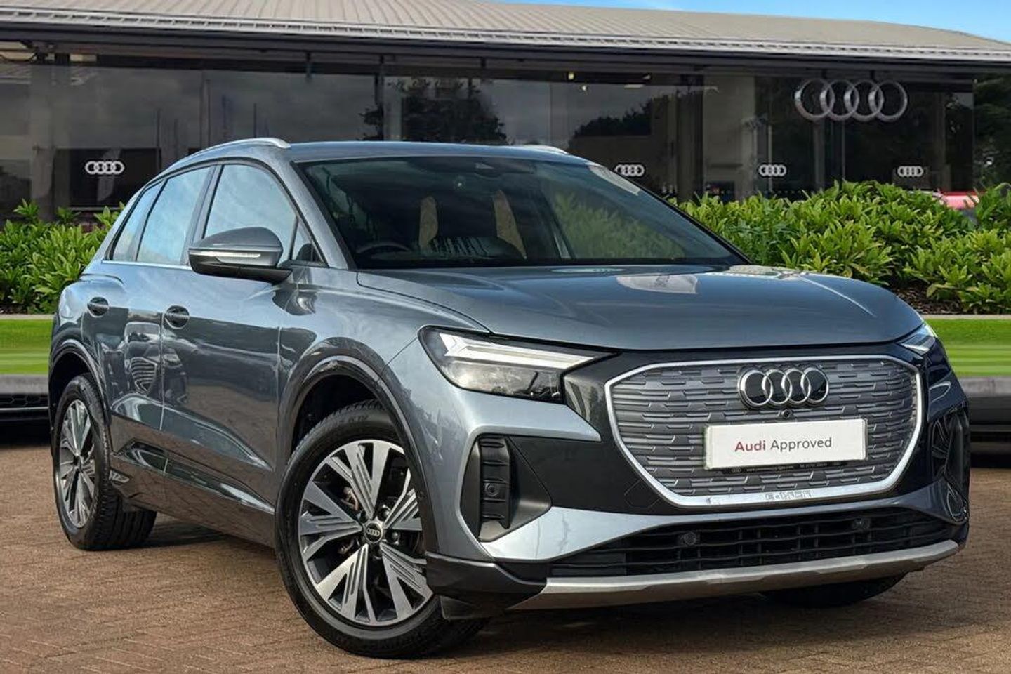 Park Assist, Cruise Control, Advanced Safety;Finished in a striking Geyser Blue Metallic, the Audi Q4 e-tron combines progressive electric performance with Audi?s hallmark luxury and design. Powered by a 76.6 kWh battery, this all-electric SUV delivers an impressive range of up to 213 miles on a full charge, offering a smooth, quiet, and refined driving experience. Step inside, and you?re surrounded by cutting-edge technology and premium comfort. The SONOS Premium Sound System fills the cabin with crystal-clear audio and deep, resonant bass, transforming every journey into an immersive listening experience ? whether you?re enjoying your favourite playlist, podcast, or audiobook. Practicality and safety come standard with the Rear View Camera, making reversing, parking, and manoeuvring in tight spaces effortless and stress-free. Comfort is equally prioritized, thanks to heated front seats that provide soothing warmth on chilly mornings. Stay seamlessly connected with Apple CarPlay and Android Auto integration, allowing easy access to your smartphone?s apps, music, messages, and navigation directly through the advanced MMI touchscreen display. Intuitive and responsive, Audi?s Multi Media Interface puts control of entertainment, communication, and navigation right at your fingertips. Blending comfort, convenience, and innovation, the Audi Q4 e-tron redefines electric luxury for the modern driver ? every detail designed to make each drive feel exceptional. ?This vehicle is compliant with Clean Air Zone (CAZ) or Ultra...