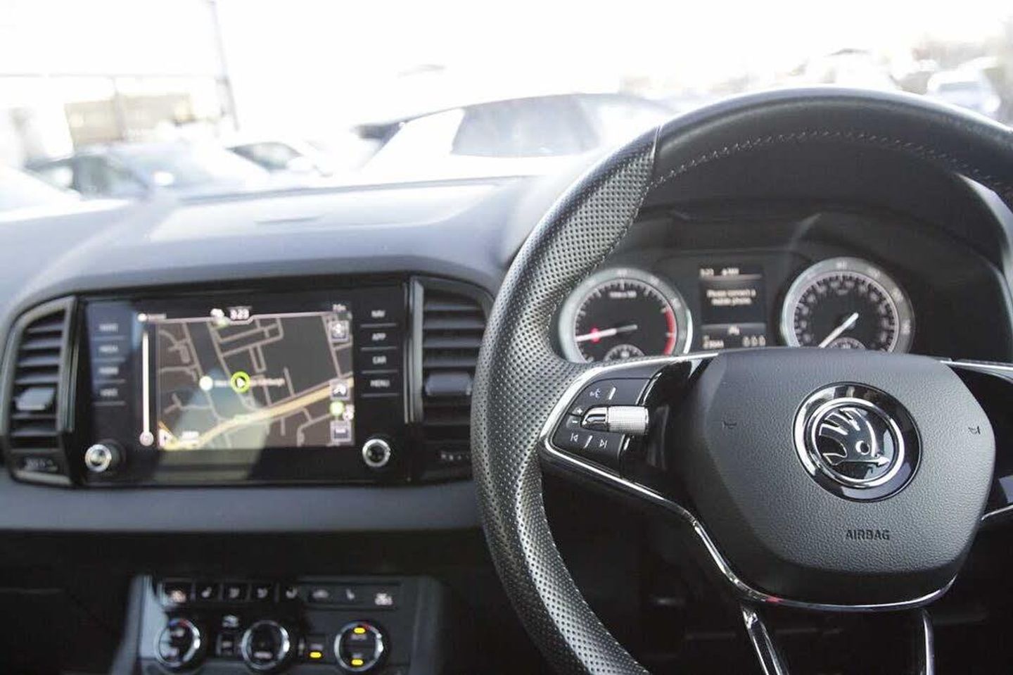 Exterior Features, Metallic paint, Auto light assist + automatic high beam lights + auto dimming rear view mirror + light and rain assist, Safety, Cruise control + speed limiter, Electro-mechanical PAS, Front and rear parking sensors, Rear view camera, Auto dimming rear view mirror with light and rain sensors, Interior Features, Dual zone climate control, 3 spoke leather sports multifunction steering wheel and silver stitching, Fabric sports seats with thermoflux and silver stitching, Audio / Communications, 8 Speakers, Driver Convenience, Electrically operated boot door, Miscellaneous, Amundsen satellite navigation with 8" touchscreen display with maps Europe, WLAN and web radio, Trim, Heated front seats, Paint - Metallic, Metallic - Brilliant silver, Trim - Cloth, Sportline fabric - Black with silver stitching, thermoflux and sport seats, Exterior Features, Acoustic glass, Aero front windscreen wipers with intermittent function, Black electric window control buttons, Electric front and rear windows with child proof lock, Heated rear windscreen, Privacy glass, Black radiator grille, Black roof rails, Body colour door handles, Body coloured bumpers, Front door steps with SportLine logo, Panoramic sliding sunroof, Protective door side sills in body colour, Rear diffuser, Safety reflectors on front doors, Skoda lettering on tailgate in black, Sportline badge on front fender, Sportline decorative inserts with badging, Sports front and rear bumpers, Automatic headlight control system, Full LED headlights + adaptive front light system + LED daytime running lights and front cornering fog lights, Headlight washers, LED rear lights with high functionality, Light assistant (coming/leaving home/tunnel light), Third brake light, Safety, Electronic parking brake with auto hold function, Emergency rear braking signal, ESC including ABS, MSR, ASR, EDS, HBA, DSR, RBS, MKB and traction control, Front assist radar scanning of the space in front of the car with automatic braking, Hill hold control, Drive mode selector, Black door mirrors, Airbags - Front side, head, knee and curtain, Automatic door unlocking in case of crash, Automatic fuel cut off in case of crash, Driver airbag, Passenger airbag with switch-off function, Pedestrian monitor, Seatbelt reminder signalisation and pretensioner for all seats, Three point seatbelts rear, Two tone horn, Tyre pressure display, Tyre pressure monitor, Interior Features, Textile floor mats, Pollen filter, 1.5 litre bottle holders in driver and front passenger door panels, 12V socket in boot, 12v socket in front centre armrest with storage compartment and rear air vents, 2 Folding hooks and nets in boot, 4 foldable roof handles with rear coat hooks, Aluminium pedals, Black roof headlining, Chrome inner door handles, Door sill scuff plates, Height/reach adjust steering wheel, Ice scraper, Illuminated and cooled glovebox, Net programme in boot, Pen holder, Retractable parcel shelf attachable to tailgate, Solid rear boot cover, Storage box in upper central dashboard closed, Storage compartment below the passenger seat, Umbrella under passenger seat, Welcome animation with sportline logo, 2 Front readings lights for driver and passenger, Cargo elements in boot, Illuminated luggage compartment, Rear reading lights, Safety vest holder, Sunvisors with illuminated vanity mirrors, Audio / Communications, Care connect, DAB radio with Bluetooth, USB connection, Wireless charging without wireless aerial connection, Driver Convenience, Start/stop system with regenerative braking, Miscellaneous, Driver fatigue sensor, Multifunction colour trip computer, Outside temperature gauge, Service interval indicator, SmartLink wireless for Apple and wired for Android, USB C Port x 2 in front centre console, Trim, Black air vent surround, 3 rear height adjustable headrests, Driver and passenger seats height adjust, Front head restraints, Height adjustable front three point seats belts with tensioners,