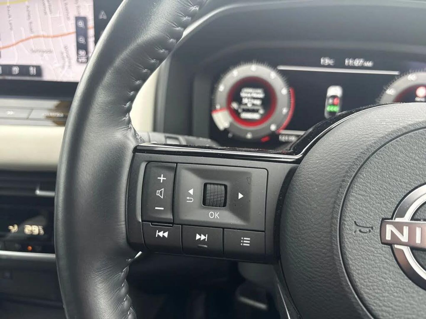 Advanced windscreen head up display,Android auto/Apple CarPlay (Wired),Blind spot warning,Drive assist,Drive modes (sport, normal, eco),Electric speed sensitive power steering,Emergency and breakdown call,Front and rear parking sensors,Full Digital 12.3" TFT Digital Combimeter,Google maps services - search, weather, 3D maps and Google street view,Hands free power tailgate,Idle stop/start system,Intelligent around view monitor,Intelligent Cruise control (ICC),Intelligent driver alert system,Intelligent forward collision warning,Intelligent lane intervention,Lane departure prevention,Lane departure warning system,Lane keep assist,Moving object detection,Nissan connect 12.3 inch touchscreen infotainment system,Nissan connect navigation,Push button starter,Rear cross traffic alert,Rear view camera,Remote control services - door locks, lights, horn and car locator,Telematics - notifications and connectivity services,TomTom live traffic services,Traffic sign recognition with legal speed adjustment,Trip computer,Virtual personal assistant and firmware over the air capability,Wireless apple carplay,Wireless charging pad,6 speakers,AM/FM audio system with DAB,Bluetooth audio streaming,Front USB connections (Type-A and Type-C),Rear USB charging only ports (Type-A and Type-C),Auto dimming rear view mirror,Auto rear wiper when reversing,Automatic hazard signal with emergency stop signal,Body colour mirror caps,Body coloured door handles,Bodyside mouldings,Chrome side window finisher,Door handle with button,Electric auto folding door mirrors,Electrically adjustable and heated door mirrors with LED turn indicator,Follow me home headlights,Front and rear LED turning signals,Headlights auto levelling system,Intelligent auto headlights,LED 3rd brake light,LED daytime running lights,LED headlights with adaptive driving beam,LED rear lights,One touch front and rear electric windows with remote opening and closing,Partially body coloured bumpers,Privacy glass,Rear bumper with graphite insert,Rear reversing light (bulb lighting),Rear roof spoiler,Rear side wing doors,Rear styling plate,Shark fin antenna,Splash free rain sensing wipers,Super UV and infrared cut glass,Thermaclear heated windscreen,Three blink turn signal,12v power socket in dashboard and luggage,2x Rear coat hooks,3 bench rear seats in 2nd row,3 rear headrests,4 folding assist grip,6 Luggage hooks - 4 on floor, 2 on side,60/40 split folding rear seat bench,Ambient lighting around centre console,Ambient lighting in front doors,Centre console storage tray,Chrome interior door handles,Cloth/syntech leather monoform upholstery,Dark black/blueish PVC wrapping,Dark headlining,Driver and front passenger sunvisors with illuminated vanity mirrors,Driver seat back pocket,Dual zone automatic climate control with pollen filter,Electrically adjustable driver seat,Electrically adjustable lumbar support for driver,Front and rear door storage,Front centre console and armrest,Front cupholders x 2,Front door with bottle holders,Glovebox with light,Hard trunk cover,Heated front seats,Heated steering wheel,Height adjustable driver's seat,Height adjustable front headrests,Height adjustable passenger seat,Leather shift knob,Leather steering wheel,Luggage board system,Luggage space lighting,Manual lumbar support on passenger seat,Manually adjustable passenger (slide recline + lifter),Multifunction steering wheel,Passenger seat back pocket,Rear armrest with 2 cupholders,Rear door bottle holders,Single front passenger seat,Soft PVC kneepad,Steering wheel switches,Tilt/telescopic adjustable steering wheel,Two rear isofix child seat anchorage points with top tether,Welcome light and doors with console tray ambient lighting,Glass roof pack with roof rails - Qashqai,3x3 point rear seatbelt pretensioners + load limiters,ABS with EBD and brake assist,Active brake limited slip,Auto hold function,Child locks on rear doors,Curtain and front side, far side airbags,Driver and passenger airbags,Driver, passenger and 2nd row rear seat belt reminder,Electronic parking brake,Front seatbelt pretensioners + load limiters,Height adjustable front seatbelts,Hill start assist,Intelligent blind spot intervention,Intelligent front emergency braking with pedestrian, cyclist recognition and junction assist,Intelligent rear automatic braking,Tyre pressure monitoring system,Vehicle dynamic control,Capless fuel filler,Engine immobiliser,Intelligent Key,Remote central door locking with deadlocking,Thatcham Cat.1 alarm,Interior instrumental panel C finisher,19" Alloy wheels,Tyre puncture repair kit