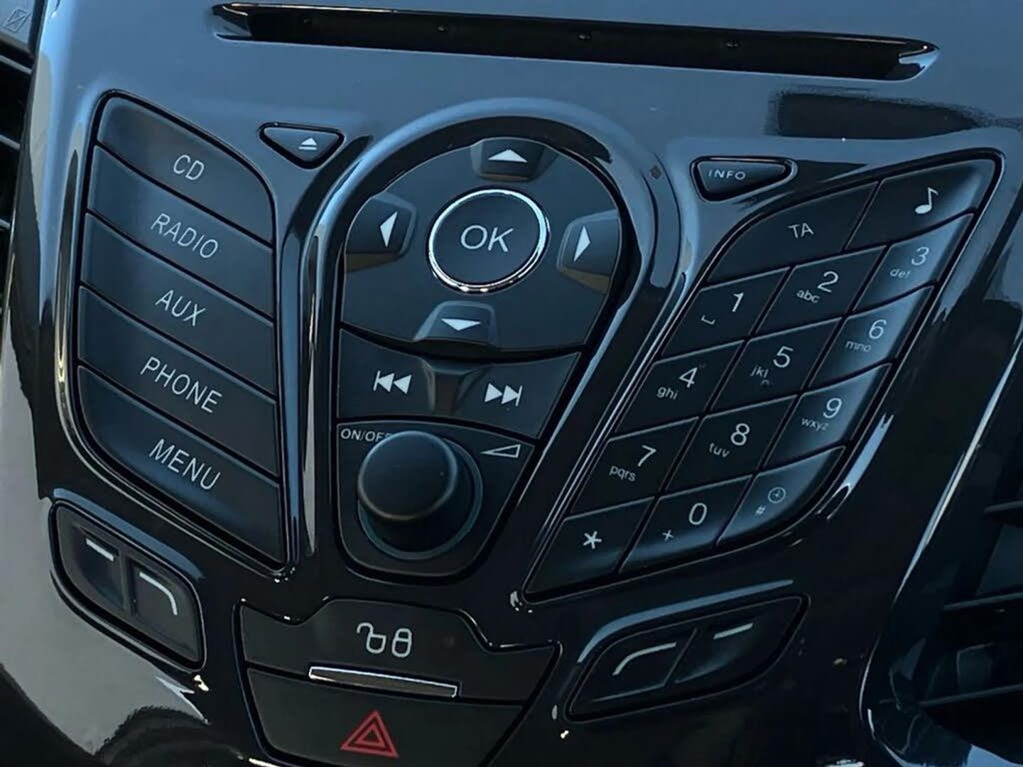 'Ford Power' starter button,Cruise control,Easy fuel capless refuelling system,Ford SYNC including 6 speakers and 3.5" colour screen Bluetooth connection with voice control and USB port,PAS,Trip computer,Audio remote control,Aux-in socket,Radio/CD,Auto dimming rear view mirror,Automatic headlights + automatic windscreen wipers,Chrome front fog lights,Daytime running lights,Electric door mirrors,Front grille with chrome trim surround,LED headlamp signature,Power front and rear windows,Rear wiper,Silver coloured inserts to bumpers,Silver roof rails,60/40 split rear seats,Cooled glovebox,Driver seat lumbar adjustment,EATC - Electronic Auto Temperature control,Floor mats,Front armrest,Front head restraints,Front stowage pocket,Height adjustable driver's seat,Multifunction leather steering wheel with leather gear knob/handbrake grip,Part leather upholstery,Rake adjustable rear seats,Reach + rake adjustable steering column,Rear headrests,Silver front scuff plates,Storage drawers under front seats,Sunglasses holder,3x3 point rear seatbelts,ABS,Curtain airbags,Driver airbag,ESP,Front side airbags,Hill hold control,Passenger airbag,Tyre pressure monitoring system,Immobiliser,Keyless entry,Remote central locking,Thatcham Cat.1 alarm,Diamond White,Parking Sensor - Rear