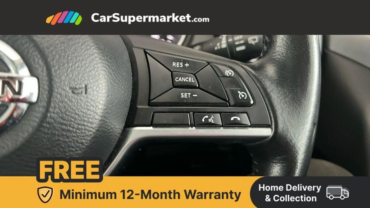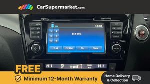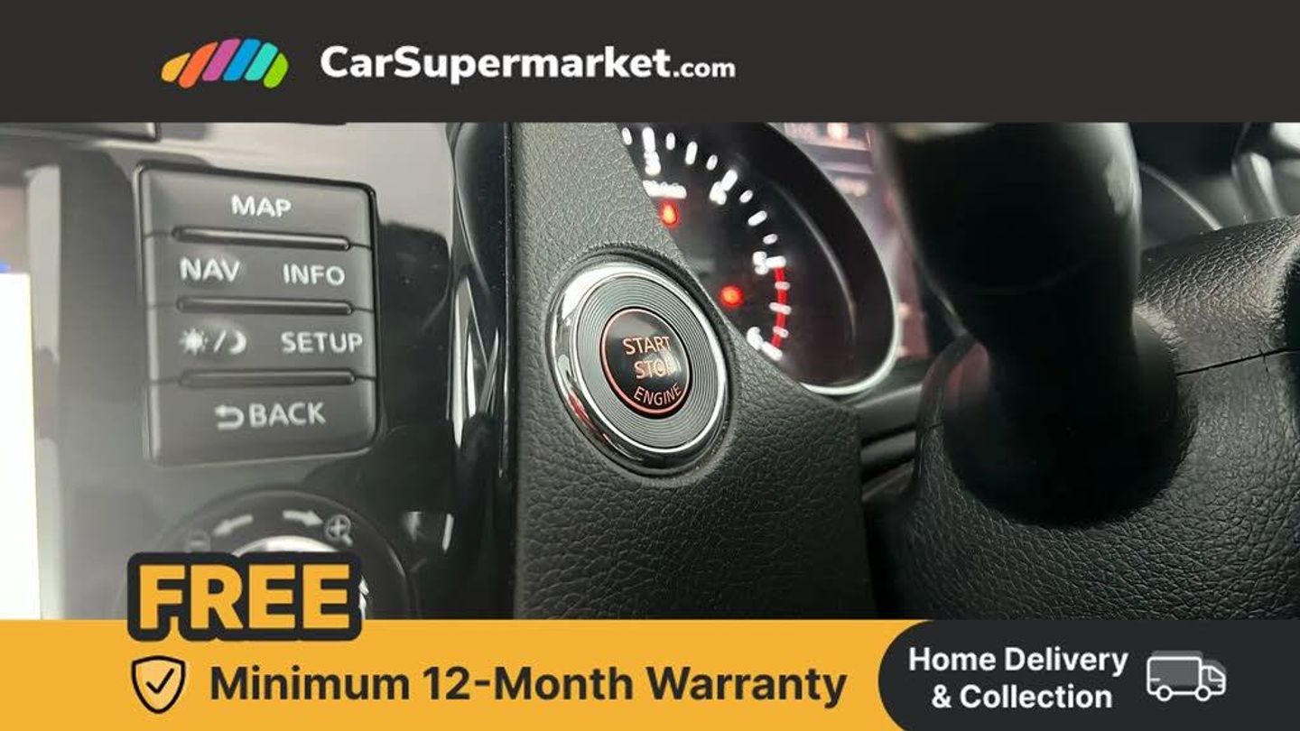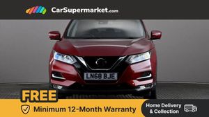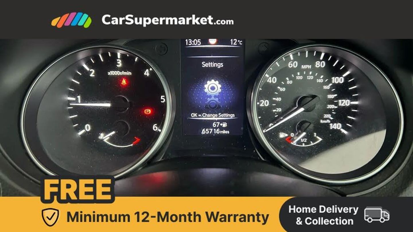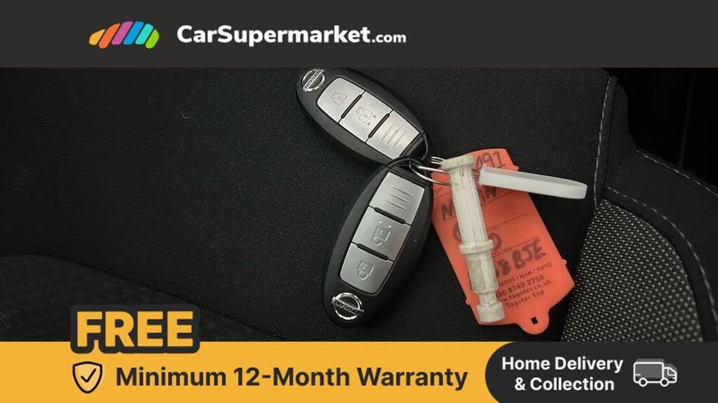 Advanced drive assist display 5'' TFT coloured screen,Bluetooth phone integration system,Cruise control + speed limiter,Electric speed sensitive power steering,Front parking sensors,Intelligent around view monitor,Intelligent parking assist,Lane departure warning system,Nissan connect evo 7" touchscreen navigation and entertainment system,Outside temperature sensor,Push button starter,Rear parking sensors,Rear view camera,Selectable steering,Service interval indicator,Smartphone integration,Stop/start system,Traffic sign recognition,Trip computer,Diesel particulate filter,Nissan chassis control (intelligent ride control, intelligent trace control, intelligent engine brake),6 speakers,Aux-in socket,DAB Digital radio,Radio/CD,Steering wheel mounted audio controls,USB port,Anti dazzle rear view mirror,Auto wipers,Body colour bumpers,Body colour door handles,Body colour door mirrors,Chrome window surround,Daytime running lights dip function when turn signal applied,Electric folding door mirrors,Electric front and rear windows with one touch illuminated window controls,Electric front/rear windows,Electrically adjustable door mirrors,Front fog lights,Halogen headlights,Heated door mirrors,High beam assist,Intelligent auto headlights,LED indicators in door mirrors,Matt silver roof rails,Privacy glass,Rear roof spoiler,Rear wiper,Shark fin antenna,Underbody vortex generators,2 X front 12v power sockets,3 height adjustable rear headrests,60/40 split folding rear seat,Ambient interior lighting,Boot light,Centre console storage box/armrest,Chrome interior door handles,Cloth upholstery,Configurable luggage board system,Driver's seat manual height adjust,Dual zone climate control,Front and rear door pockets with bottle holders,Front and rear seat belt pre-tensioners with load limiters,Front headrests,Height adjustable front headrests,Leather D shaped steering wheel,Leather gear lever,Leather knee pad,Manual height adjustable front passenger seat,Manual lumbar support on driver seat,Manual lumbar support on passenger seat,Monoform front seats with plastic backboard,Parcel shelf stow function under luggage board,Pollen filter,Rear armrest with 2 cupholders,Rear headrests,Synthetic leather wrapped door handle with contrasting stitching,Tilt/telescopic adjustable steering wheel,Safety shield plus pack - Qashqai,6 airbags - Driver, front passenger, curtain and side airbags,ABS, ESP, EBD and brake assist,Auto hold function,Child locks on rear doors,Electronic parking brake,Front and rear seat belt warning,Front passenger airbag deactivation,Height adjustable front seatbelts,Hill start assist,Intelligent emergency braking with pedestrian recognition,Three 3 point rear seatbelts,Tyre pressure monitoring system,Anti-theft immobiliser,Intelligent Key,Remote central locking,Thatcham Cat.1 alarm,Carbon graphite dash trim,Tyre puncture repair kit