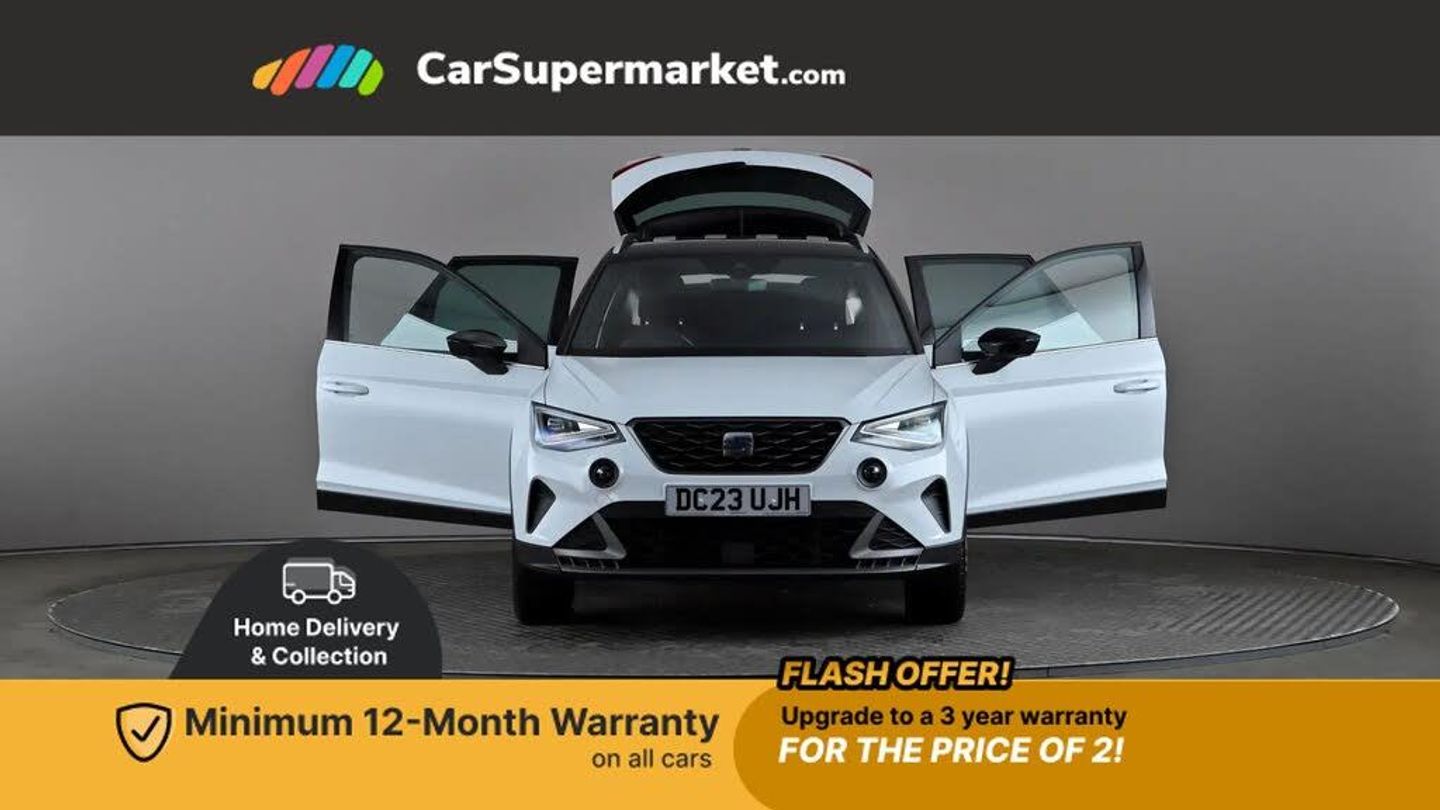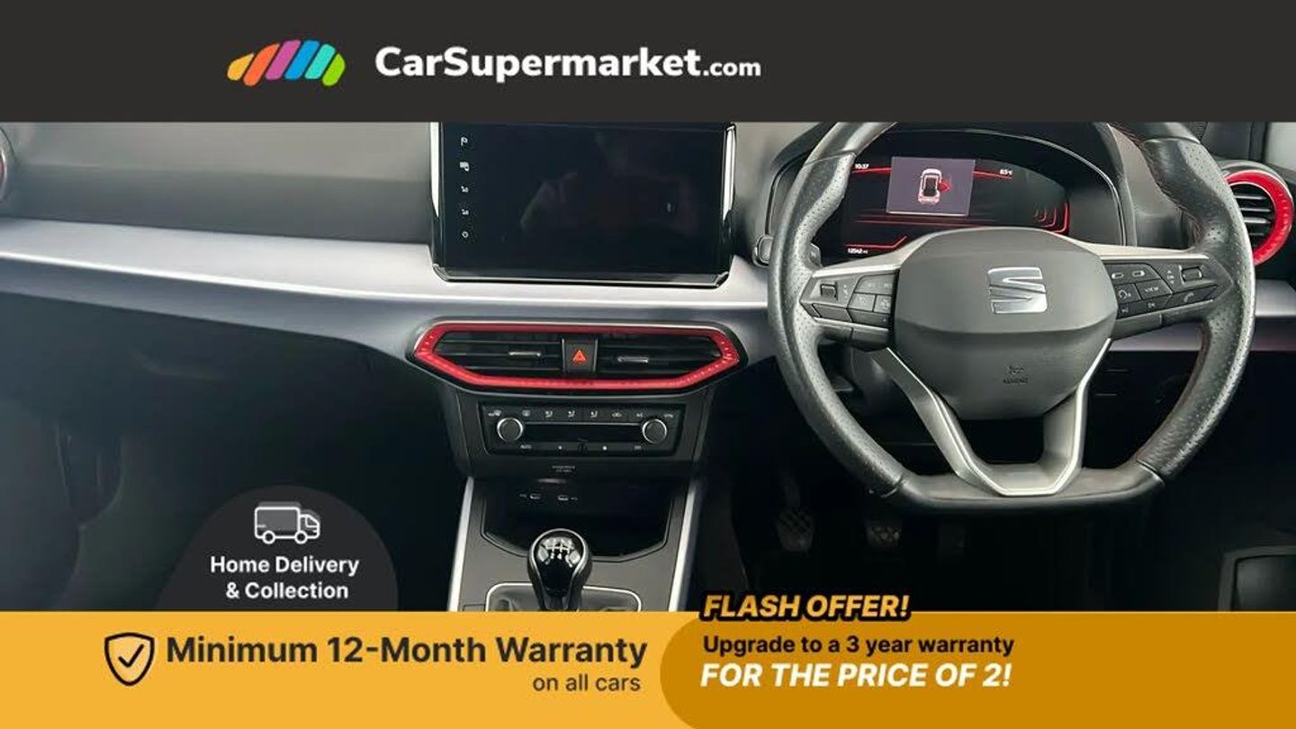 Digital Cockpit, Android Auto, Apple CarPlay, Wireless Phone Charging, Sat Nav, Bluetooth, Digital Radio, 17" Alloy Wheels, Parking Sensors;This 2023 SEAT Arona TSI FR presents an exceptional ownership proposition, with a sole owner and an MOT valid until August 2026. Its vehicle history check is clear and the last service was completed on 29th October 2025 at 12,537 miles, ensuring it is up to date. Inside, you'll find the convenience of Dual Zone Climate Control and a Wireless Phone Charger, adding to the comfortable and modern driving experience.