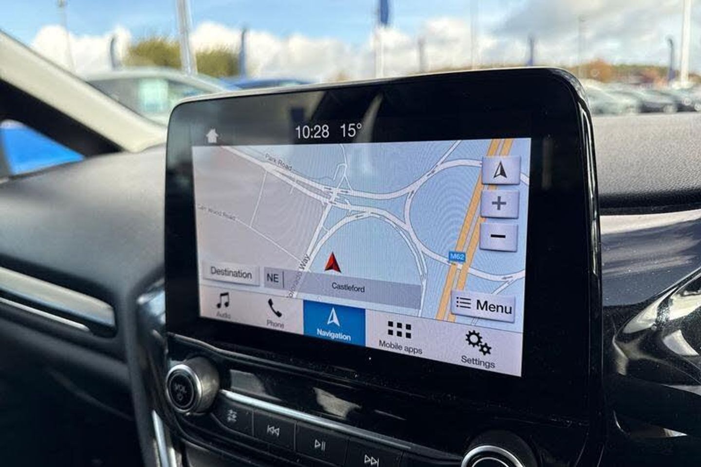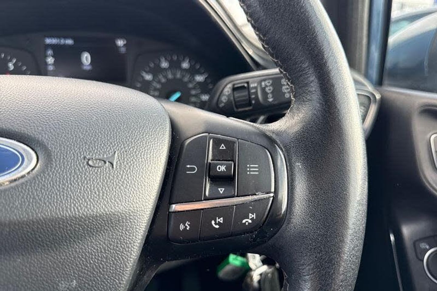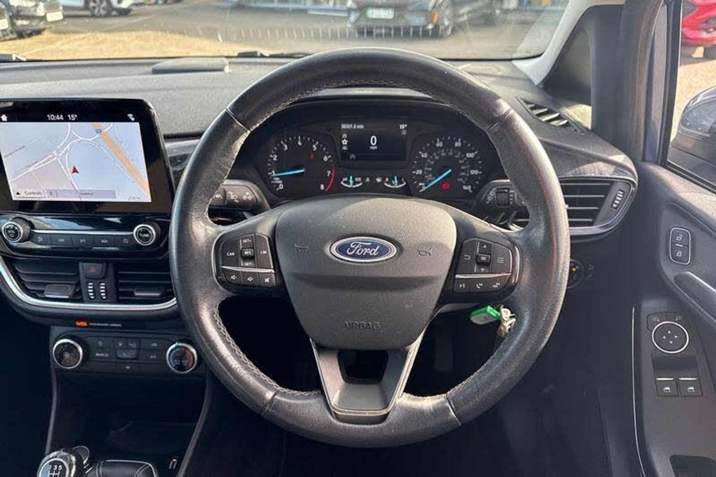 Satellite Navigation System, Bluetooth system, Electric power steering, Ford easy fuel, Trip computer, Automatic headlights, Body colour bumpers, Body colour door handles, Body colour electric adjustable heated door mirrors with integral indicators, Body colour rear spoiler, Chrome beltline trim, Cornering front fog lights, Electric front windows/one touch facility, Halogen projector style headlights with static cornering lights + LED daytime running lights, Quickclear heated windscreen, Rear wiper, Tinted glass, Upper front grille chrome surround, 12V Accessory socket in centre console, 3 spoke leather trimmed steering wheel with audio control, 60/40 split folding rear seat, Adjustable head restraints, Boot carpet, Chrome inner door handles, Cloth upholstery, Footwell illumination, Front map reading lights, Front seat and rear pockets, Height adjustable driver's seat, Illuminated glovebox, Leather gear knob, Leather trimmed handbrake handle, Load area light, Luxury woven headliner, Manual air conditioning, Overhead console with sunglasses holder, Pollen filter, Rake/reach adjustable steering wheel, Rear centre head restraint, 3 point seatbelts on all rear seats, ABS+EBA, Curtain airbags, Driver and passenger airbags, Drivers knee airbag, Electronic stability control with hill start assist, Front passenger airbag deactivation, Front side airbags, Seatbelt warning, Tyre pressure monitoring system
