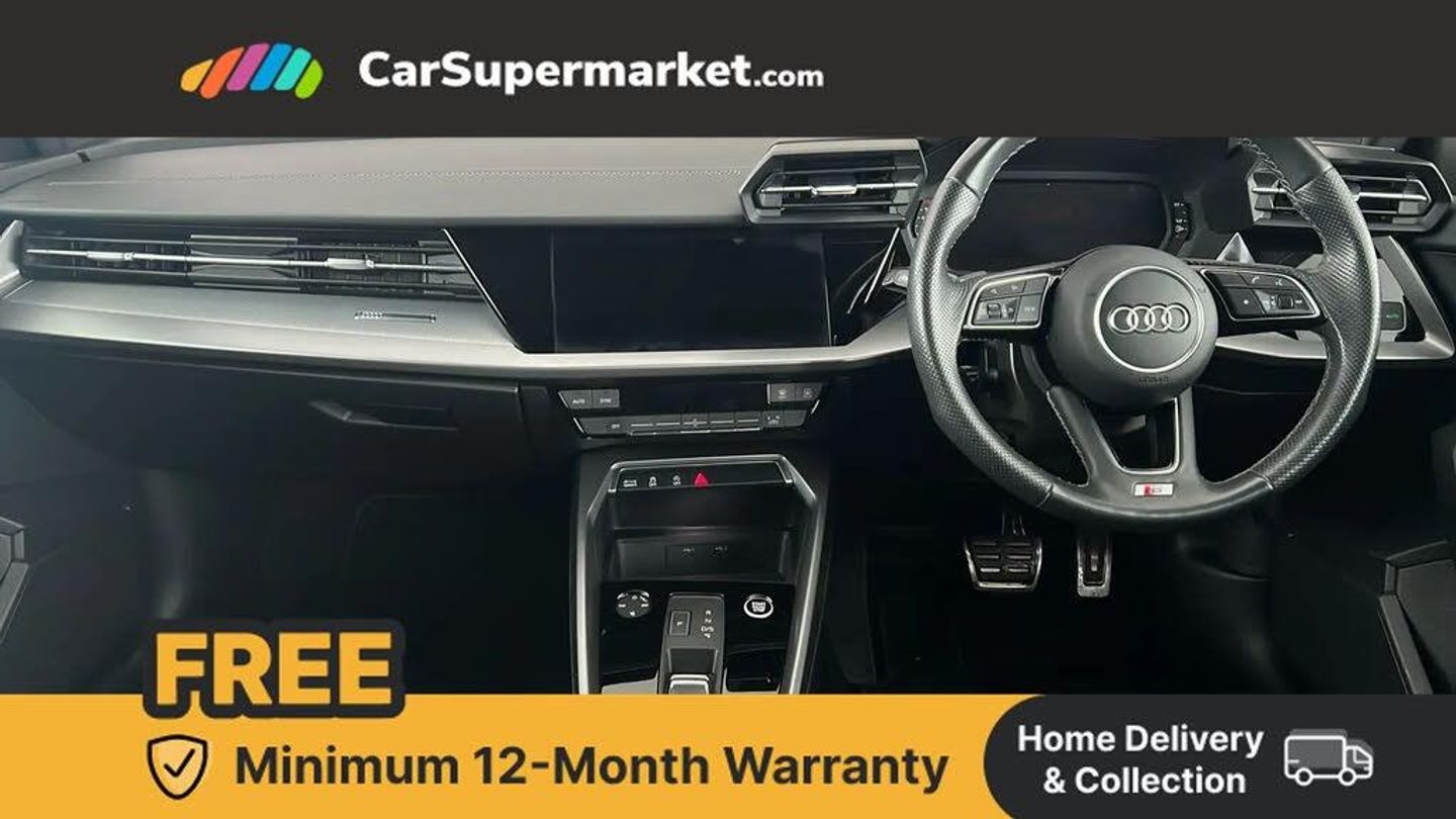 Audi connect emergency call and service,Audi drive select (Auto, Comfort, Dynamic, Efficiency and Individual),Audi smartphone interface,Audi Virtual Cockpit - 10.25" digital and colour instrument cluster,Automatic start/stop system with recuperation,Bluetooth interface,Collision avoidance assistant,Electromechanical power speed sensitive steering,Lane departure warning system,MMI Navigation Plus with high resolution 10.1" colour touch screen display,Service indicator,Voice control system with natural language interaction,Sports suspension,2x USB Type C ports (for charging and data transfer),6 passive loudspeakers,CD player,DAB Digital radio,3rd brake light,Acoustic glass windscreen,Aluminium window trim,Auto dimming frameless rear view mirror,Body colour exterior mirrors,Electrically adjustable/heated/folding/auto dimming door mirrors with integrated LED indications + kerb view function for passenger side,Front electric windows,Illuminated door sills with aluminium inserts at the front with S logo,LED daytime running lights,LED headlights with LED rear lights and dynamic rear indicators,Light and rain sensors,Model and engine designation badges at rear,Privacy glass - dark tinted rear window, rear door and side windows,Rear boot,Rear electric windows,Rear side wing doors,S line bumpers,S roof spoiler,12V socket and storage compartment in front centre console,3 seat bench in 2nd row,3 spoke leather multifunction steering wheel with gear shift paddles,4 way electrically adjustable lumbar support for driver and front passenger,60/40 split folding rear seat bench,Black cloth headlining,Dual zone electronic climate control,Front and rear centre armrest in leather,Front and rear headrests,Height and reach adjustable steering wheel,Interior lighting - glove compartment light and right hand side,Luggage compartment floor covering,Manual boot compartment lid,Manually adjustable front seats,Seat side bolsters,Single front passenger seat,Stainless steel pedals and front footrest in black,Twin leather upholstery with front sports seats S embossed logo,Aluminium interior elements pack - A3,LED interior lighting pack - A3 Saloon,S line styling pack - A3 Saloon,3x3 point rear seat belts,Driver and front passenger airbag with passenger airbag deactivation,Electronic Stabilisation Control (ESC) including ABS, ASR and EDL,First aid kit with warning triangle and 2 safety vests,Front side airbags with head airbags and interaction airbag,Pre-sense front with pedestrian and cyclist detection,Seatbelt monitoring,Tyre pressure loss indicator,Anti theft alarm,Anti-theft wheel bolts,Electronically operated child locks,Immobiliser,Remote control central locking,Aluminium air vent surrounds,Dark spectrum aluminium inlays, accent surfaces in the dashboard and centre console in platinum grey silk effect paint finish