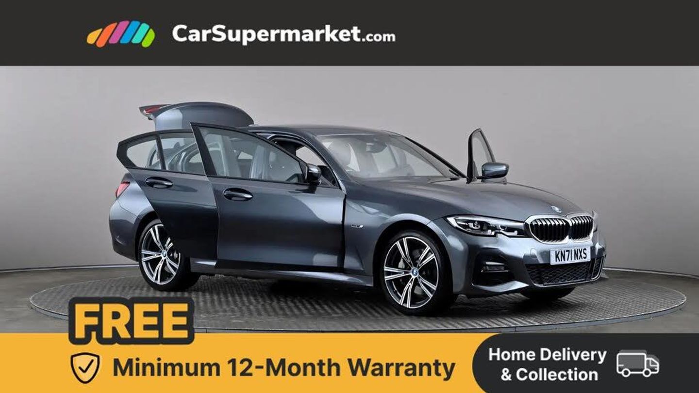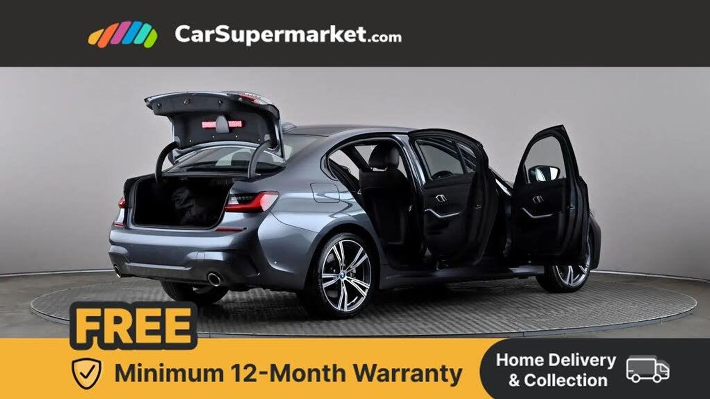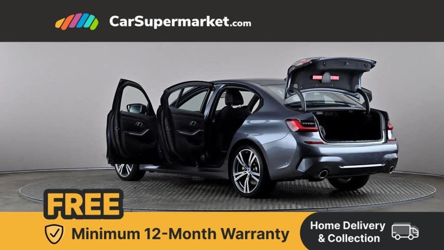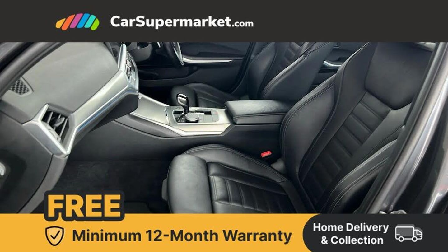 Active guard plus,Attentiveness assist,Auto start-stop,Bluetooth hands free facility with USB audio interface with audio streaming,BMW iDrive controller on centre console,BMW Live Cockpit Professional Nav with 12.3" instrument display + 10.25" display, Intelligent Voice Assist, BMW OS 7, HDD, 2USB, 4G LTE connect,BMW service history,BMW Teleservices,Brake pad wear indicator in front and rear,Check Control warning system for monitoring of lights and door/luggage compartment open warning,Condition based service,Cruise control with brake function + speed limiter,Electric power steering with Servotronic steering optimised at all speed ranges,Instrument cluster with speedometer with mph readout, tachometer, fuel gauge and oil temperature gauge,Integrated owners handbook,Oil sensor for level and grade, warning by check control system,On board computer - average speed+fuel consumption, service interval, clock/date, odometer/trip meter, outside temperature display and ice warning,Optimum shift indicator,Personal Profile - automatic lock when driving away selectable,Balanced 50/50 weight distribution,Battery cut-out switch,Charging cable - Mode 2,Drive performance control - ECO PRO, comfort and sport modes,Petrol Particulate Filter,Stroke dependent dampers,DAB tuner,Electronic service booklet,Stereo speaker system with 2 mid range speakers in the front door trims and rear parcel shelf + 2 central bass speakers underneath the front seats,Acoustic glazing,Active airstream chrome frame kidney grille with 8 high gloss black vertical slats,Automatic headlight beam throw control with load dependent regulating reaction, dynamic compensation of braking dive and acceleration squat,Black roof mouldings,Body colour door handles,Body colour front and rear bumpers,Body colour fuel filler flap,Body colour mirror caps with bottom segment in matt black,Dynamic brake lights,Electric windows - front and rear, with open/close fingertip control, anti-trap facility and comfort closing,Exhaust tailpipe - split left and right,Exterior mirrors - electrically folding with anti-dazzle,Fading support,Front and rear bumper system with replaceable deformation elements,Front black door sill finishers with BMW designation,Green tinted heat protection glazing,High gloss shadow line exterior trim,Interior rear view electrochromatic mirror with automatic anti dazzle function,LED daytime running lights,LED front fog lights,Lightweight engineering,M designation on front side panels, left and right,Matt black exterior B pillar,Model designation on right side of tailgate,Rain sensor with automatic headlight activation,Shark fin antenna,Two part LED tailights in L-shape with components in smoked glass, brake light, LED turn indicator and rear fog light,Visible VIN plate,Welcome lights in interior and door handle area,Windscreen wipers with integrated washing jets,xDrive designation on left tailgate,12V power socket in front storage compartment,2 front cupholder in centre console with clamping elements and matt black inlay,3 rear seats with non folding headrests with 3 point seat belts,3 zone automatic air conditioning,4 pieces lashing eyelets in luggage compartment,40:20:40 split folding rear seat with loading system,Ambient lighting with welcome carpet light,Anthracite headlining,Armrest integrated in front and rear door trim + front centre console armrest,Backrest width adjustment,Centred top Luggage compartment lights,Four grab handles integrated in roof lining,Front and rear door exit lighting (left / right),Front and rear door pockets,Front and rear reading lights,Front head restraints,Front sport seats,Heated front seats,Height adjustable mechanically and infinitely variable steering column,Illuminated armrest storage compartment,Illuminated glove compartment with separate small compartment,Interior lighting - front centre over interior mirror with soft light, rear centre and front and rear footwell lighting,M sport leather steering wheel,Make-up mirror lights,Rear centre armrest with 2 cupholders,Rear centre console with storage compartment and ventilation grille,Sunvisors with vanity mirrors and ticket pocket,Toolkit located in luggage compartment,Connected pack professional - 3 Series Saloon/Touring,M sport exterior styling pack - 3 Series Saloon/Touring,2 tone horn,BMW emergency call,Brake energy regeneration,Braking pre-tensioning,Child proof locking system in rear door,Child seat ISOFIX attachment rear outer seats,Coasting in idle in ECO PRO mode,Crash sensor activating of airbags, Unlocking doors, hazard warning lights, interior light, safety battery terminal,Driver and front passenger side airbags, integrated in the door side seat backrest bolsters for all seat variants,Driver/Front Passenger airbags,Dry braking,Dynamic brake control,Dynamic stability control + (DSC+) - Anti-lock Braking System (ABS) with brake assist and cornering brake control + Automatic Stability Control (ASC),Dynamic Traction Control - DTC